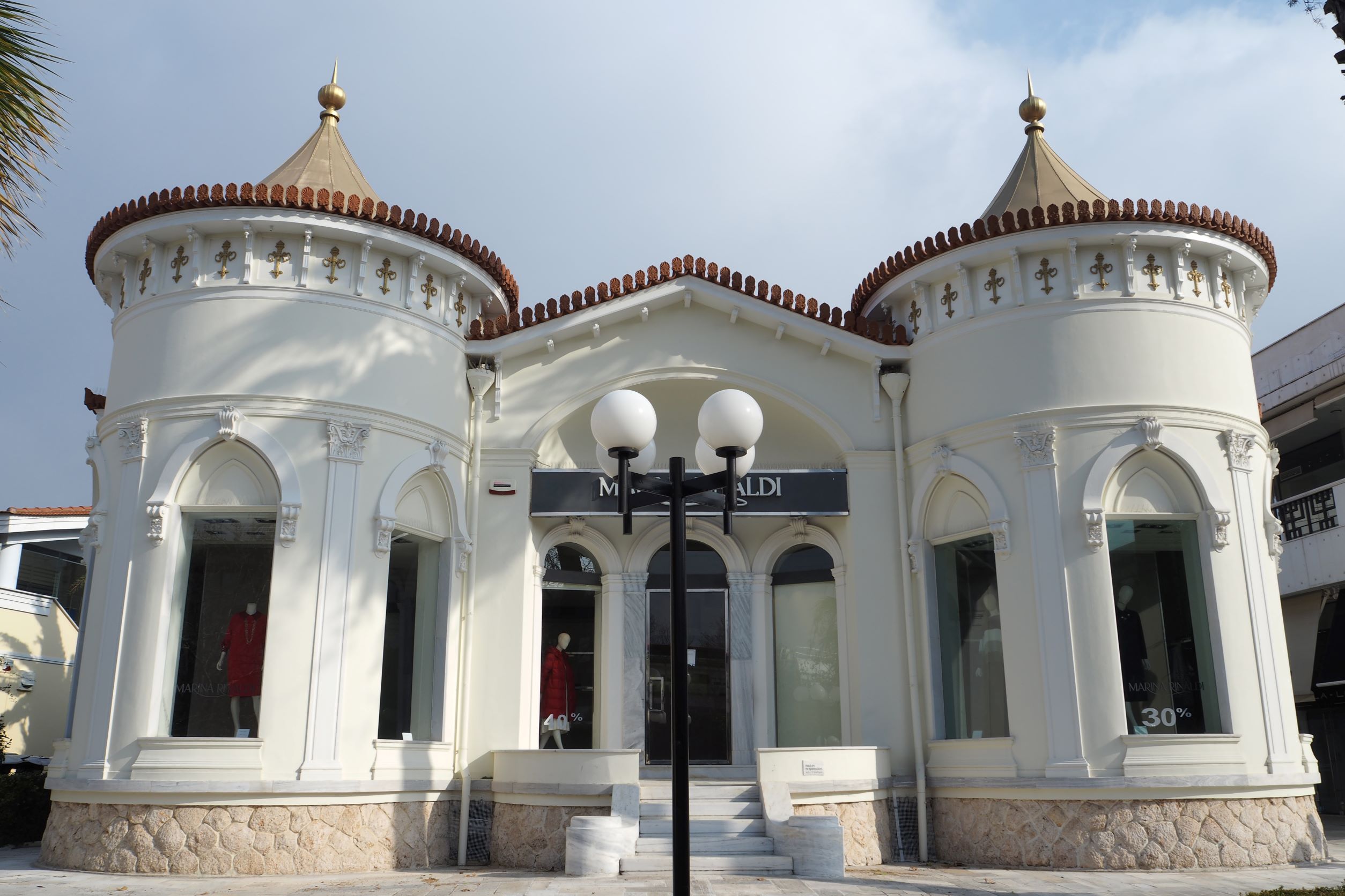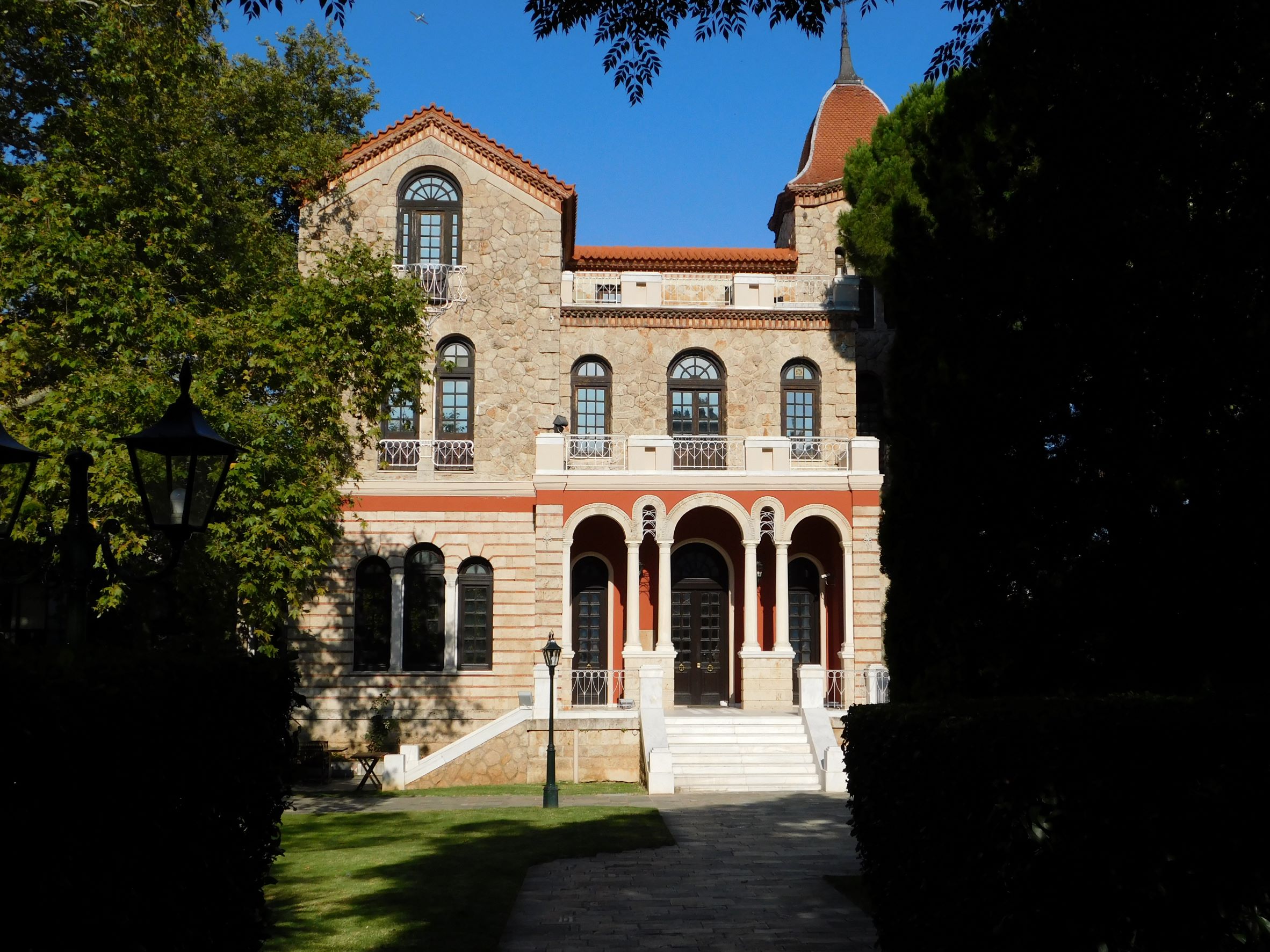 Έξω από τη βίλα υπάρχουν δύο όμορφα γλυπτά. Δύο μαρμάρινα λιοντάρια, έργο του διάσημου γλύπτη Δημήτρη Φιλιππότη (1839 – 1919). Η βίλα έχει συνδεθεί με την ελληνική ιστορία αλλά και με τον ελληνικό κινηματογράφο, καθώς εδώ γυρίστηκαν σκηνές για την «Υπολοχαγό Νατάσα», με πρωταγωνίστρια την Αλίκη Βουγιουκλάκη. Την ταινία που κατείχε για δεκαετίες το ρεκόρ εισιτηρίων στον ελληνικό κινηματογράφο.
