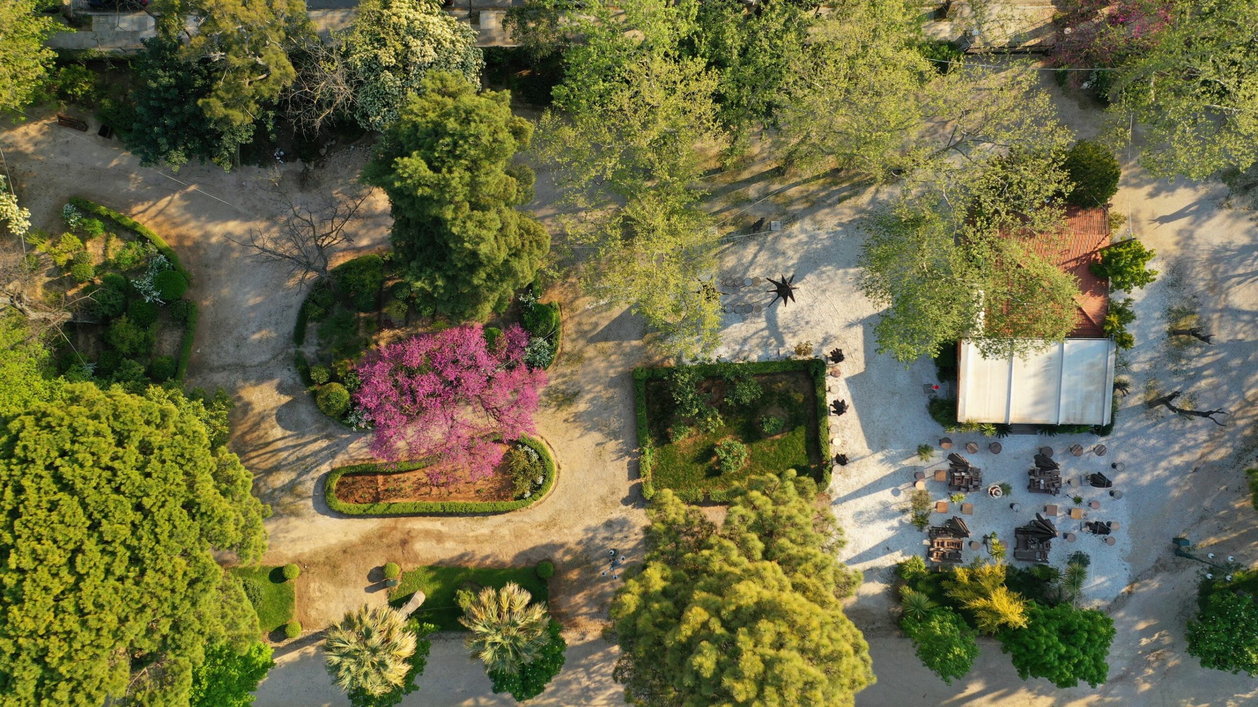 Στα υπόλοιπα 270 στρέμματα καλλιεργούνται αμυγδαλιές, φιστικιές και αμπέλια αλλά υπάρχουν και εντυπωσιακά κτήρια όπως ο νεοκλασικός πύργος του Ανδρέα Συγγρού, δημιούργημα του Ερνέστου Τσίλερ. Ανοικτό στο κοινό από την Ανατολή έως τη Δύση του Ηλίου, το κτήμα προσφέρεται και ως χώρος άθλησης και ποδηλασίας.