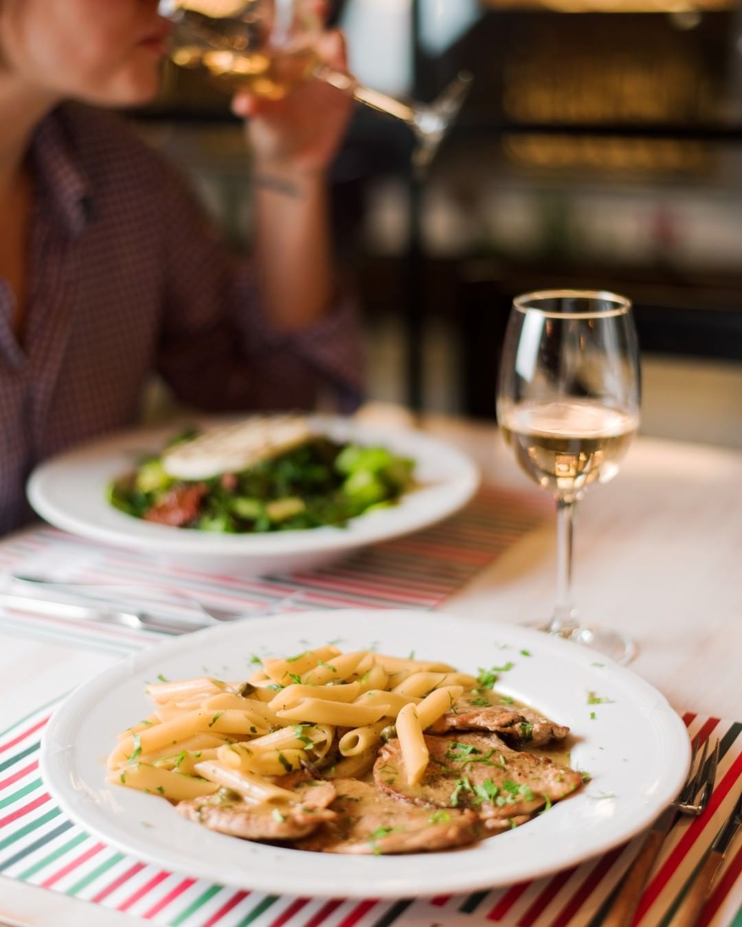 Ιδιαίτερα πιάτα όπως το ριζότο Milanese. ένα ελαφρύ ριζότο με σαφράν και παρμεζάνα, συνταγές με βάση το κρέας όπως η Tagliata. Και βέβαια μεγάλη γκάμα από κρασιά για να διαλέξετε αυτό που ταιριάζει με το φαγητό σας. Και ένα extra tip. Μην φύγετε αν δεν δοκιμάσετε το Tiramisu ή την πανακότα της La Pasteria, γλυκίσματα από τα καλύτερα της Αθήνας.