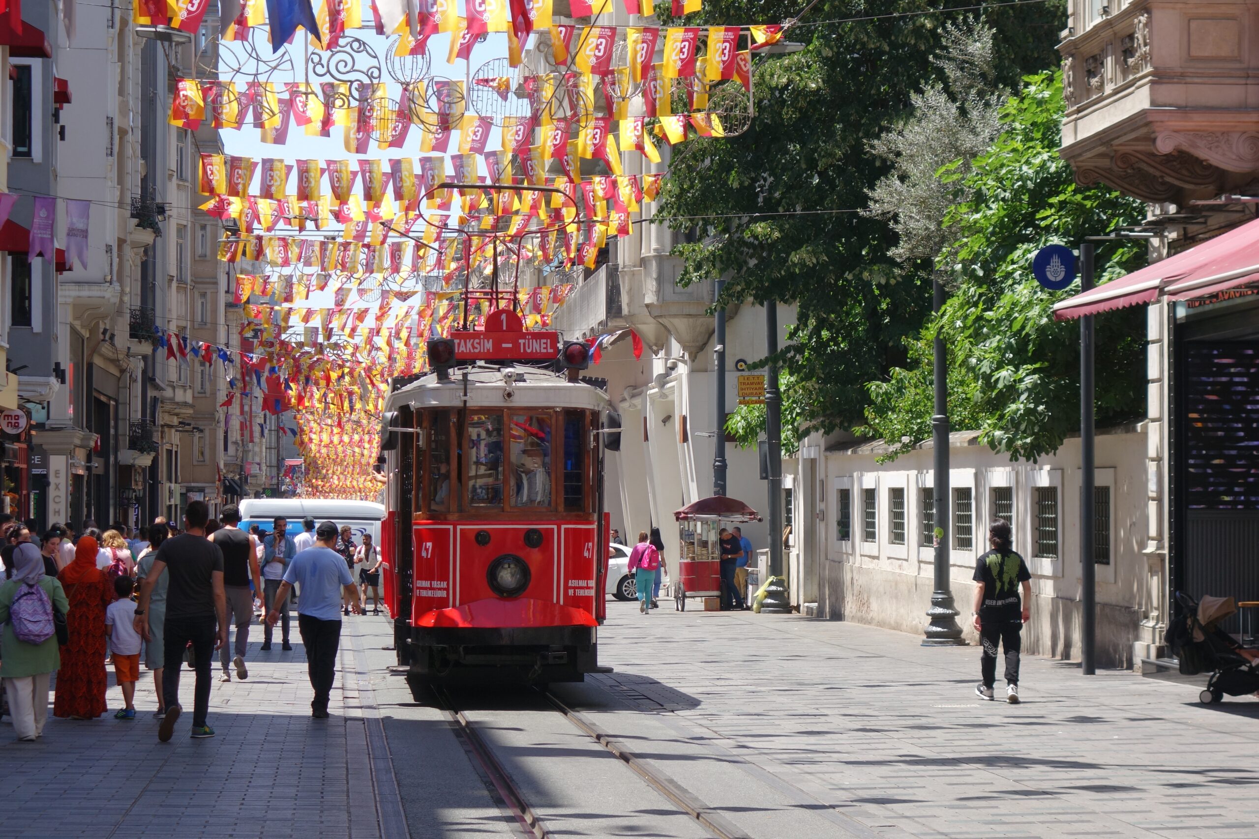 Πρώτη στάση με το που φθάσετε στην Πόλη, είναι μια βόλτα στον Μεγάλο Πεζόδρομο του Πέρα, γνωστό σήμερα ως İstiklal Caddesi. Η πάλαι ποτέ κεντρική αρτηρία της Πόλης εξακολουθεί σε μεγάλο βαθμό να ενώνει το ιστορικό κέντρο της Κωνσταντινούπολης δημιουργώντας μια νοσταλγική ατμόσφαιρα ανάμεσα στο κοσμοπολίτικο παρελθόν της μεγαλύτερης πόλης της Τουρκίας και το ραγδαία τεχνολογικά αναπτυσσόμενο σήμερα. Κτήρια της Μπελ Επόκ και ηλεκτρικές οθόνες ενώνονται άψογα στον δρόμο που δεν κοιμάται κυριολεκτικά ποτέ, χαρίζοντάς σας μια must βόλτα που δεν θα χορτάσετε εύκολα. Από τη μια, τα φωτισμένα κτήρια με την πολυτελή αρχιτεκτονική εποχής και, από την άλλη, το ατελείωτο πλήθος ανθρώπων που διασχίζει πότε βιαστικά και πότε χαλαρά τον τεράστιο πεζόδρομο είναι αρκετά, για να σας κάνουν να χάσετε την αίσθηση του χρόνου παρέα πάντα με το αγέραστο κόκκινο τραμ που κάνει την ίδια διαδρομή για περισσότερα από 130 χρόνια.