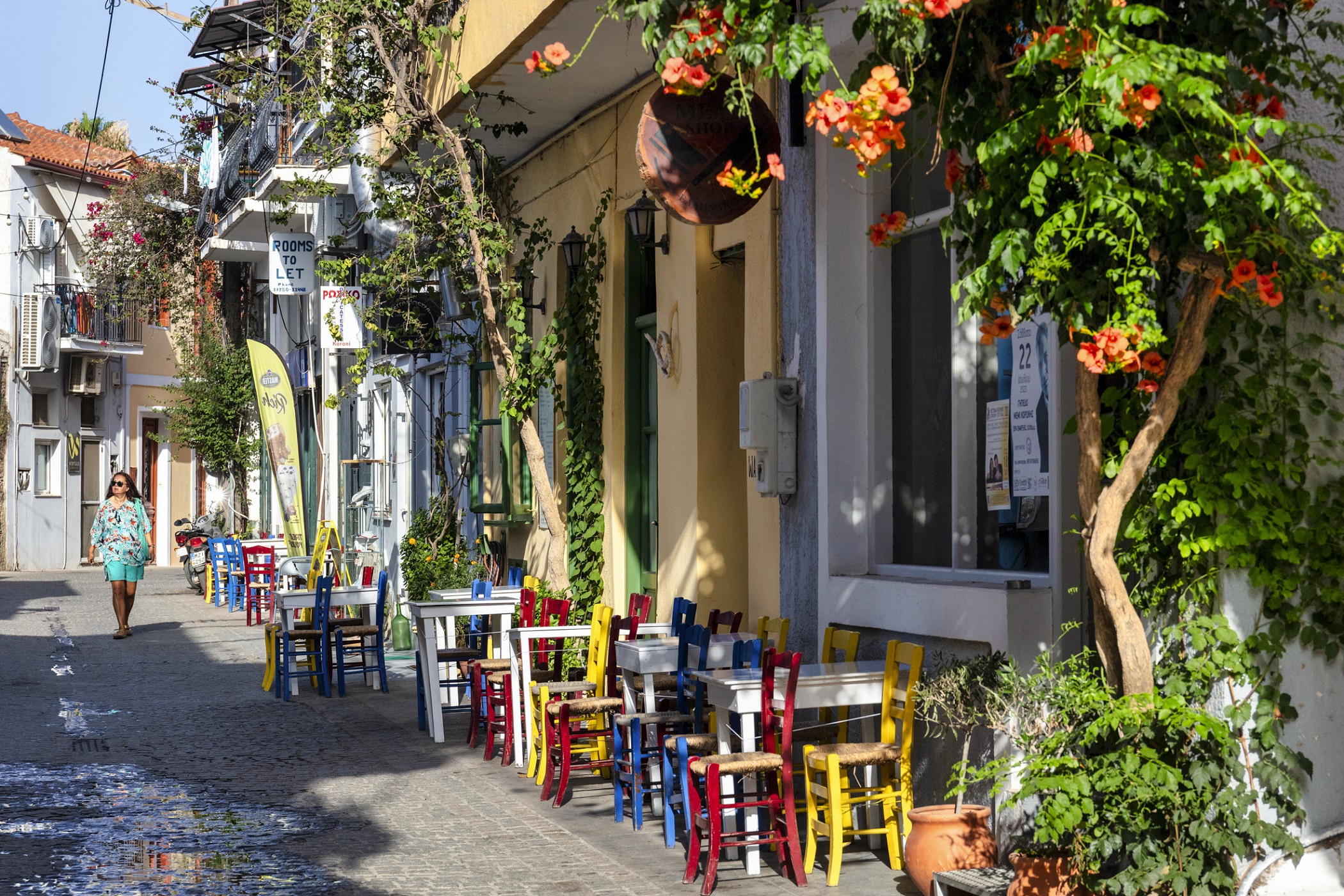 Η εκτός κάστρου ανάπτυξη του οικισμού, που ξεκίνησε κατά τον 19ο αιώνα, έγινε προς δύο κατευθύνσεις: προς το λιμάνι και κατά μήκος των τριών κύριων, παράλληλων δρόμων. Τα δημόσια κτήρια, τα αρχοντικά και οι αστικές οικίες κτίστηκαν στην παραλία, ενώ προς τα υψώματα αναπτύχθηκαν τα λεγόμενα λαϊκά σπίτια. Κάθετα σοκάκια και σκάλες ενώνουν τους ανισοϋψείς άξονες. Η δόμηση είναι πυκνή και τα σπίτια είναι κολλητά μεταξύ τους, με μικρές αυλές και τη στενή τους πλευρά προς τον δρόμο.