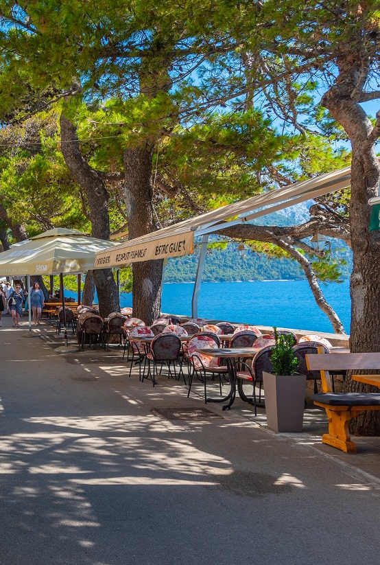 Αξίζει να δοκιμάσετε τηγανητές γαρίδες, αλλά και όλα τα παραδοσιακά πιάτα με τα θαλασσινά, όπως και τα ζυμαρικά. Δοκιμάστε ακόμα το τοπικό σκληρό τυρί pršut και το πιάτο με τον ξιφία ceviche, είναι εκπληκτικό. Εδώ οι ώρες κυλούν αληθινά γαλήνια και νωχελικά και δεν είναι λίγοι οι θαμώνες που μετά το φαγητό αράζουν με τις ώρες δίπλα στη θάλασσα, περιμένοντας να χωνέψουν για να κάνουν βουτιές στα γαλαζοπράσινα νερά.
