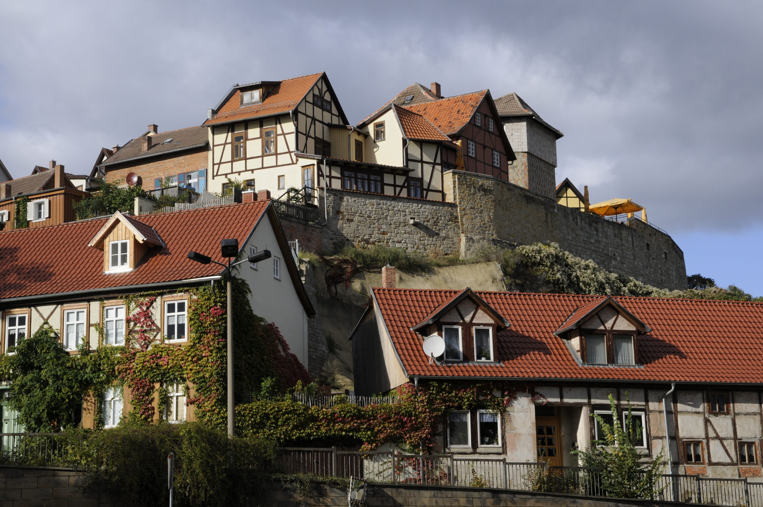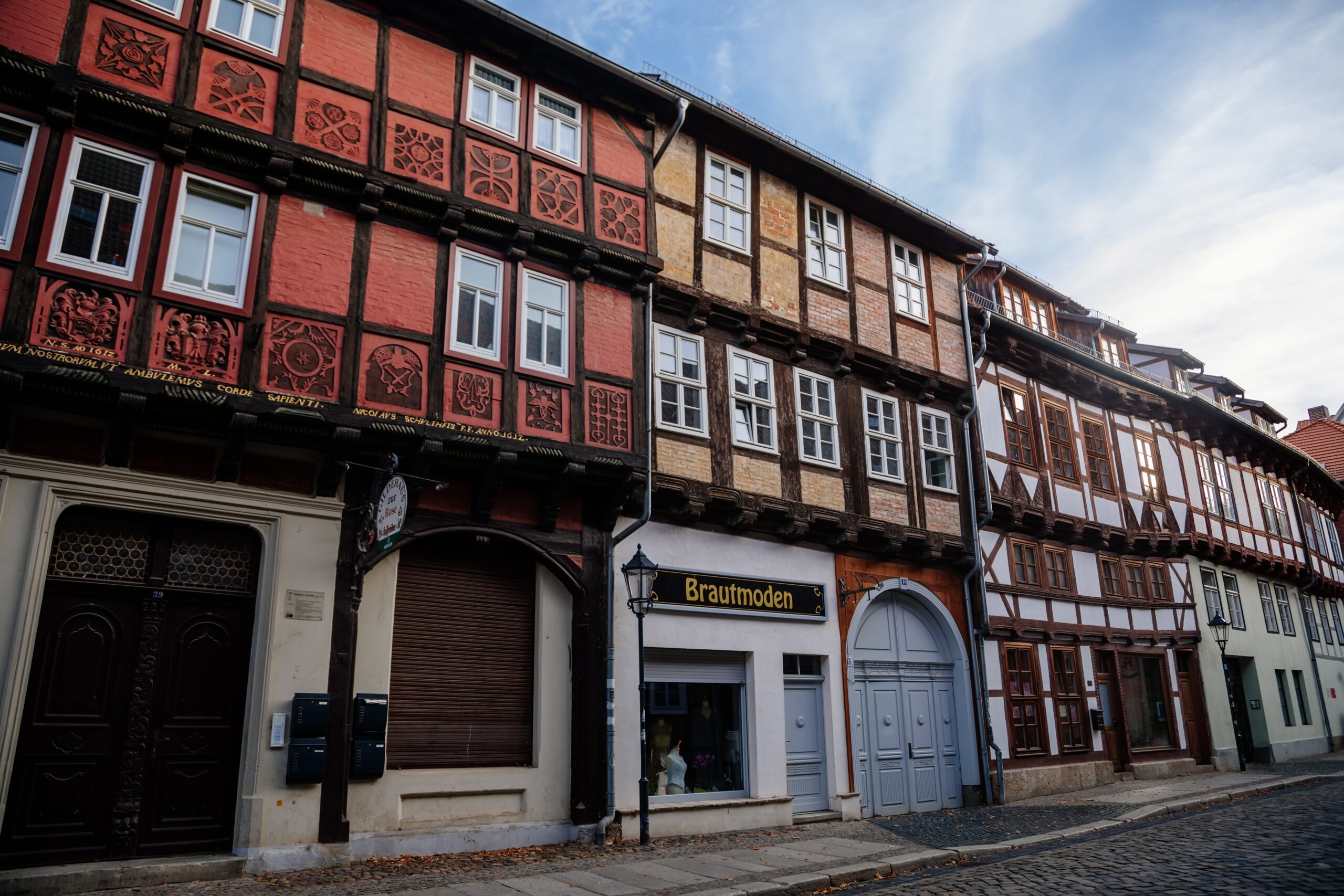 Πιστά στις μεσαιωνικές ρίζες τους, τα κουκλίστικα αυτά κτήρια με τους ζεστούς τόνους του κίτρινου, του μελί, του αχνού πορτοκαλί και του σκονισμένου ροζ, συχνά με αναρριχητικά φυτά να τυλίγονται γύρω από τις εισόδους τους κι ακόμη πιο συχνά με προσόψεις ζωγραφισμένες ή διακοσμημένες με επιγραφές, είναι από μόνα τους αρκετά για να δικαιολογήσουν το χαρακτηρισμό ολόκληρης της πόλης ως Μνημείο Παγκόσμιας Πολιτιστικής Κληρονομιάς της UNESCO. Πρόκειται όντως για ένα σπάνιας αυθεντικότητας, εξαίσιο δείγμα μεσαιωνικής πόλης, με την πολιτιστική και αρχιτεκτονική κληρονομιά του Κβέντλινμπουργκ να επισφραγίζει τη μοναδική γοητεία του.