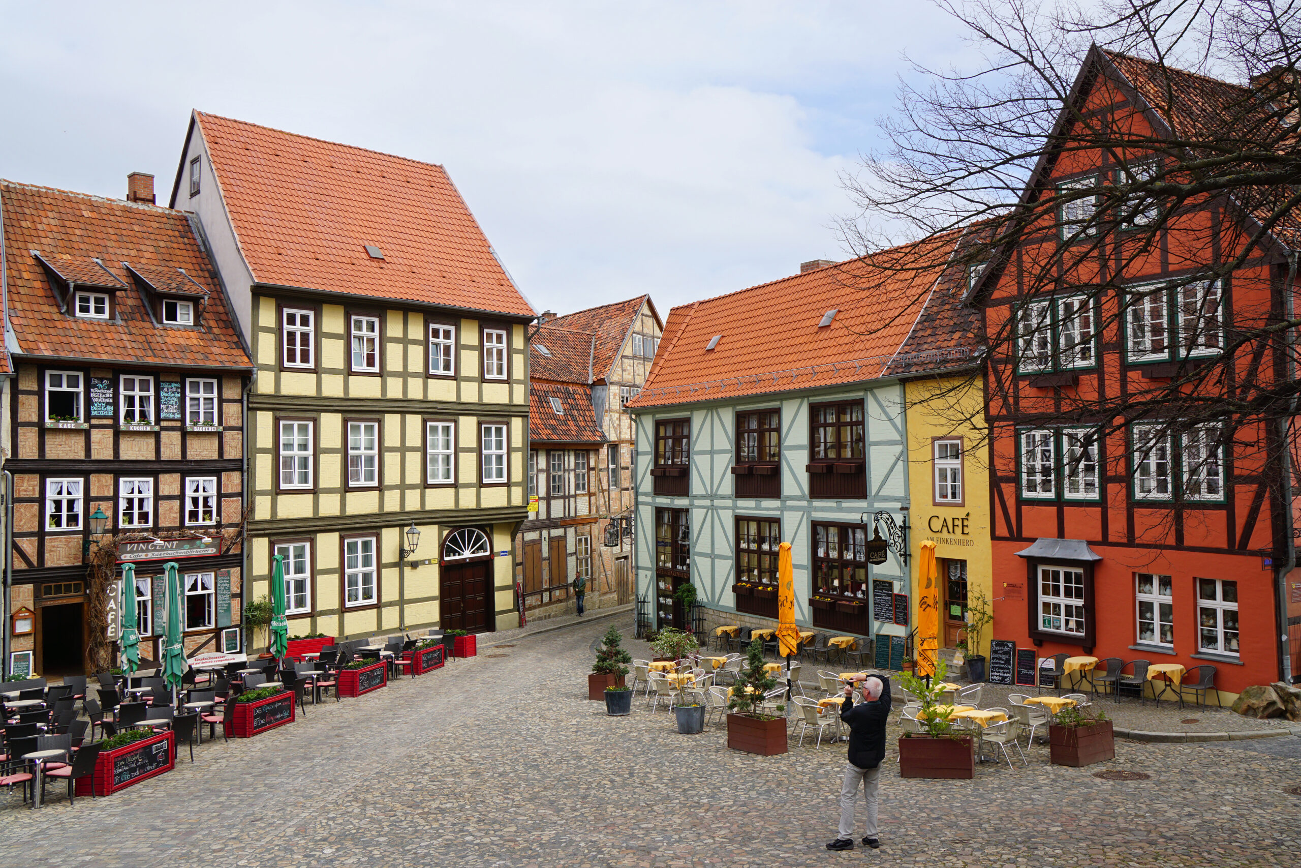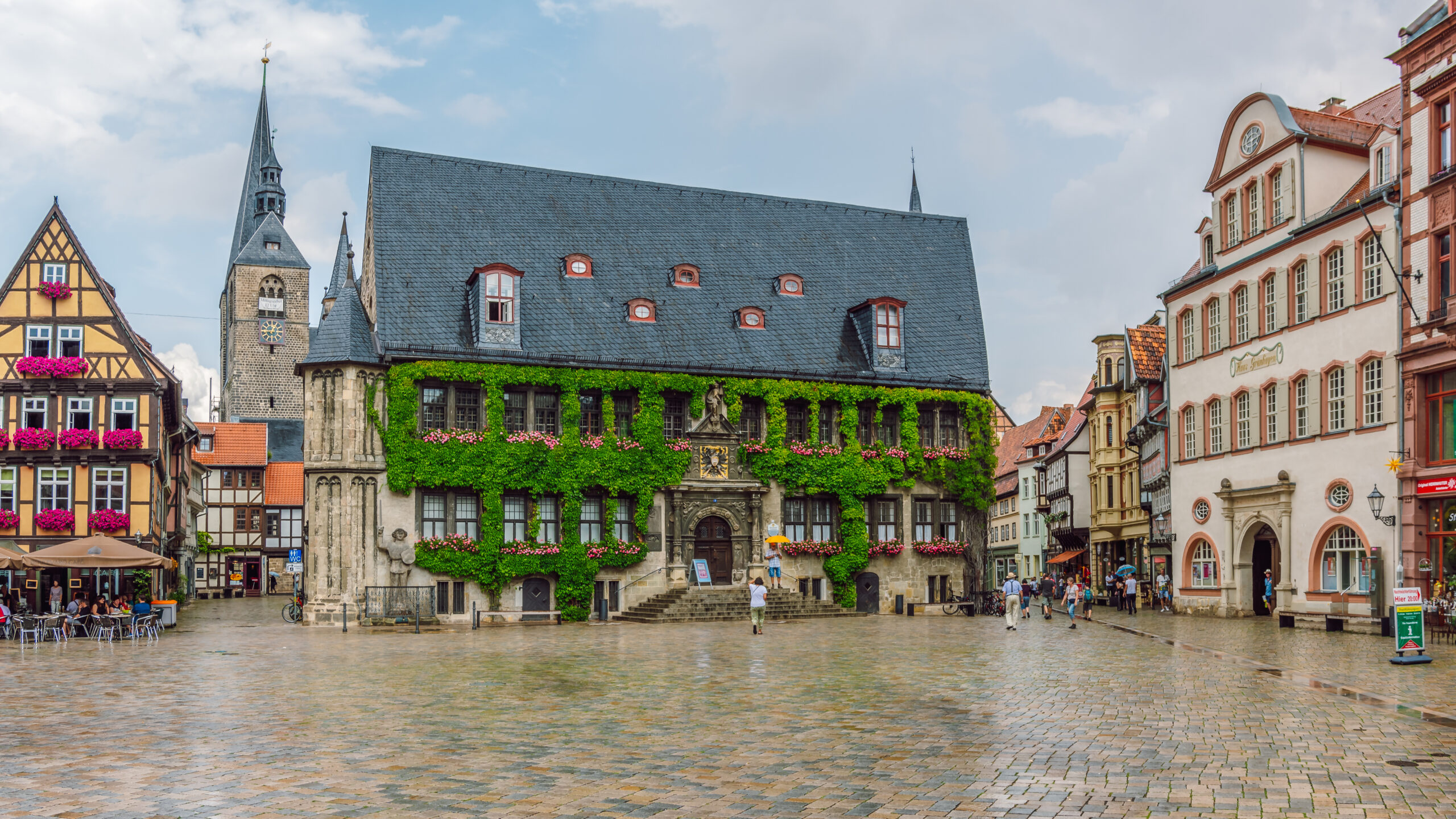 Στην πλατεία δεσπόζει ο ναός St. Benedikti που ορθώνεται πάνω από κάθε άλλο κτήριο, στη θέση όπου ήδη από το 10ο αιώνα υπήρχε προγενέστερη εκκλησία σε ρομανικό ρυθμό. Εντός του, θα δείτε την κατατοπιστική έκθεση «Quedlinburg – Από ανακτορική πόλη σε πόλη του Ρολάνδου», ενώ η ανάβαση στον πύργο της θα σας ανταμείψει με συγκλονιστική θέα της πόλης και της κοιλάδας γύρω της. Μην παραλείψετε να θαυμάσετε και το μπαρόκ παλάτι Grünhagen δίπλα στο δημαρχείο, πριν αποφασίσετε σε ποιο από τα γουστόζικα καφέ της Marktplatz θα κάνετε ένα διάλλειμα ή πριν επισκεφθείτε τα περιποιημένα μαγαζάκια – από ανθοπωλεία ως ντελικατέσεν – όπου οι ντόπιοι κάνουν τα ψώνια τους σε ψάθινα καλάθια.