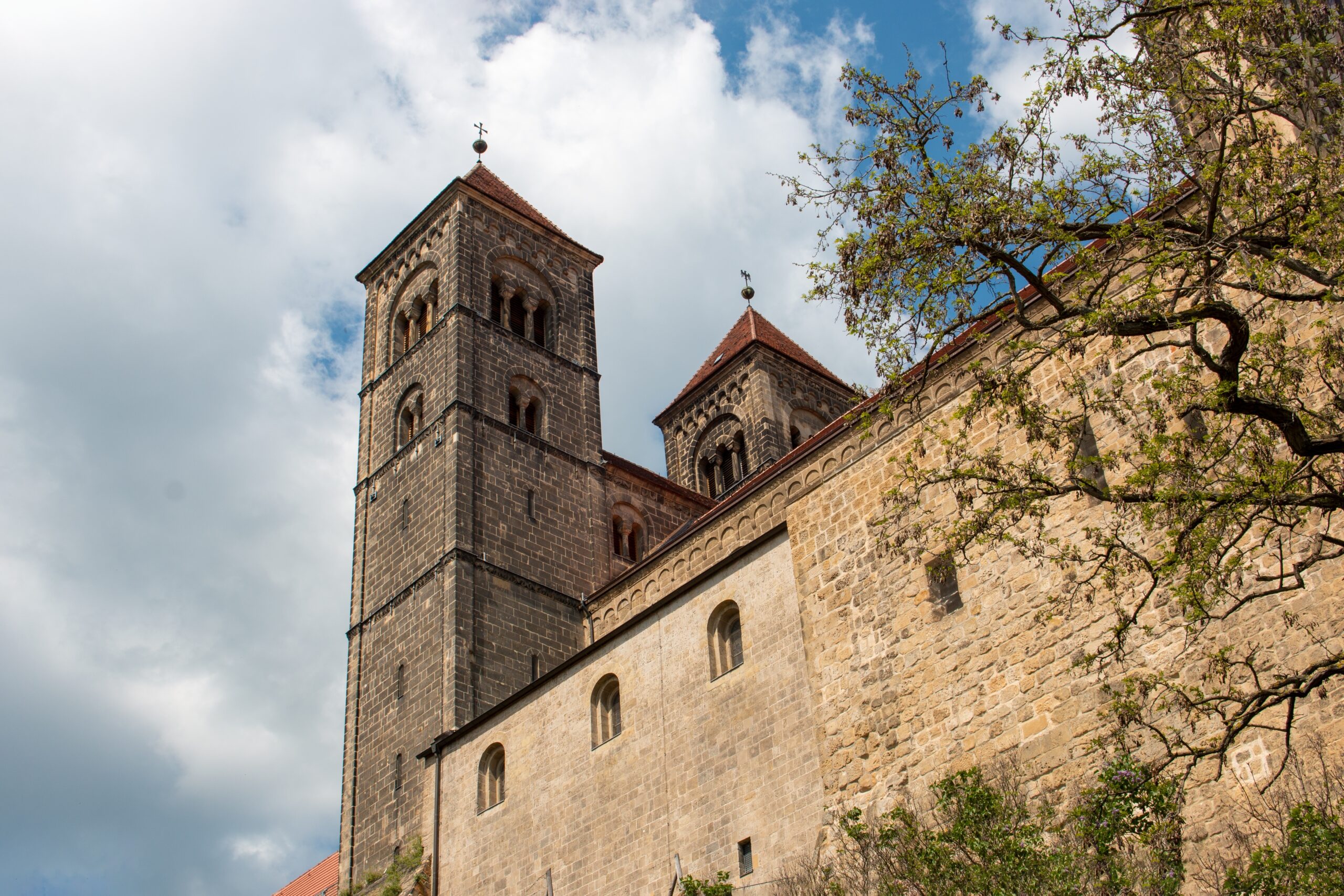 Αυτά είναι τα ονόματα των δύο λόφων της πόλης, που ο καθένας με τα δικά του αξιοθέατα και μνημεία, σας αποκαλύπτει και μια ακόμη σελίδα της ιστορίας του Κβέντλινμπουργκ. Στο Burgberg (βουνό του κάστρου ) ή Schlossberg όπως επίσης λέγεται, δεσπόζει ο Συλλογικός Ναός Stiftskirche St. Servatii, το περίφημο ρομανικού ρυθμού αβαείο, που ίδρυσε η σύζυγος του Ερρίκου Α΄, μετέπειτα Αγία Ματθίλδη, το 936. Η σπουδαιότερη από τις 14 καλοδιατηρημένες εκκλησίες της πόλης, υπάγονταν μόνο στον βασιλιά και τον πάπα, και στην κρύπτη της φυλάσσονται τα λείψανα του πρώτου αυτού βασιλικού ζεύγους.