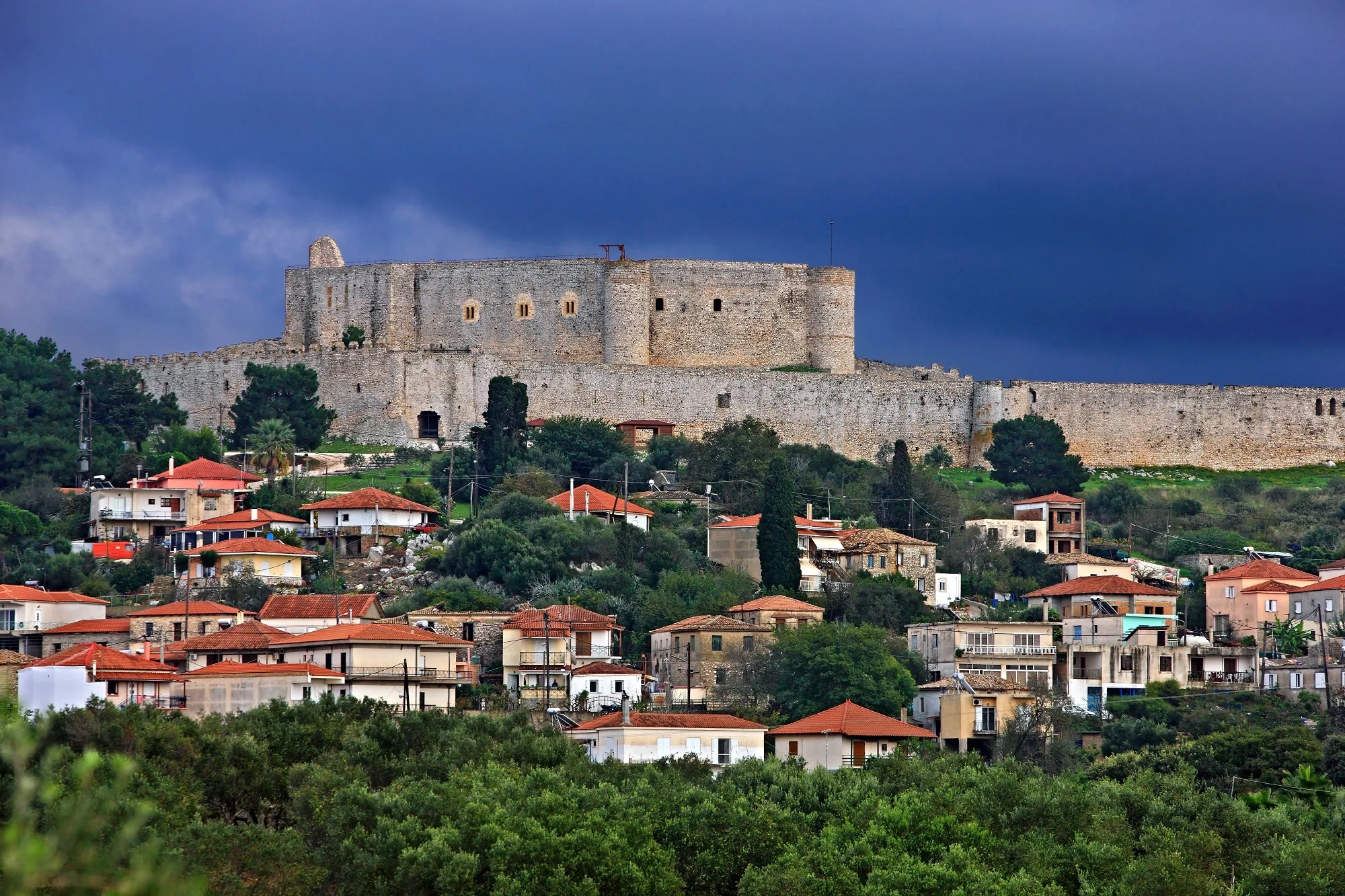 Σε εξαγωνικό σχήμα, με δύο οχυρούς περιβόλους, πύργους και εσωτερική αυλή, εξακολουθεί να ελέγχει αγέρωχα το πέρασμα ανάμεσα στην Κυλλήνη και στη Ζάκυνθο, επιβλέποντας ηγεμονικά το σημερινό χωριό. Μέσα από τα τείχη του, τα οποία υψώνονται στα 10 μέτρα, θα δείτε την αίθουσα του θρόνου, μαγειρεία, ακόμα κι ένα παρεκκλήσι, αφού κατά καιρούς έμενε εκεί ο Πρίγκηπας.