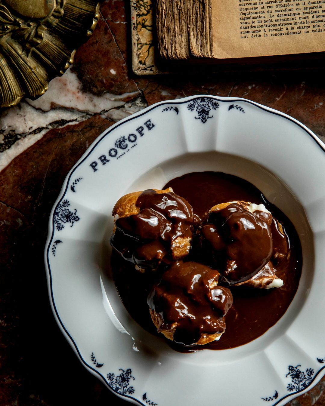 Ο θρύλος λέει ότι, στο Le Procope -πλάι στη τζαμαρία που αντικρίζει την πλακόστρωτη μεσαιωνική Rue de l’Ancienne-Comédie- ο Βολταίρος έπινε καθημερινά 40 κούπες από ένα ιδιαίτερο μείγμα καφέ και σοκολάτας. Έναν αιώνα αργότερα, και ο Μπαλζάκ απολάμβανε εδώ τον καφέ ή το τσάι του. Ανάμεσα στους σταθερούς θαμώνες ήταν και ο Βενιαμίν Φραγκλίνος. Αν κάνετε κι εσείς μια στάση, θα δείτε από κοντά το ανέπαφο γραφείο του Βολταίρου, ένα σπάνιο έκθεμα που φιλοξενείται ακόμη εδώ.