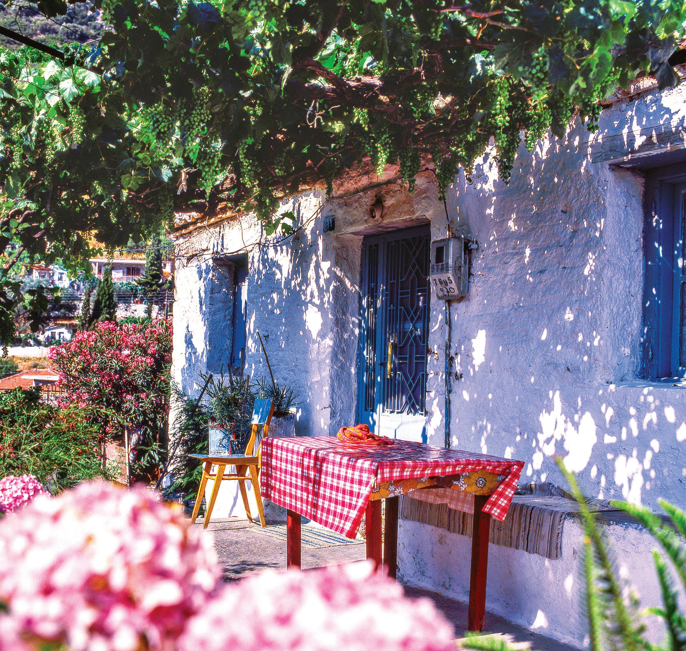 Στα πολύχρωμα νεοκλασικά του Μόλυβου, από την εποχή της αστικής ευημερίας του, όταν μετά τη συνθήκη Κιουτσούκ-Καϊναρτζή υπήρξε σπουδαίο εμπορικό κέντρο, παράθυρα με ασπρισμένη κορνίζα μας προσκαλούν, σαν μάτια υπογραμμισμένα με eyeliner, να αφήσουμε το αυτοκίνητο και να σκαρφαλώσουμε με τα πόδια, στο αμφιθεατρικά χτισμένο χωριό, μέχρι το μεσαιωνικό κάστρο της δυναστείας των Γατελούζων στην κορυφή, ένα από τα πιο καλοδιατηρημένα της Ελλάδας. Ενώ τα τζιτζίκια παίρνουν μπρος σημαίνοντας συναγερμό για το λιοπύρι, αναζητάμε καταφύγιο στα σκιερά λιθόστρωτα με τις ανθισμένες μοβ γλυσίνες (ένα από αυτά, μάλιστα, θεωρείται ανάμεσα στα 15 ομορφότερα του κόσμου). Φτάνουμε στο κάστρο του 14ου αιώνα ξέπνοοι αλλά γεμάτοι ευτυχία. Η θέα από τις μεσαιωνικές πολεμίστρες μάς ταξιδεύει στο Αιγαίο που στραφταλίζει μέχρι τα μικρασιατικά παράλια.