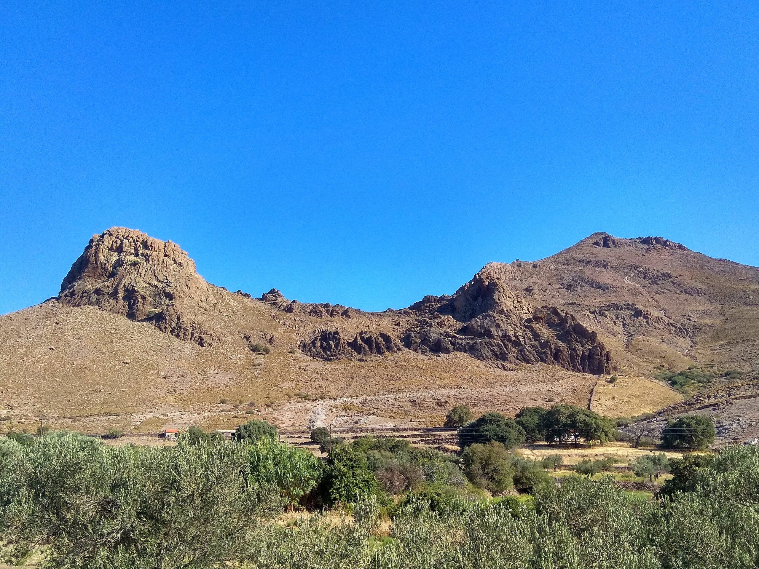Τα καφετιά χρώματα των βράχων, που σε κάποια σημεία θυμίζουν Φαρ Ουέστ, διακόπτουν μικρές νησίδες πρασίνου, εύφορες από τις ρεματιές, στις οποίες συνήθως φωλιάζει κάποιος οικισμός. Αυτά τα τοπία, όπως και τα κυκλαδονήσια, έχουν τη γοητεία της ανοιχτωσιάς και της ελευθερίας. Γίνονται γυμνοί καμβάδες που φιλοτεχνούμε ανάλογα με τη διάθεσή μας – και ανάλογα με τις λογοτεχνικές αναφορές που αυτό το νησί ευτύχησε να έχει σε αφθονία.