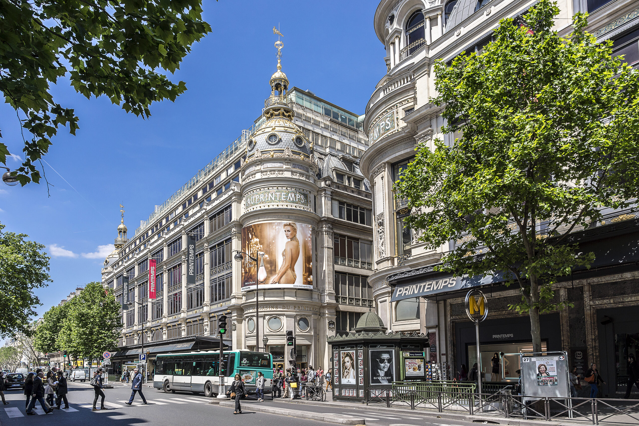Το αντίπαλο δέος του Galeries Lafayette ακούει στο όνομα Printemps. Βρίσκεται στο νούμερο 64 της Boulevard Haussmann, αποτελείται και αυτό από διαφορετικά κτήρια αφιερωμένα στη γυναικεία και την αντρική μόδα αντίστοιχα, στεγάζει κάποιες από τις κορυφαίες μάρκες ένδυσης και αξεσουάρ στον πλανήτη και ανταγωνίζεται σταθερά με το Galerie Lafayette για το ποιο από τα δύο θα κερδίσει στον χριστουγεννιάτικο στολισμό και, βέβαια, στην καρδιά των επισκεπτών.