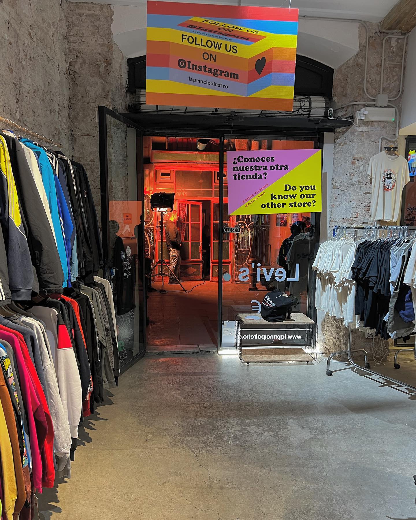 Mπορεί να είναι μικρό σε μέγεθος, αλλά έχει ποικιλία και όλα τα ρούχα και αξεσουάρ που θα βρείτε στις κρεμάστρες του είναι σε άριστη κατάσταση. Το κατάστημα ειδικεύεται στα T-Shirt, στα hoodies και στα κουλ πανωφόρια με την υπογραφή πολύ γνωστών brands όπως είναι τα Levi’s και τα Diesel, ενώ έχει ήδη κυκλοφορήσει τη δική του σειρά με μακό μπλουζάκια που έχουν στο μπροστινό μέρος τυπωμένες στάμπες με τη φίρμα του La Principal Retro & Co. μαζί με παιχνιδιάρικα σχέδια, με αναφορές στην πόλη της Βαρκελώνης.