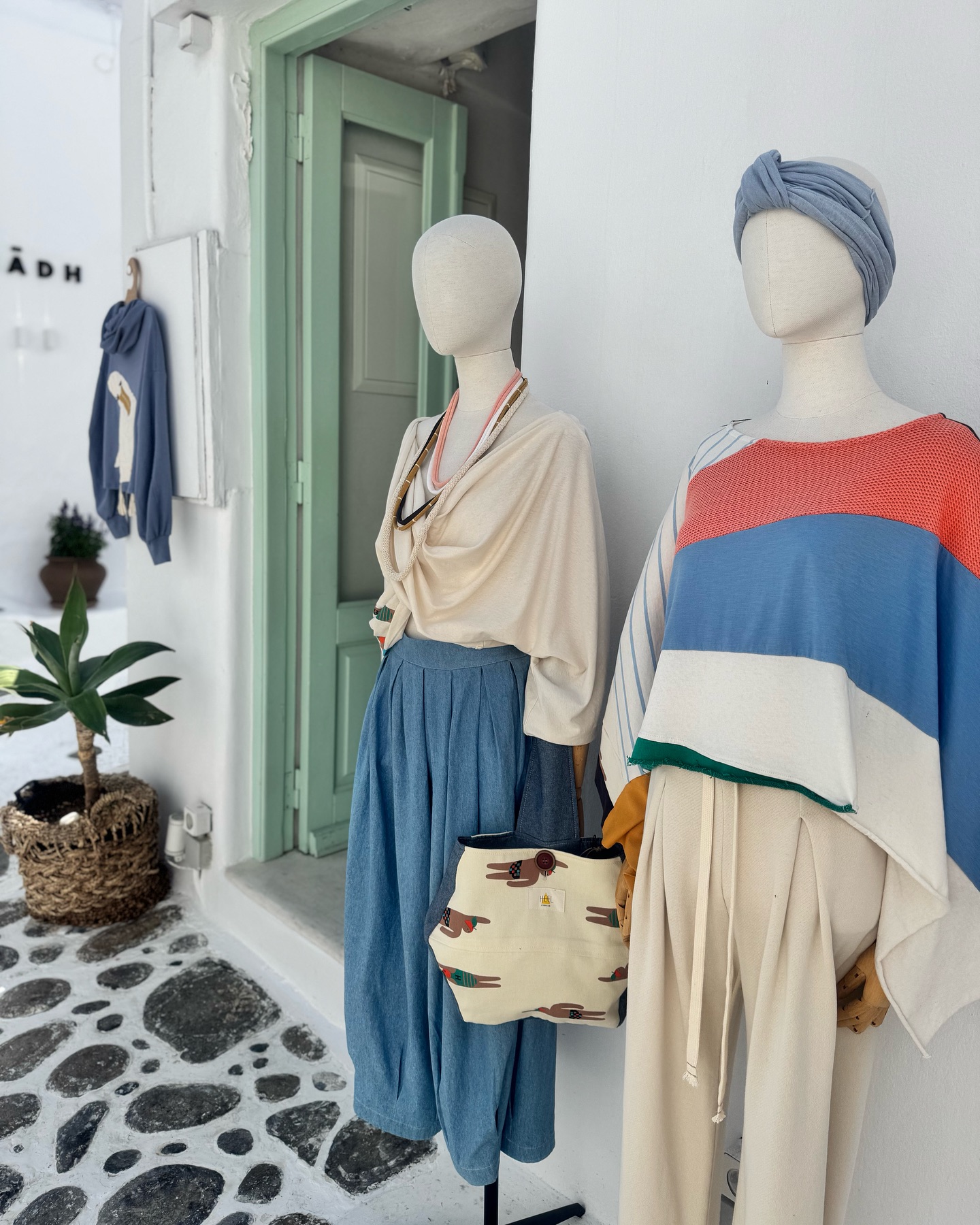 Στο εσωτερικό τους, καθετί που θα ανακαλύψετε είναι είτε χειροποίητο είτε διαλεγμένο με αγάπη και φροντίδα. Ανερχόμενοι σχεδιαστές από την Αθήνα, κομμάτια γαλλικής ή ιταλικής προέλευσης, δερμάτινα, ποιοτικά σανδάλια. Χρυσά σκουλαρίκια, κολιέ από μαργαριτάρια, μεταξωτά φουλάρια και ψάθινες τσάντες.