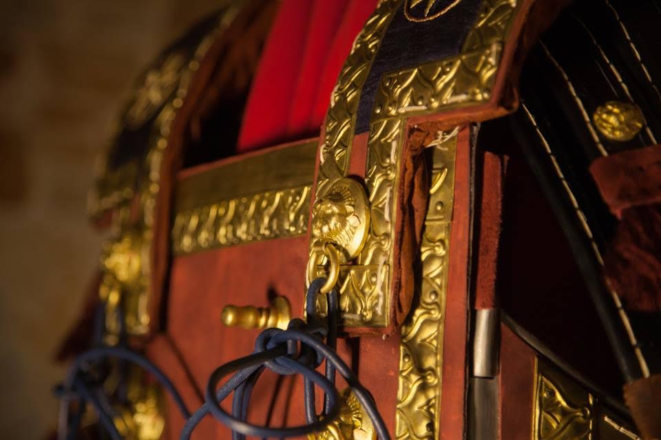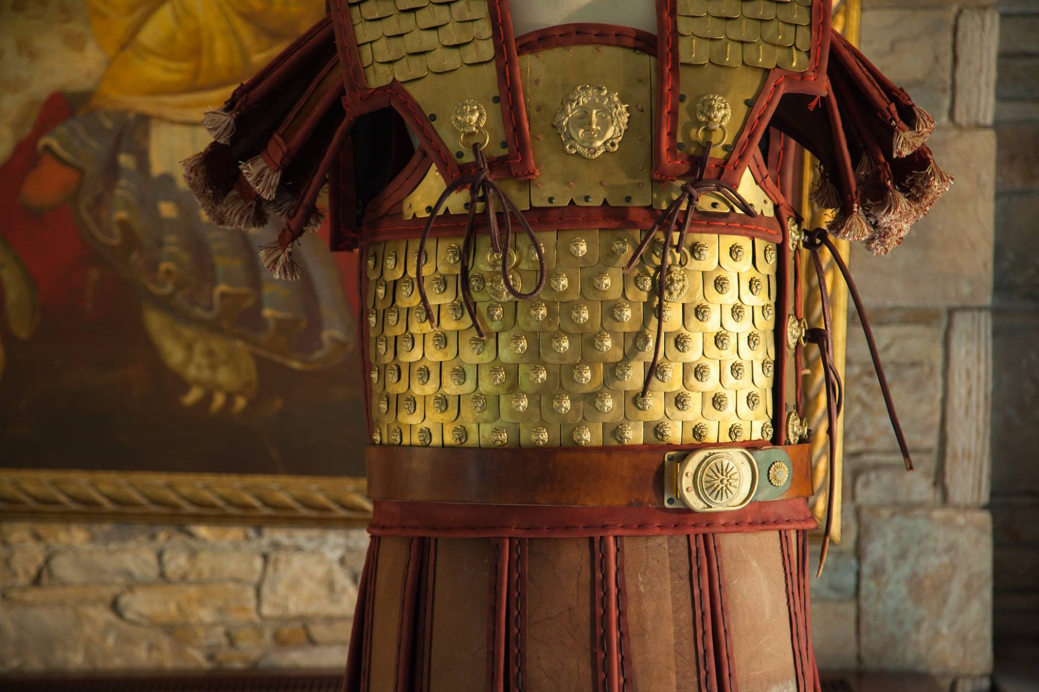 Όσον αφορά τον εντυπωσιακό λινοθώρακα του Μεγάλου Αλέξανδρου, ο δημιουργός είχε μοναδικό οδηγό την απεικόνιση του Μακεδόνα στρατηλάτη στο περίφημο ψηφιδωτό της μάχης της Ισσού (333 π.Χ), που κατατρόπωσε για πρώτη φορά τους Πέρσες, ανοίγοντας οριστικά το δρόμο για τις μεγάλες κατακτήσεις στην Ανατολή.