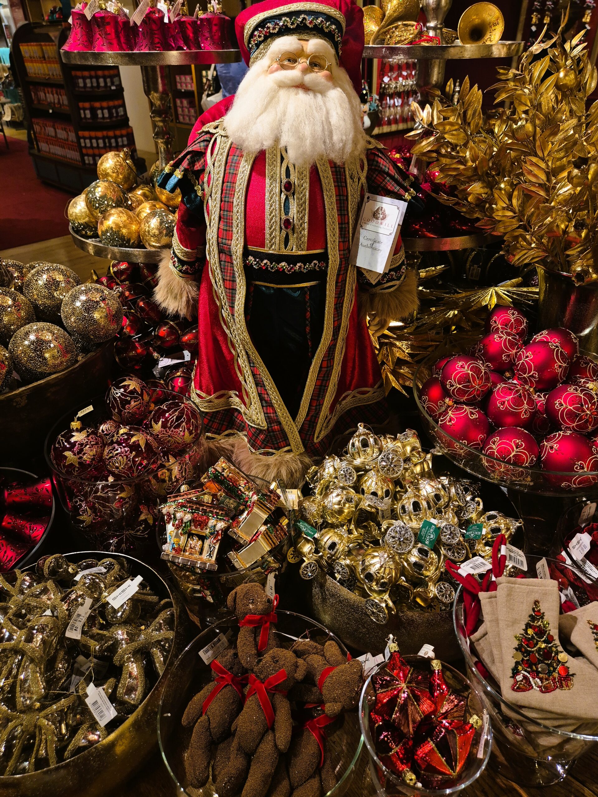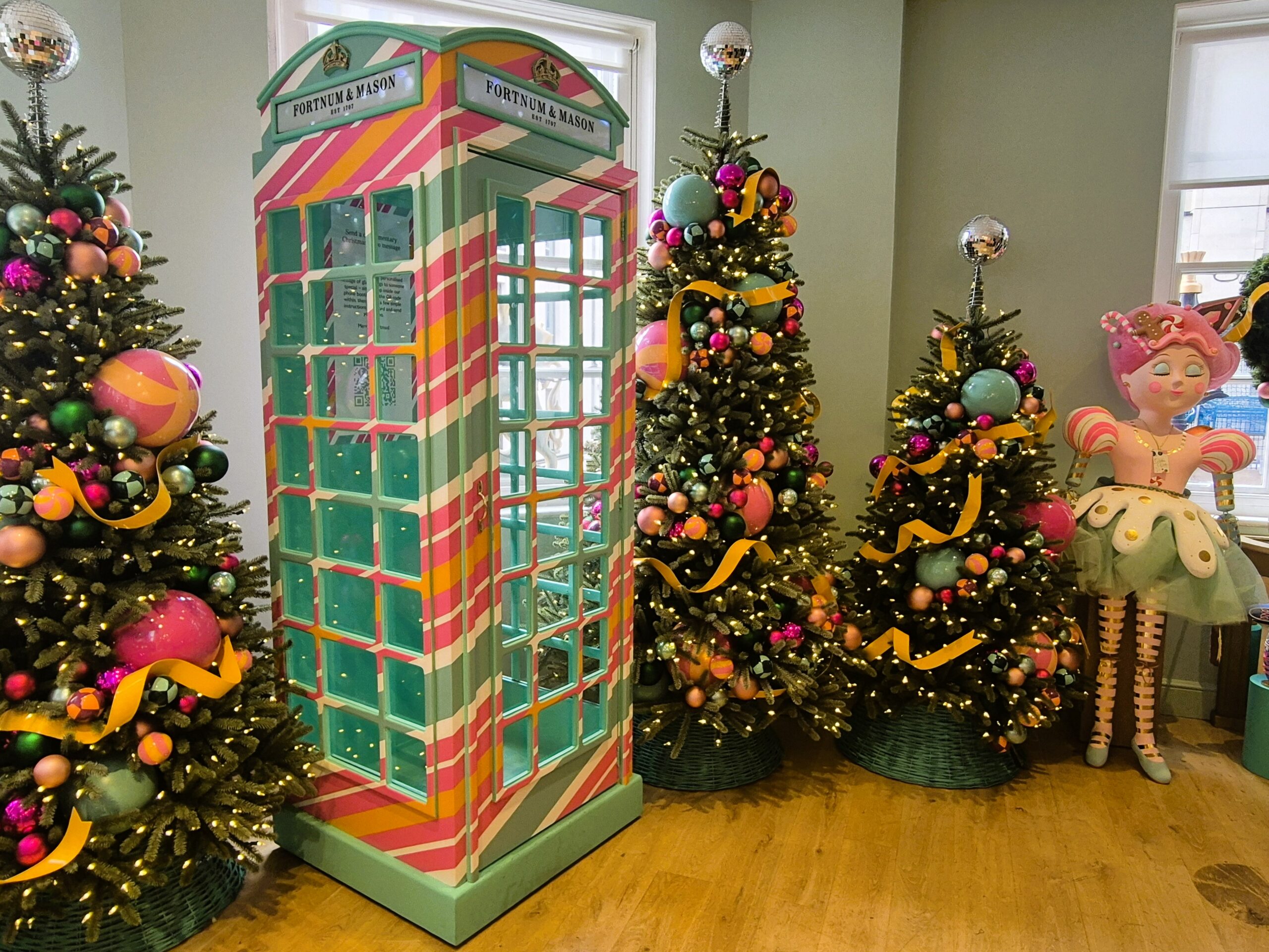 Άλλα εκτίθενται τακτοποιημένα πάνω σε πολύτιμα έπιπλα, άλλα θαμπώνουν πάνω σε έλατα, άλλα στολίζουν το τζάκι με την virtual φωτιά που σιγοκαίει, ή ξεχειλίζουν από τα φημισμένα καλάθια πικνίκ του καταστήματος. Ιριδίζουσες καφετί, μπρονζέ, χρυσοκίτρινες και πράσινες αποχρώσεις μας καλούν να χαθούμε σε ένα μαγεμένο δάσος με αλεπούδες, σκίουρους και πλουμιστές πεταλούδες, ενώ λίγο παραδίπλα ένα παστέλ παραμύθι μας ξανακάνει παιδιά: μία φυσικού μεγέθους νεράιδα κι ένας καρυοθραύστης πλαισιώνουν έναν γαλαζοπράσινο αγγλικό τηλεφωνικό θάλαμο, όσο γύρω τους στήνεται το πιο αισιόδοξο και γλυκό σκηνικό με στολίδια τούρτες, ζαχαρωτά, candy canes, πατίνια, κασέτες, ποτήρια με cocktails και μπάλες στα πιο φωτεινά χρώματα. Και όπως κάθε χρόνο, κεντητά στολίδια αληθινά έργα τέχνης, εξαιρετικής ποιότητας πορσελάνες με χριστουγεννιάτικα μοτίβα για το γιορτινό τραπέζι και εντυπωσιακά Christmas crackers -προσοχή, απαγορεύεται να μπουν στο αεροπλάνο ακόμη και στην παραδοτέα αποσκευή σας-, αποδεικνύουν την μοναδικότητα του ιστορικού καταστήματος.