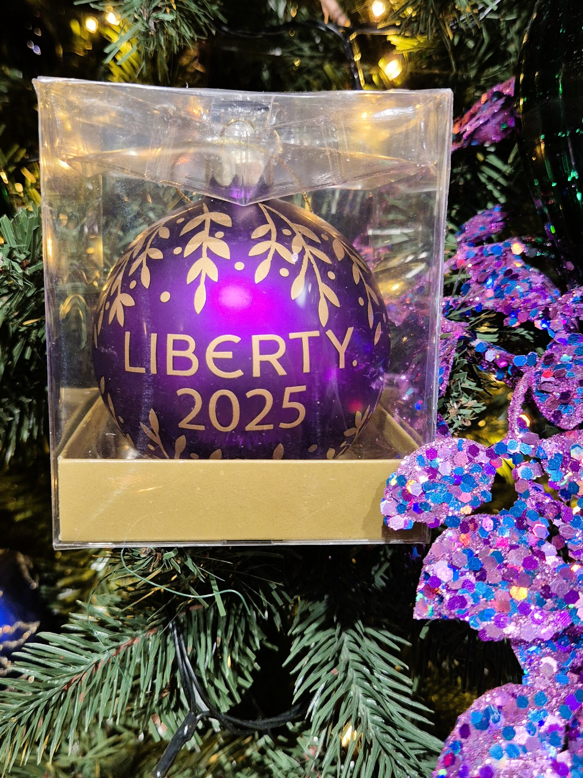 Must απόκτημα: η συλλεκτική γυάλινη μπάλα για το δέντρο, στο signature μωβ χρώμα του ιστορικού καταστήματος και με αναφορά στην επέτειο των 150 χρόνων του.