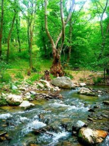 Σε απόσταση μόλις δύο χιλ. από την πόλη, η περιοχή Δύο Ποτάμια είναι ένας πραγματικός παράδεισος. Πράσινο, δυο ρέματα με τρεχούμενα νερά που σχηματίζουν μικρούς καταρράκτες και γούρνες (ακόμα και μπάνιο μπορείτε να κάνετε), ξέφωτα για πικνίκ, γεφυράκια, μονοπάτια για βόλτες, αιωνόβια πλατάνια και δρυς.