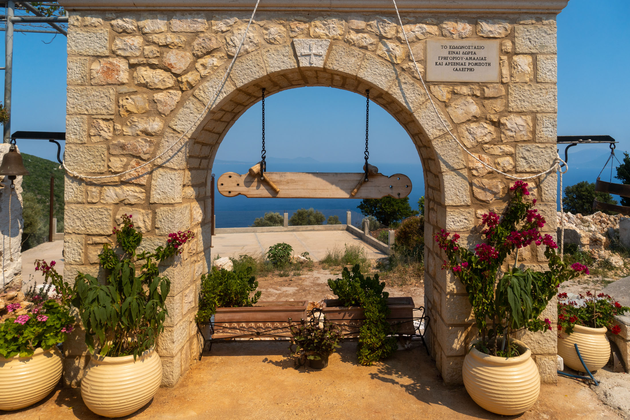 Στην κορυφή του χωριού και από την εκεί εκκλησία με το καμπαναριό, η θέα κόβει την ανάσα. Ένα ασυναγώνιστο μπαλκόνι στο Ιόνιο αλλά και στον υπέροχο κόλπο του Μικρού Γιαλού που βρίσκεται ακριβώς κάτω από το ύψωμα.