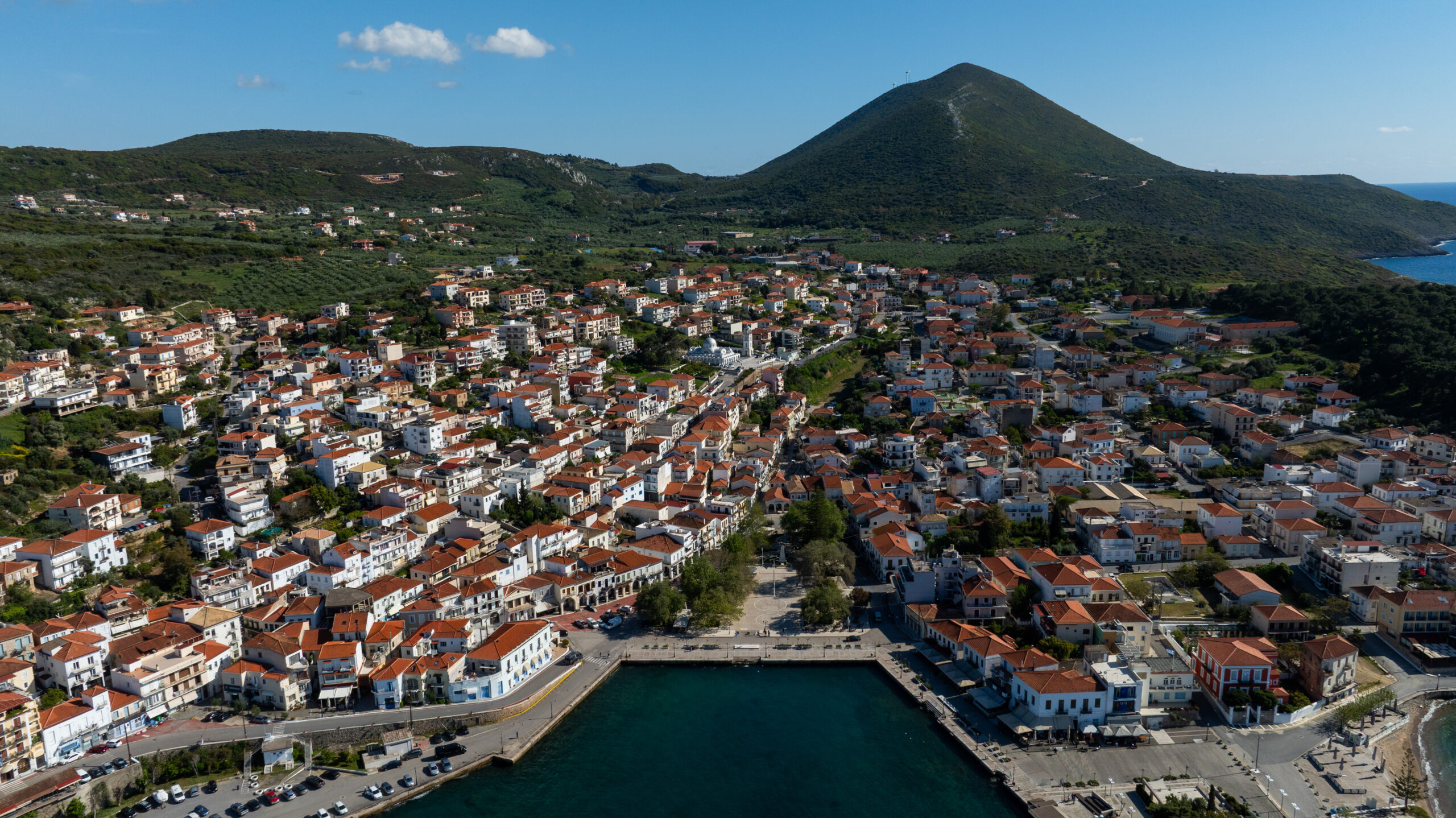 Το κέντρο της ζωής βρίσκεται στην Πλατεία των Τριών Ναυάρχων, όπου τα πλατάνια δημιουργούν μια φυσική ομπρέλα για τα καφέ και τις ταβέρνες που την περιβάλλουν. Εδώ, κάτω από τους φοίνικες και δίπλα στο μνημείο που τιμά τους ήρωες της ναυμαχίας του Ναβαρίνο, η ζωή κυλά με νησιώτικους ρυθμούς.