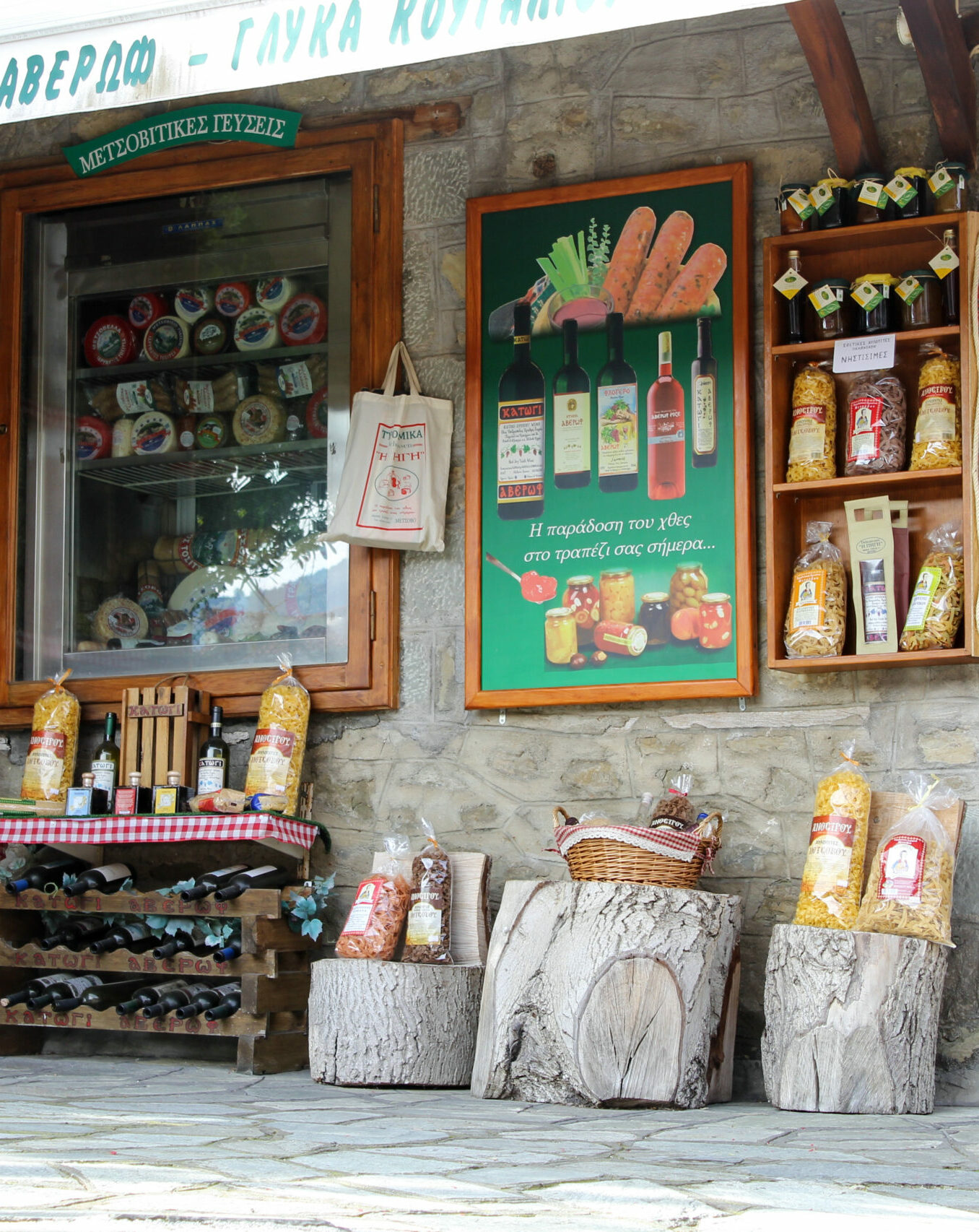 Ήρθε η ώρα να γνωρίσετε τα τοπικά προϊόντα, ξεκινώντας από τα φημισμένα τυριά του Τυροκομείου Τοσίτσα: Μετσοβόνε, Μετσοβέλα, Αγελαδίσιο, Γραβιέρα και Γιδίσιο (Σεβρ) είναι στη διάθεσή σας στο πωλητήριο (Τηλ. 26560 42765). Πάρτε για το σπίτι ποιοτικά τυριά κατευθείαν από τον τόπο παραγωγής τους. Το ίδιο μπορείτε να κάνετε και με τα φημισμένα κρασιά του Μετσόβου. Στο Κατώγι Αβέρωφ (Τηλ. 26560 31490) θα ξεναγηθείτε σε όλους τους χώρους παραγωγής και θα έχετε την ευκαιρία να δείτε τα πάνω από 1200 δρύινα βαρέλια στο κελάρι όπου ωριμάζουν τα κόκκινα κρασιά. Αν θέλετε μπορείτε να κανονίσετε εκ των προτέρων και δοκιμή κρασιών.