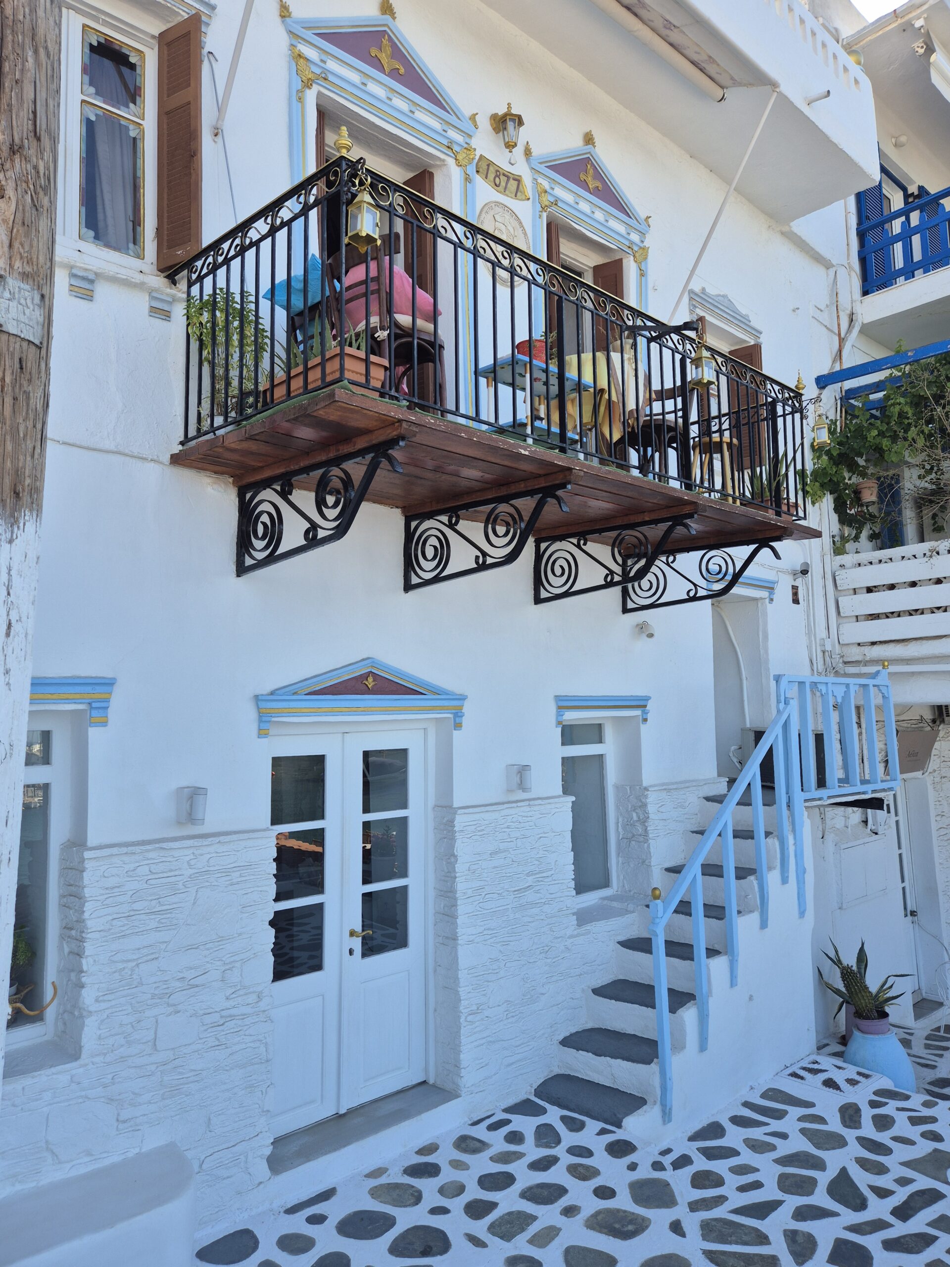 Για πρώτη φορά το εντυπωσιακό κτίριο λειτούργησε ως ξενοδοχείο το 1936, φιλοξενώντας σημαντικότατους εκπροσώπους των ελληνικών γραμμάτων και τεχνών, όπως τον Ελύτη, τον Καραγάτση και το σπουδαίο πνευματικό παιδί του νησιού, τον Ανδρέα Εμπειρίκο. Σήμερα, και μετά από μια περίοδο εγκατάλειψης και παρακμής, το κτίριο αποκαταστάθηκε, διατηρώντας τον παραδοσιακό χαρακτήρα του, που διανθίστηκε με μοντέρνες πινελιές από ξύλο δρυός και γρανίτη, ώστε οι 9 αυτόνομες σουίτες του να αποτελούν σημείο αναφοράς σε ολόκληρη την Άνδρο για υψηλού επιπέδου διαμονή.