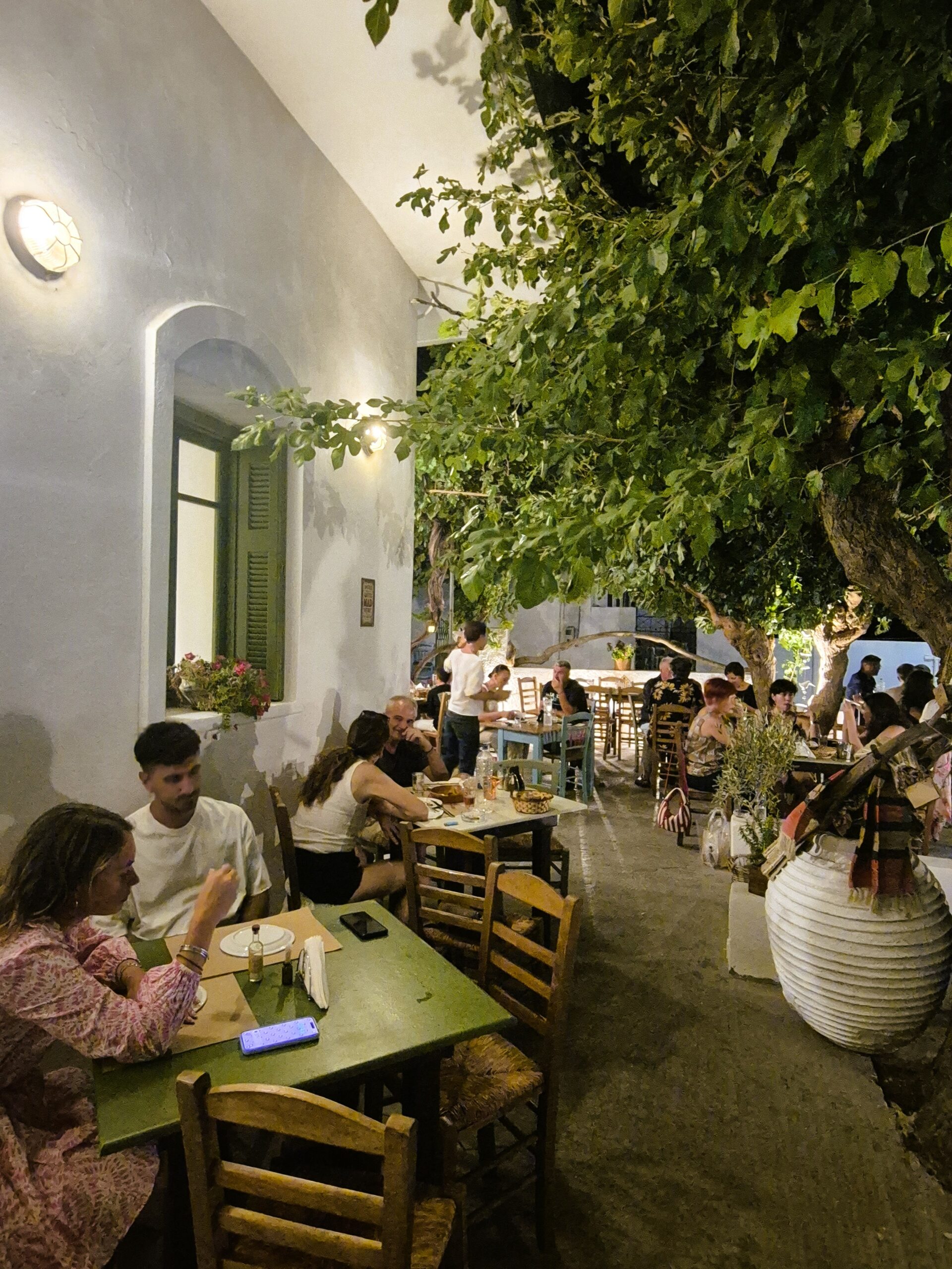 Είναι πραγματικά δύσκολο να απαρνηθεί κανείς έστω και για λίγο τόσο όμορφα ακρογιάλια, γι’ αυτό και αφθονούν οι επιλογές εστίασης στην αμμουδιά της κεντρικής παραλίας. Όσο εσείς γευματίζετε, μπορείτε άνετα να επιβλέπετε τα μικρά παιδιά που παίζουν στην άμμο και, χωρίς να απομακρυνθείτε, να συνεχίσετε τη μέρα σας στην παραλία. Για ένα διαφορετικό, πιο ήρεμο σκηνικό κι ένα χαλαρό γεύμα με ουζάκι και θαλασσινά μεζεδάκια, αναζητήστε το απλωμένο σε διαφορετικά επίπεδα «Καφενεδάκι της Ελένης», με το ελαφρώς μποέμ περιβάλλον και την ξεχωριστή διακόσμηση που έχει επιμεληθεί η ιδιοκτήτρια, στολίζοντας με φαναράκια και κουρελούδες τα σκαλιά που οδηγούν στο σοκάκι της Πίσω Βρύσης και διαμορφώνοντας μια βεράντα σαν πραγματικό κήπο με ζωγραφισμένα από την ίδια παλιά τραπέζια που στήνονται κάτω από σκιερά δέντρα, αφήνοντας την πολυκοσμία και τους έντονους ρυθμούς του υπόλοιπου χωριού να μοιάζουν για λίγο πολύ μακρινοί.