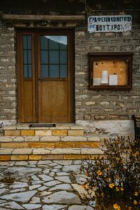 Κοιτάζοντας λίγο καλύτερα, βλέπεις μικρές λεπτομέρειες που δείχνουν ότι το Βουτύρο ζει. Αυλές φροντισμένες, ξύλα στοιβαγμένα για τον χειμώνα, ένα σκοινί με μπουγάδα να στεγνώνει στον ήλιο. Μια γλάστρα βασιλικού δίπλα στην πόρτα, μια μισάνοιχτη πόρτα που αφήνει να βγει μυρωδιά από σαπούνι και ζεστό σπίτι. Αυτές οι μικρές εικόνες σε κάνουν να καταλάβεις ότι το χωριό είναι ζωντανό.