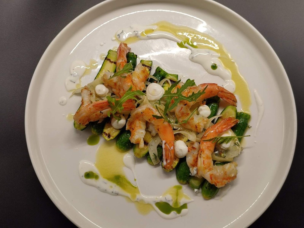Το Ambrosia είναι ένα κοινό μυστικό για τους λάτρεις του fine dining. Το menu έχει και εδώ την υπογραφή του Απόστολου Αλτάνη και είναι βασισμένο στην παραδοσιακή ελληνική κουζίνα με ένα δημιουργικό twist. Δεν είναι τυχαίο πως ο κ. Αλτάνης έχει αποκτήσει φανατικούς οπαδούς που ψάχνουν αφορμή για να επισκεφτούν τη Θεσσαλονίκη για να απολαύσουν τα πιάτα του Ambrosia. Kαι δεν είναι τυχαίο ότι ο chef συμβουλεύεται τους καλούς πελάτες ώστε οι όποιες αλλαγές στο μενού να τους ικανοποιούν απόλυτα. Αυτή τη φορά δοκιμάσαμε κεφτεδάκια θαλασσινών με αστακό και και ξυνομυζήθρα, σαλάτα με ψητά κολοκυθάκια, γαρίδες, φινόκιο και ντρέσινγκ γιαουρτιού και ως κύριο πιάτο πιλάφι θαλασσινών με γαρίδες, μπλε καβούρι και σπαράγγια. Όλα νοστιμότατα, έφεραν τη θάλασσα στο πιάτο μας ενώ απολαμβάναμε τη θέα στην εξωτερική πισίνα και τους υπέροχους κήπους του Hyatt Regency Thessaloniki