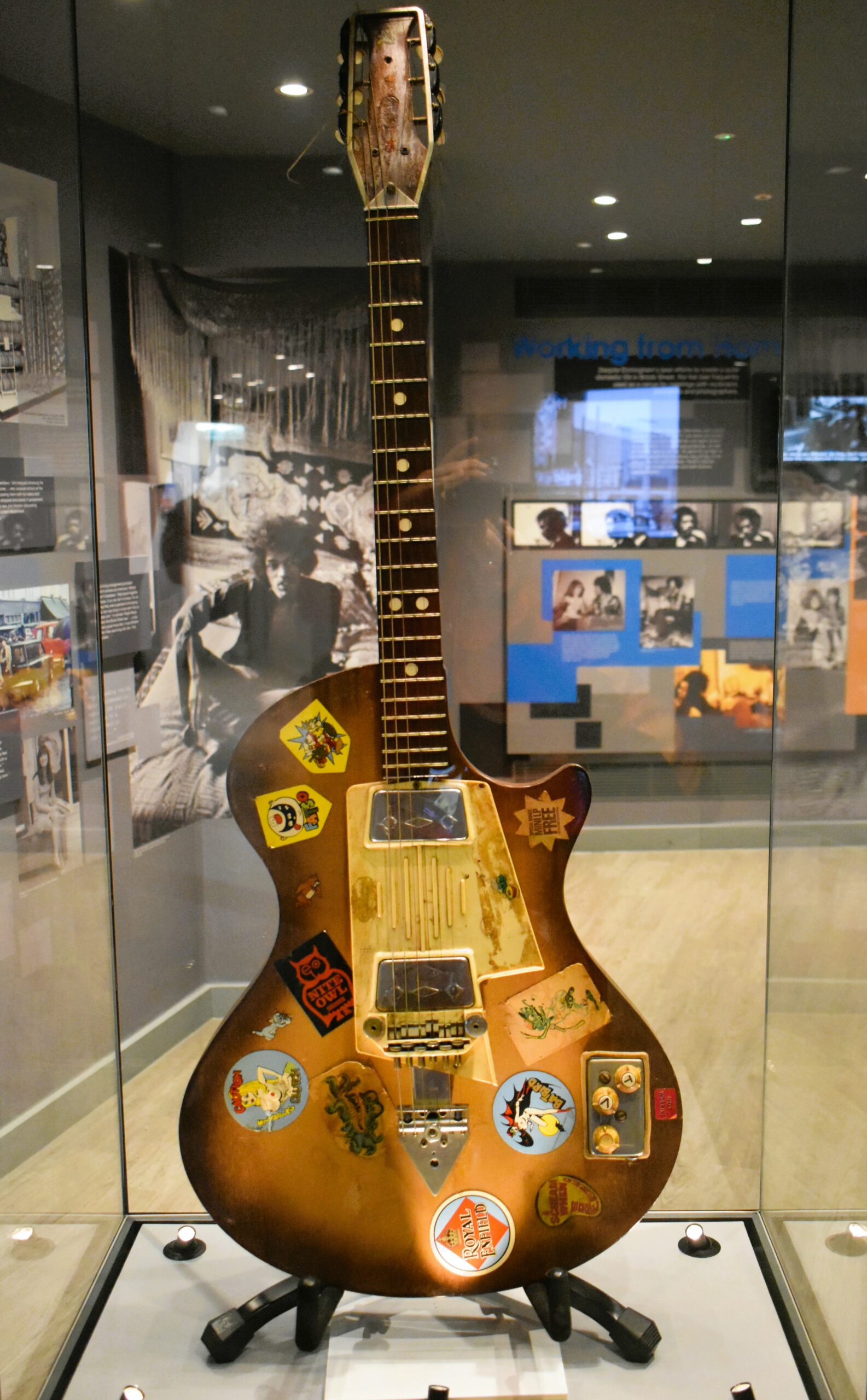Μη χάσετε: το πλούσιο οπτικοακουστικό υλικό για την καριέρα του Τζίμι Χέντριξ και μέρος της συλλογής δίσκων του που εκτίθεται ξεχωριστά και περιλαμβάνει τα «Messiah» και «Water Music» του Χέντελ που είχε αγοράσει από το δισκοπωλείο One Stop Record Shop στην κοντινή South Molton Street.