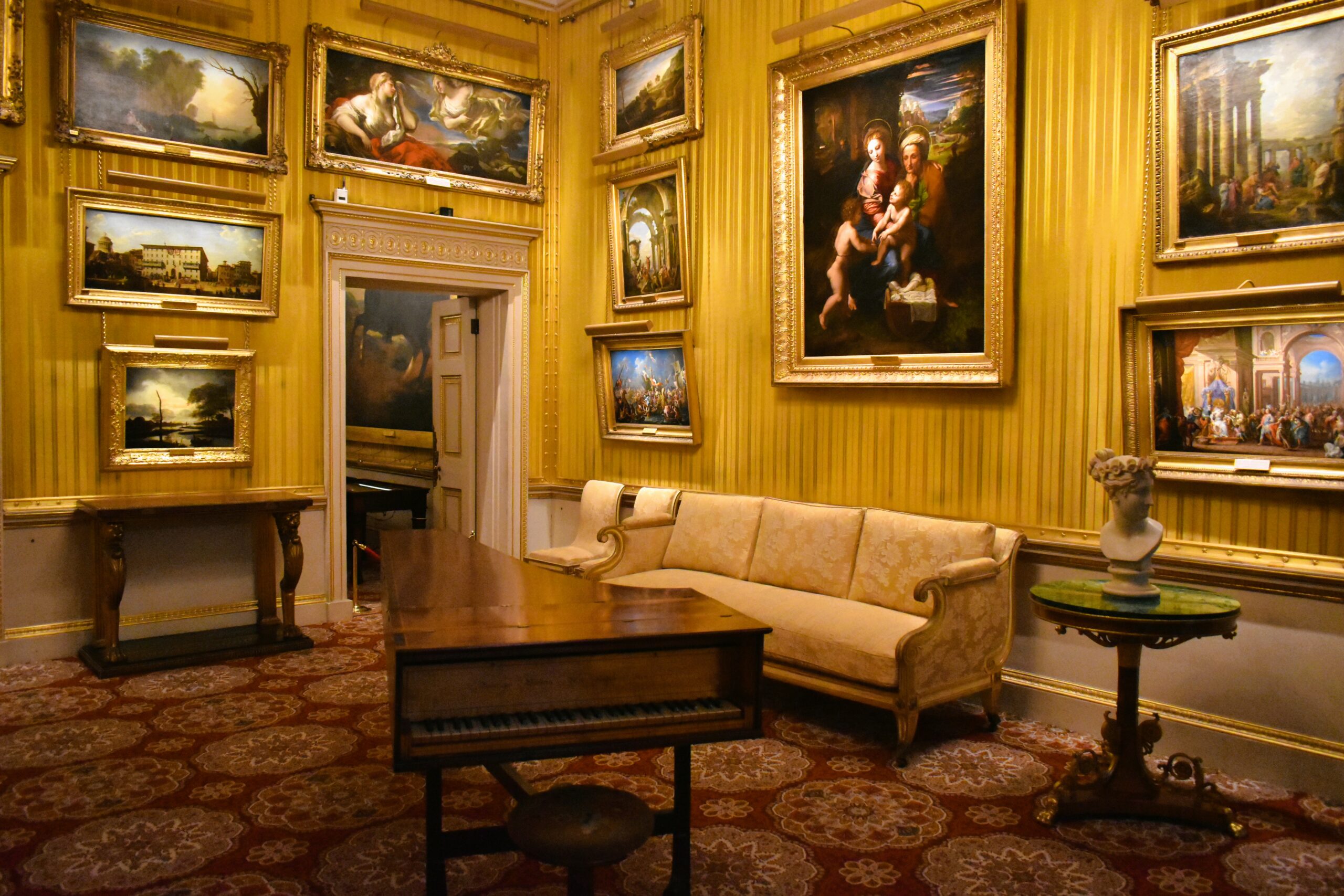 Αρκεί να παρατηρήσετε τα εκατοντάδες τιμητικά δώρα που λάμβανε από Ευρωπαίους μονάρχες, όπως τα σερβίτσια πορσελάνης με τις παραστάσεις των μαχών του, τα εντυπωσιακά σπαθιά, την εκπληκτικά λεπτοδουλεμένη ασπίδα που παρήγγειλαν Λονδρέζοι έμποροι και τραπεζίτες στους αργυροχόους της πόλης, και θα νοιώσετε το ίδιο δέος όπως οι καλεσμένοι της ετήσιας επίσημης δεξίωσης που παρέθετε ο Δούκας σε ανάμνηση του Βατερλό, οπότε μπορούσαν να τα θαυμάσουν από κοντά. Κάποια από τα δωμάτια διατηρούν τα εντυπωσιακά τζάκια, τα χρώματα στις μεταξωτές ταπετσαρίες και τα γυψανάγλυφα της αυθεντικής διακόσμησης του Robert Adam, όλα όμως φιλοξενούν μέρος της πολύ σημαντικής συλλογής ζωγραφικής του φιλότεχνου Δούκα. Από αυτούς τους 3.000 πίνακες και έργα τέχνης, οι σπουδαίοι Ολλανδοί ζωγράφοι εκτίθενται στο δωμάτιο ψυχαγωγίας όπου το 1824 είχε δώσει ρεσιτάλ o Rossini, ενώ το απόλυτο λάφυρο πολέμου, το επικών διαστάσεων γυμνό άγαλμα του Ναπολεόντα, που φιλοτέχνησε ο Canova απεικονίζοντάς τον σαν το Ειρηνοποιό θεό Άρη, βρίσκεται στη βάση της εσωτερικής σκάλας.