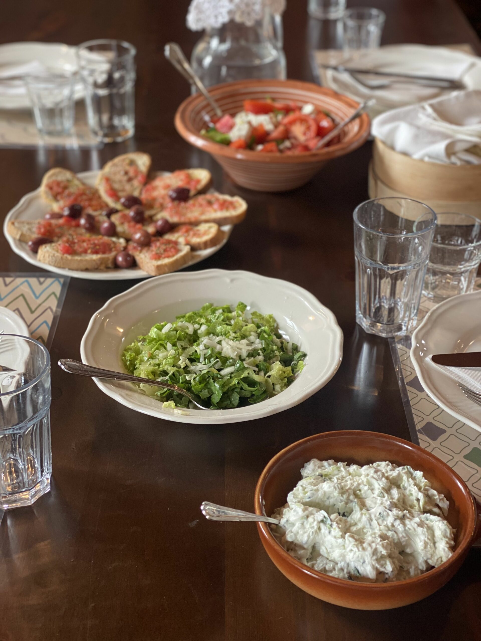 Επισκεπτόμαστε ένα παραδοσιακό σπίτι της περιοχής, στις παρυφές της Πύλου, όπου συμμετέχουμε ενεργά στην παρασκευή του γεύματος, όπως προσφέρεται μέσα από τις αυθεντικές εμπειρίες της Costa Navarino. Αρχικά φτιάχνουμε σπιτικά ζυμαρικά, τις χυλοπίτες, με βάση την παραδοσιακή συνταγή. Στη συνέχεια ετοιμάζουμε την παραδοσιακή πίτα, όπου αντί για φύλλο, χρησιμοποιούμε κουρκούτι και μπόλικο ελαιόλαδο. Φρέσκιες σαλάτες, αλλά και κόκορας κοκκινιστός συνθέτουν ένα πλήρες γεύμα που κρύβει μέσα του Ελλάδα και γεύση.