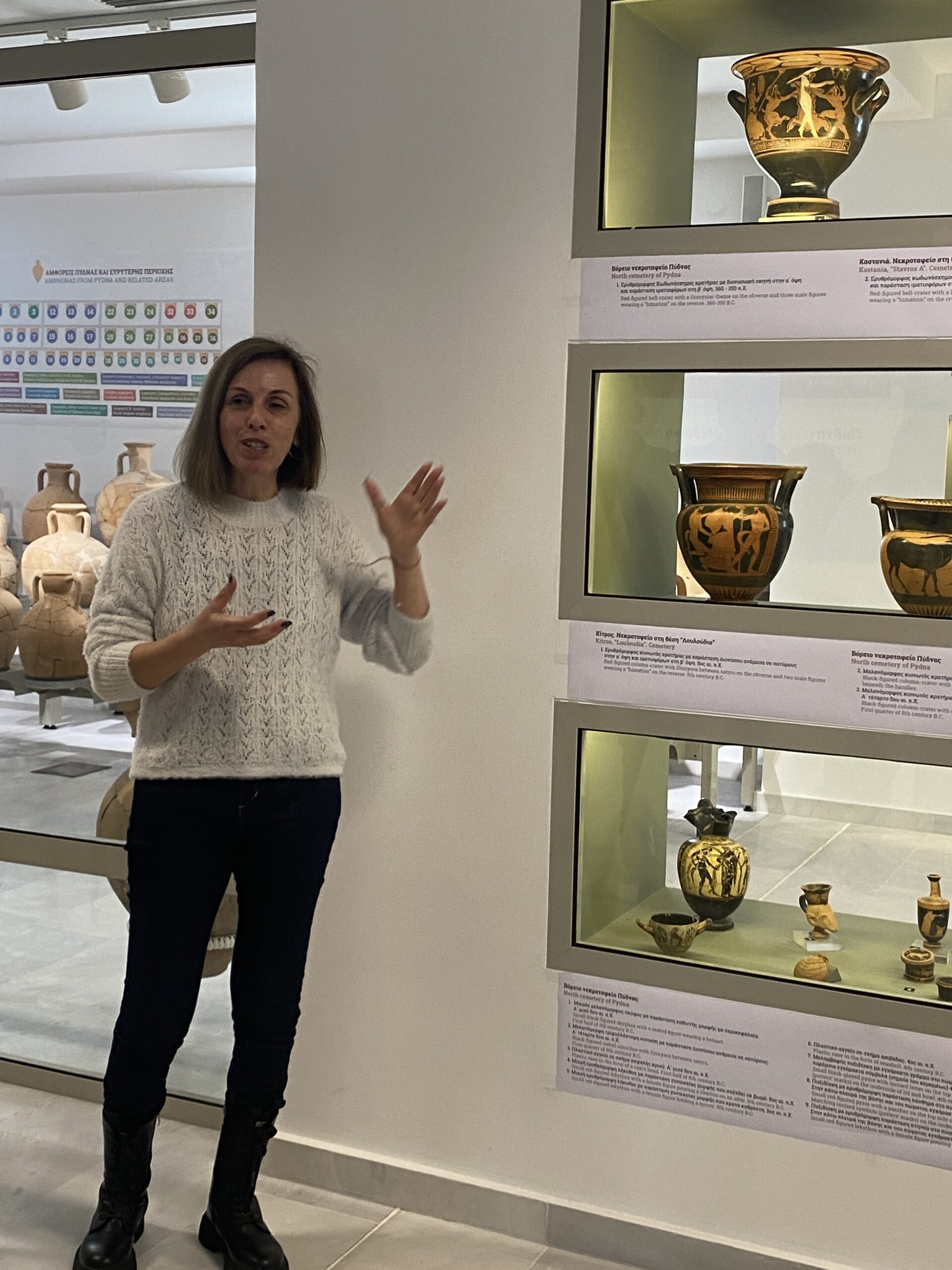 Ήταν η πρώτη φορά που θα επισκεπτόμουν μία μουσειακή αποθήκη. Όχι μουσείο! Όταν το είδα στο πρόγραμμα απόρησα και ήθελα να δω τι είναι αυτό που το διαφοροποιεί από το μουσείο. Φθάσαμε στον Μακρύγιαλο, μετά την επίσκεψη στην Αρχαία Πύδνα και η αλήθεια είναι ότι είχα ήδη μπει στη διαδικασία να σκεφτώ και να ακούσω σχετικά με την ιστορία του τόπου. Μπαίνοντας στο χώρο, η υπεύθυνη αρχαιολόγος, η κα Αθηνά Αθανασιάδου, μου έδωσε κάποιες γενικές πληροφορίες για την ιστορία της περιοχής ενώ μας ενημέρωσε για τον εκπαιδευτικό χαρακτήρα της αποθήκης. «Δεχόμαστε πολλούς επισκέπτες μαθητές όπου στο πλαίσιο των εκπαιδευτικών τους εκδρομών ενημερώνονται για την ιστορικότητα της περιοχής και στη συνέχεια συμμετέχουν σε μία διαδικασία δημιουργίας με πλαστελίνη, ή χρώματα, ή άλλα υλικά, ενός αντικειμένου όπως το φαντάζονται από το παρελθόν».