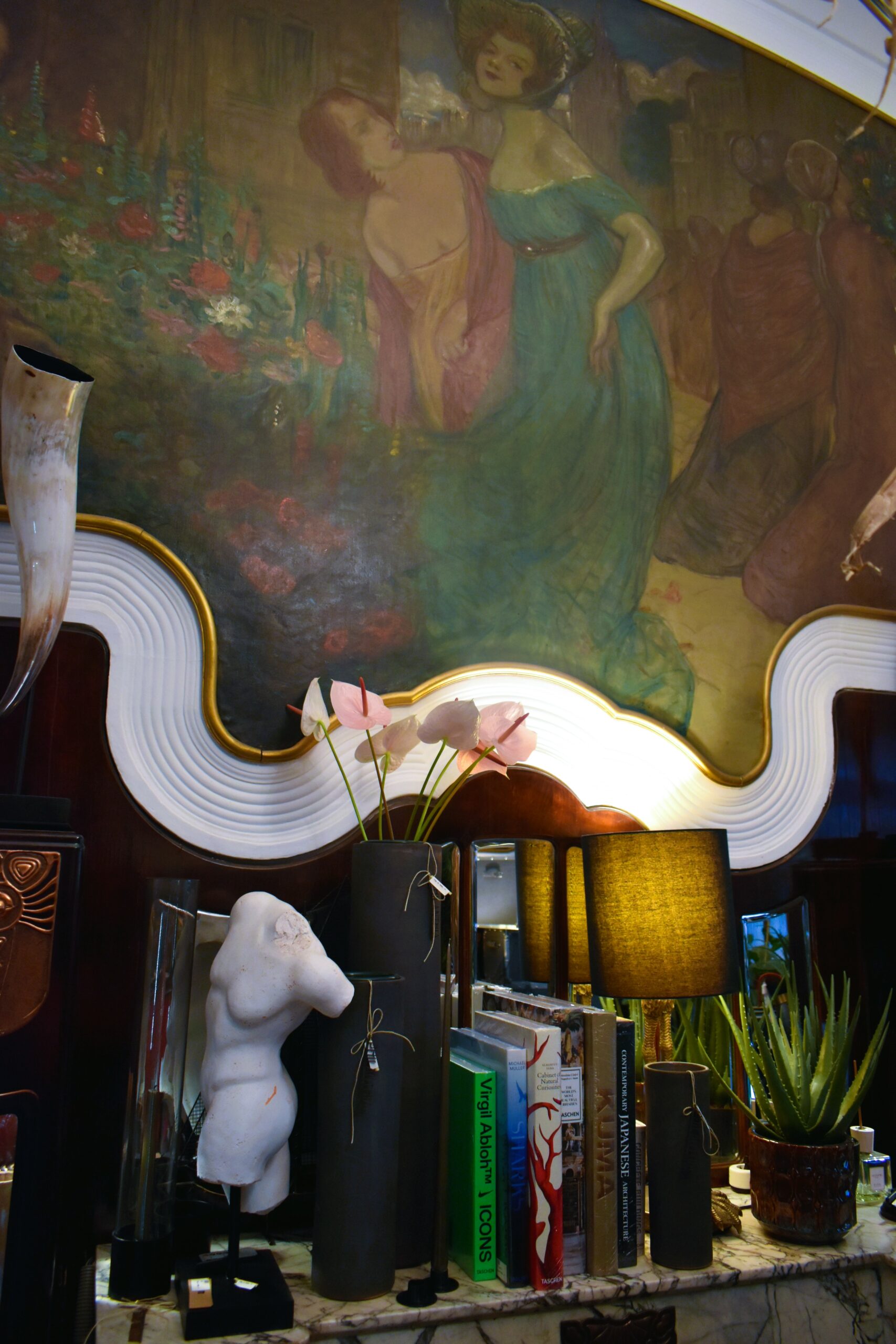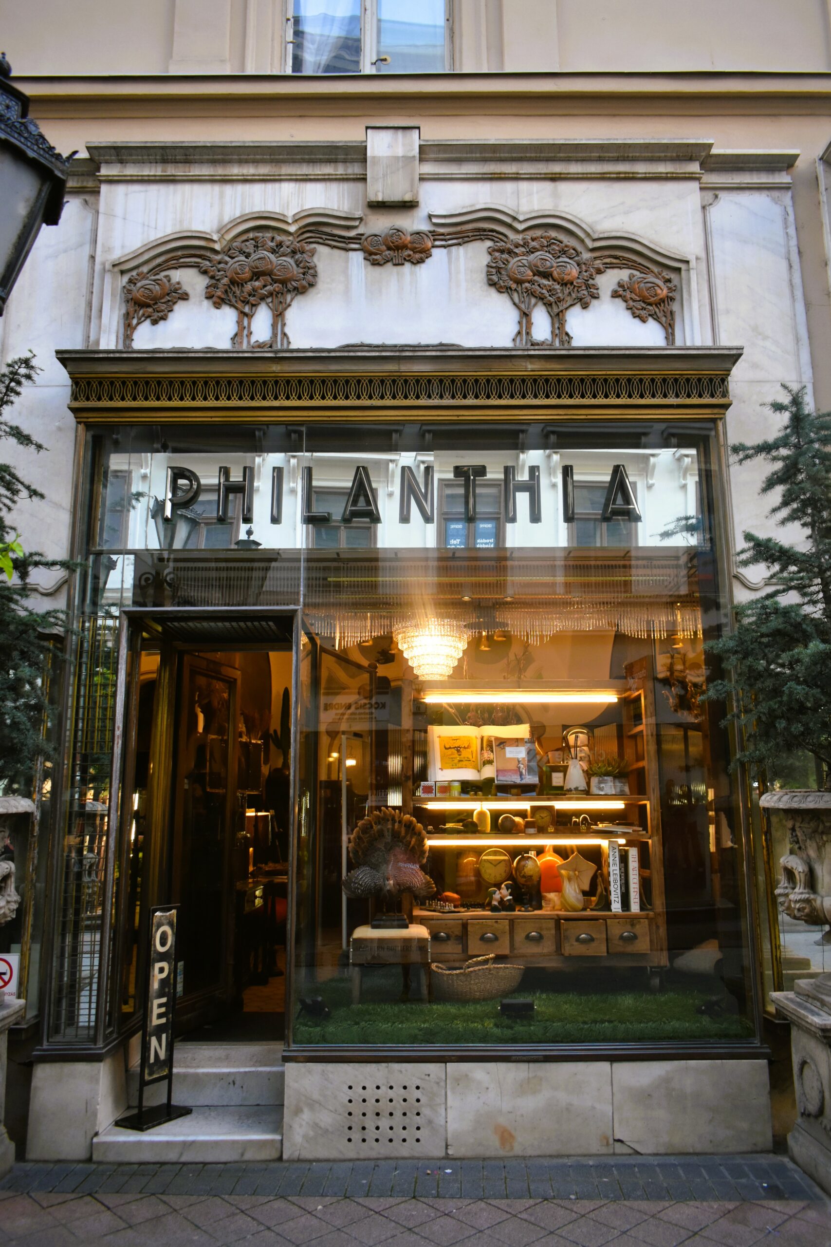 Θα δυσκολευτείτε να πιστέψετε ότι η αρτίστικη βιτρίνα ενός κομψοτεχνήματος του κινήματος Art Nouveau ανήκει σε ένα ανθοπωλείο, αλλά ακριβώς αυτή είναι η εμπορική χρήση του πανέμορφου καταστήματος στον αριθμό 9 της Váci utca. Δύο μεγάλοι πέτρινοι αμφορείς-γλάστρες πλαισιώνουν την είσοδο που στεφανώνεται από γυψανάγλυφα με θέμα τα λουλούδια, ενώ το εσωτερικό θα σας αφήσει κυριολεκτικά άφωνους. Έργο του αρχιτέκτονα Kálmán Albert Körössy, χρονολογείται στο 1906 και παραμένει άψογα διατηρημένο, με τις χαρακτηριστικές για το καλλιτεχνικό ρεύμα τοιχογραφίες και τις ονειρικές φιγούρες, το επιβλητικό μαρμάρινο τζάκι, τις πλούσιες καμπύλες, τους καθρέφτες και τα φωτιστικά εποχής. Ένα παγώνι δεσπόζει στο σύμπαν του Philanthia, πλαισιωμένο από αποξηραμένες και φρέσκες ανθοσυνθέσεις, τίτλους τέχνης και ιδέες για μοναδικά δώρα και διακοσμητικά εσωτερικού χώρου.