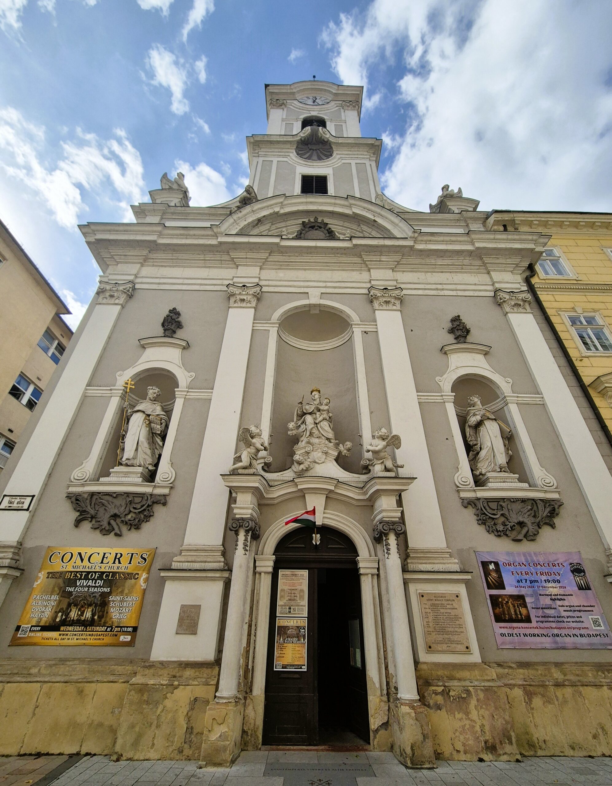 Ο συμμετρικός μπαρόκ ναός που θα δείτε στη γωνία με την οδό Nyári Pál utca, δεν είναι η πρωτότυπη εκκλησία Belvárosi Szent Mihály templom του 1230, αφού εκείνη καταστράφηκε από τους Τούρκους το 1541. Στη θέση του κατεστραμμένου καθολικού ναού χτίστηκε νέος από Δομινικανούς μοναχούς το 18ο αιώνα, που ανακαινίστηκε μεταξύ 1964-1968. Υπάρχουν δύο τρόποι για να θαυμάσετε το λουσμένο σε χρυσαφένιο φως εσωτερικό με τον εντυπωσιακό τρούλο και τον όμορφο άμβωνα: είτε να επισκεφθείτε την εκκλησία από τη μία το μεσημέρι ως τις έξι το απόγευμα που παραμένει ανοιχτή, είτε να παρακολουθήσετε κάποιο από τα πολύ δημοφιλή κονσέρτα κλασικής μουσικής των Vivaldi, Mozart, Haydn μεταξύ άλλων, συνήθως κάθε Τετάρτη και Παρασκευή, που λαμβάνουν χώρα στον εξαιρετικής ακουστικής ναό.