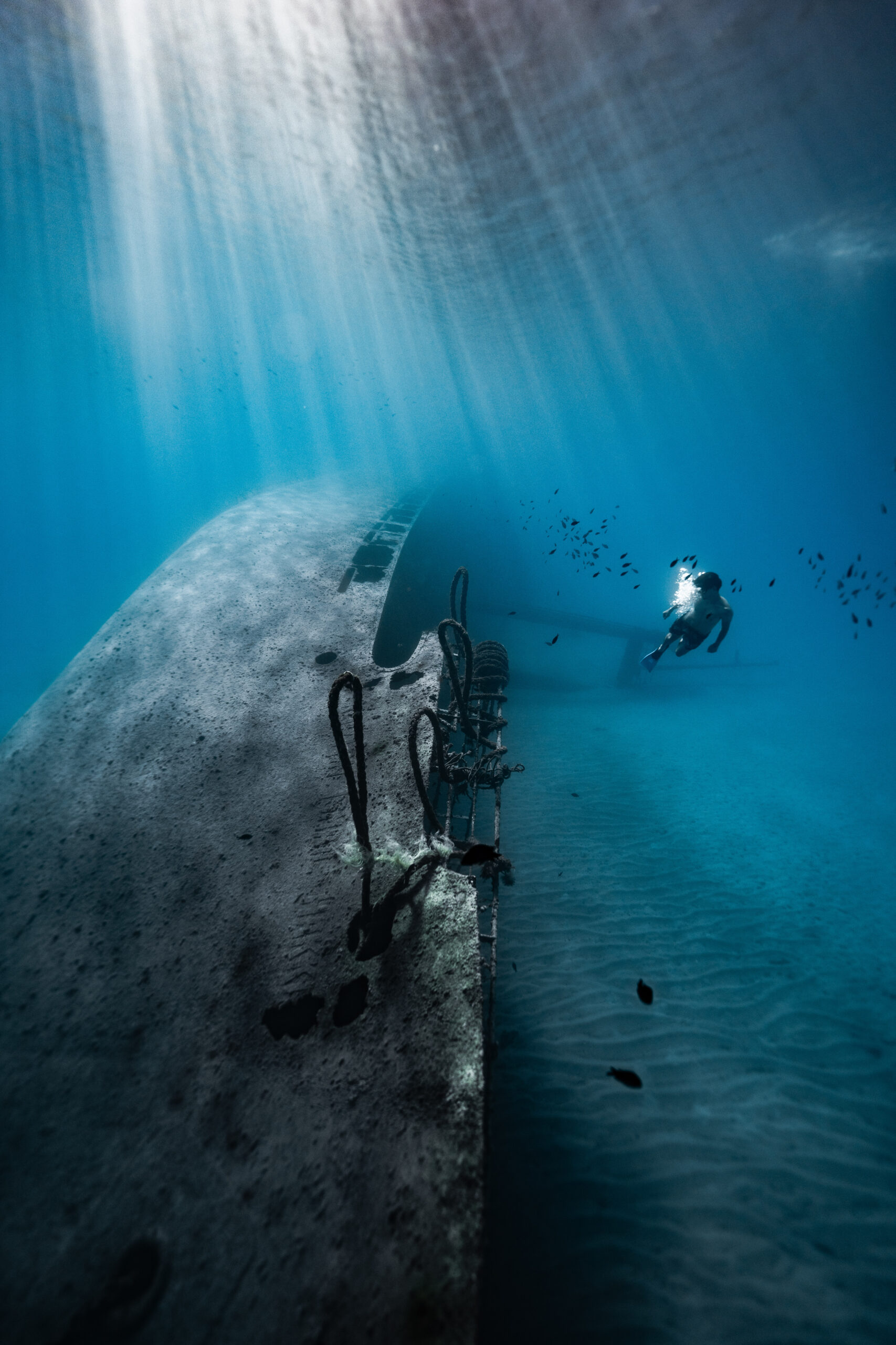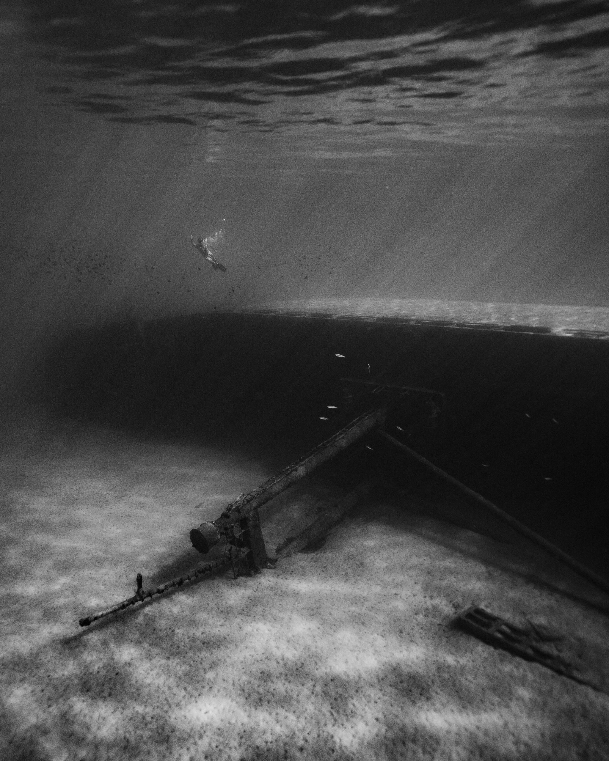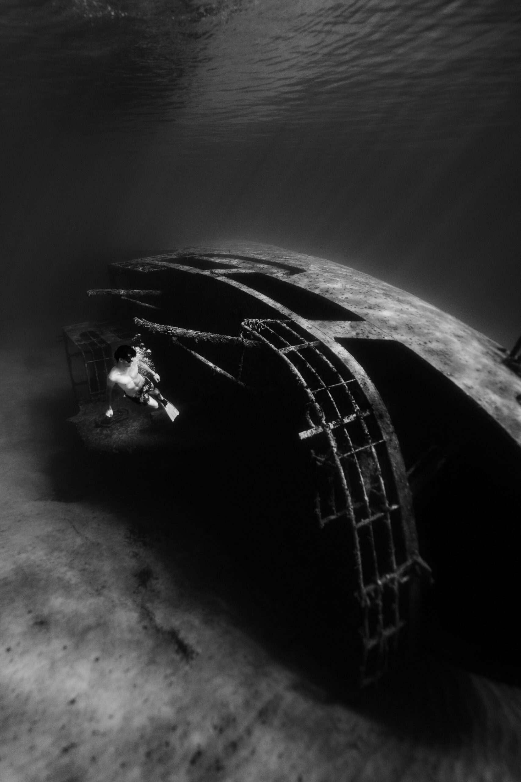 προπέλα να βρίσκονται ακόμη εκεί. Η πλώρη του κοιτάει το ανοικτό πέλαγος. Το μικρό βάθος, ο
