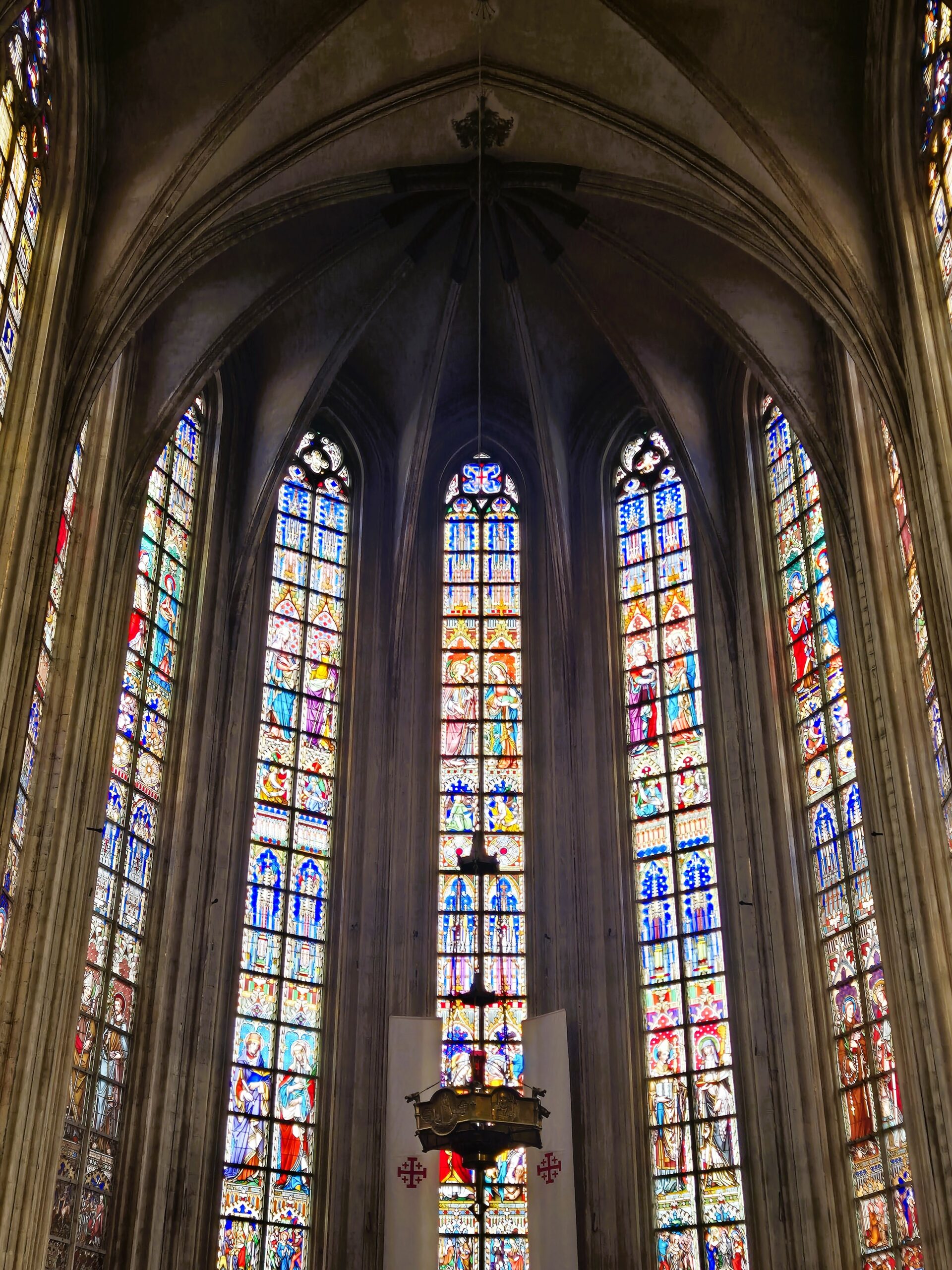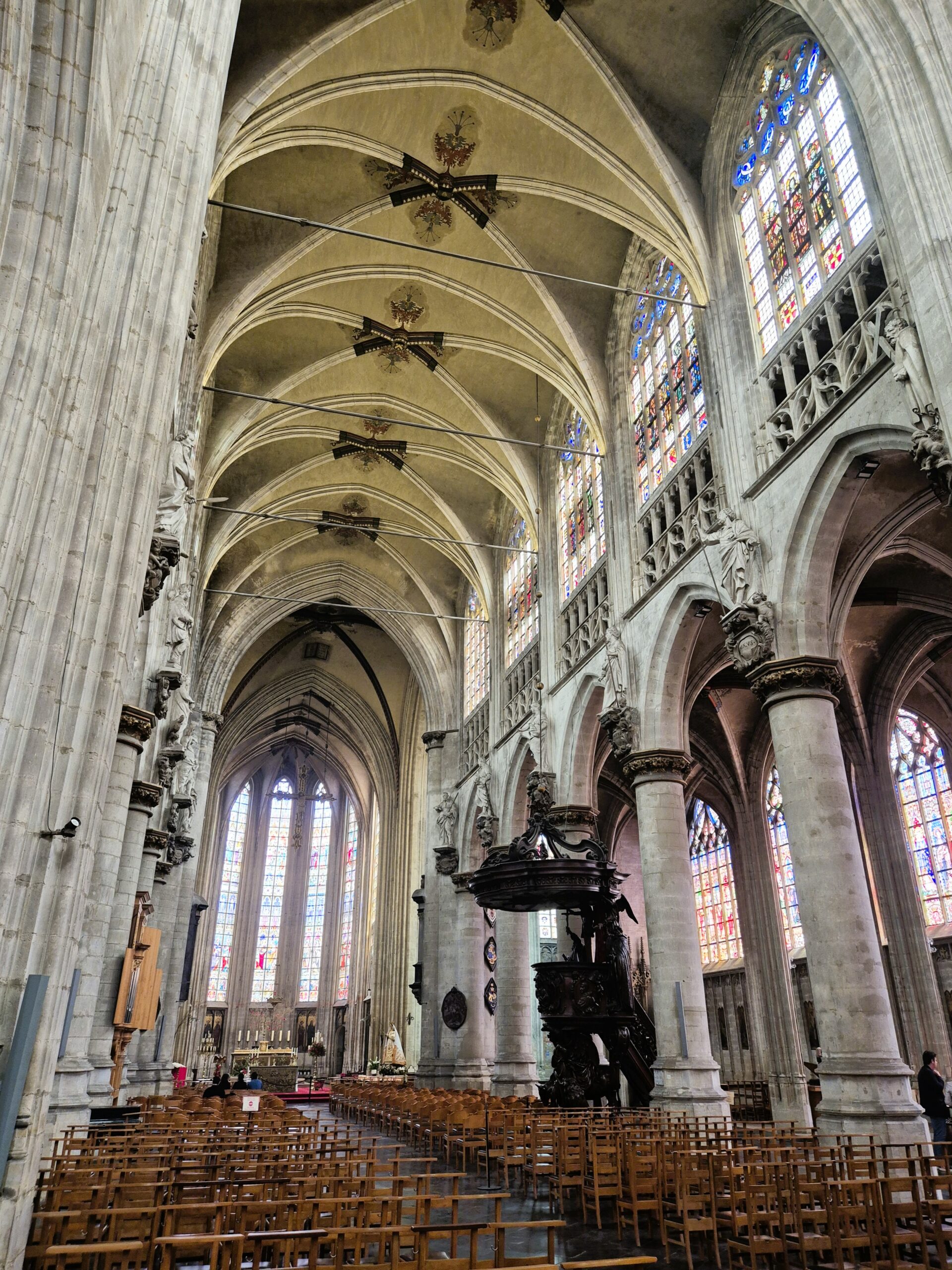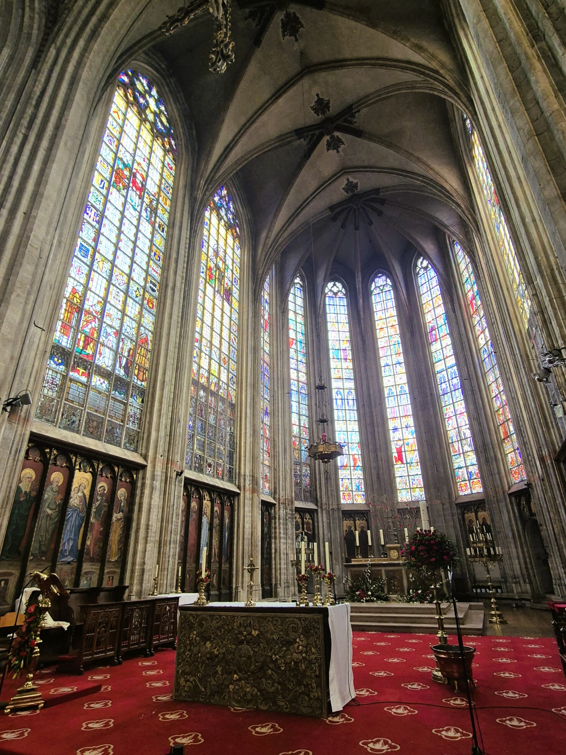 Η αυξανόμενη δημοφιλία της περιοχής οδήγησε τελικά στην ένταξή της στη νέα περιτοίχιση της πόλης, ενώ και η πάλαι ποτέ ταπεινή εκκλησία εξελίχθηκε το 1549 στην Église Notre-Dame du Sablon -Παναγία του Σαμπλόν- το εντυπωσιακότερο ίσως δείγμα γοτθικού ρυθμού της Βραβάντης, που συναγωνίζεται σε μεγαλοπρέπεια τον Καθεδρικό ναό των Βρυξελλών. Η επιβλητική αίσθηση που αποπνέει εξωτερικά ο ογκώδης ναός δίνει τη θέση της στη μυσταγωγική γαλήνη που κυριαρχεί στο εσωτερικό. Εδώ, το βλέμμα σηκώνεται ψηλά, με το φως που διαχέεται μέσα από τα πολύχρωμα βιτρό των 11 ψηλόλιγνων παραθύρων να πλημμυρίζει τον χώρο με μπλε, κόκκινες και χρυσαφιές αποχρώσεις. Καθένα από αυτά τα ύψους 15 μέτρων ζωγραφιστά παράθυρα που περιβάλλουν την Αγία Τράπεζα αποτελεί έργο κάποιου σπουδαίου Φλαμανδού τεχνίτη, μια περίτεχνη απεικόνιση θρησκευτικών σκηνών που έρχεται σε έντονη αντίθεση με τις αυστηρές καμάρες και τις αιχμηρές αψίδες.