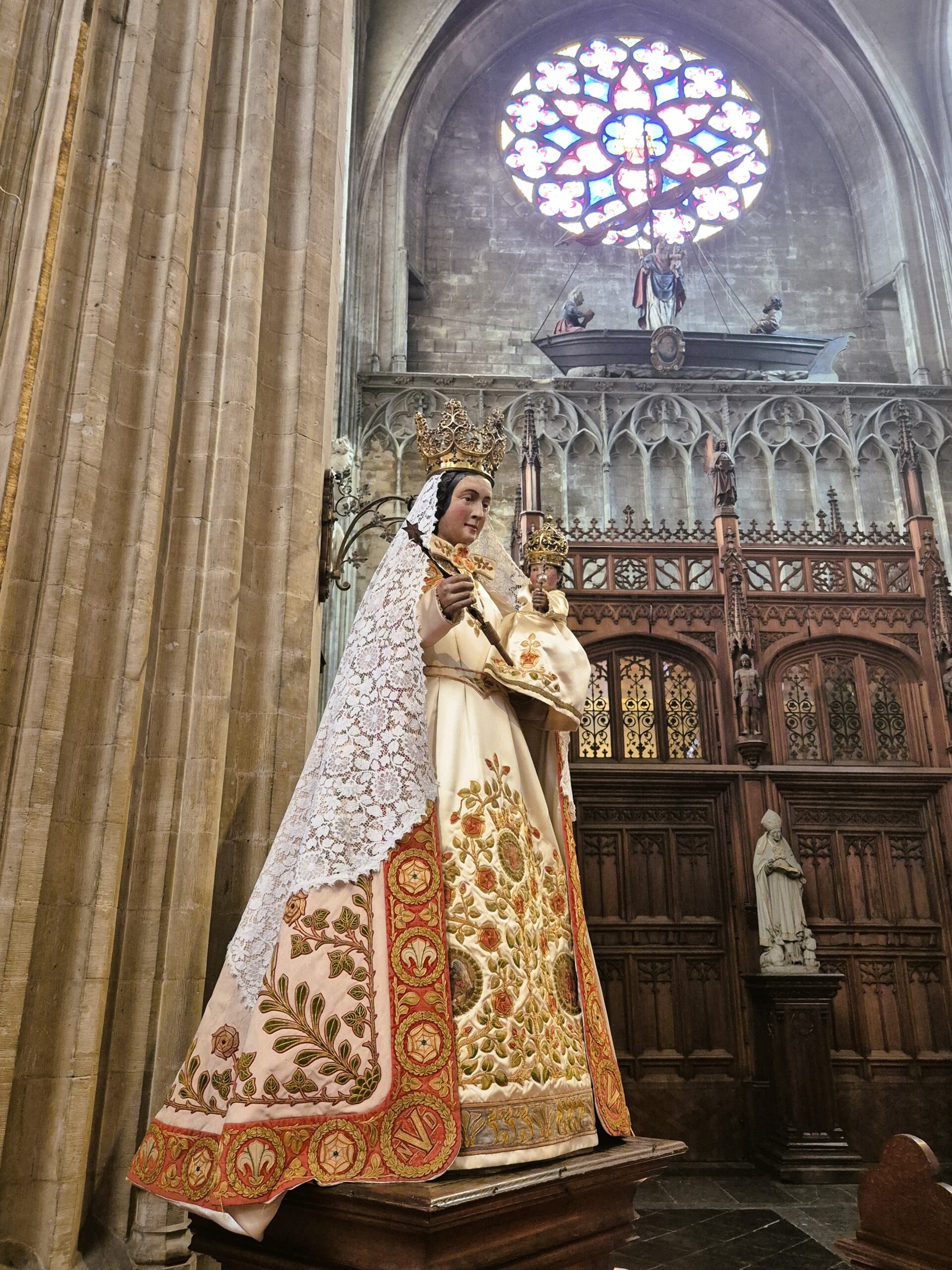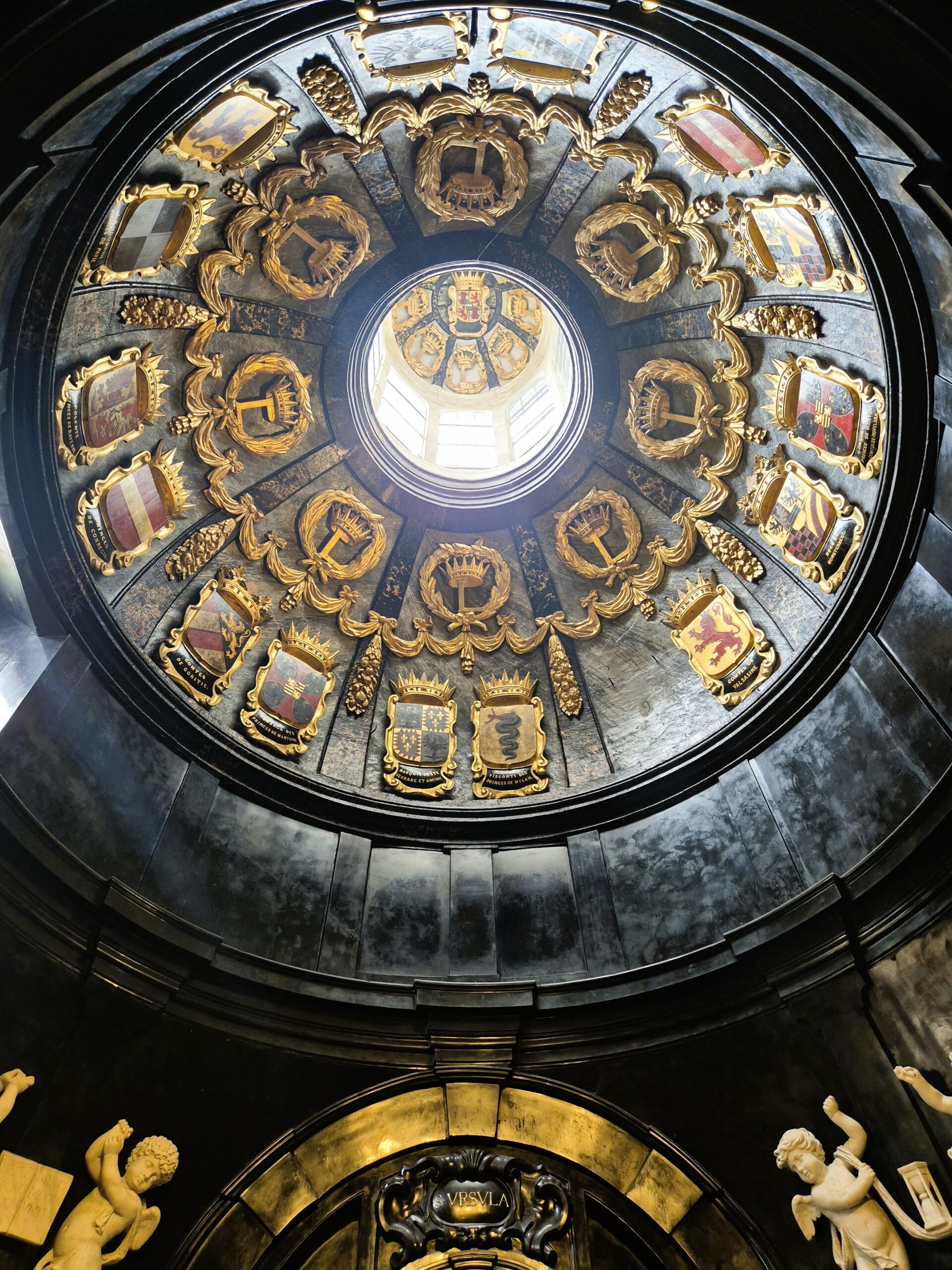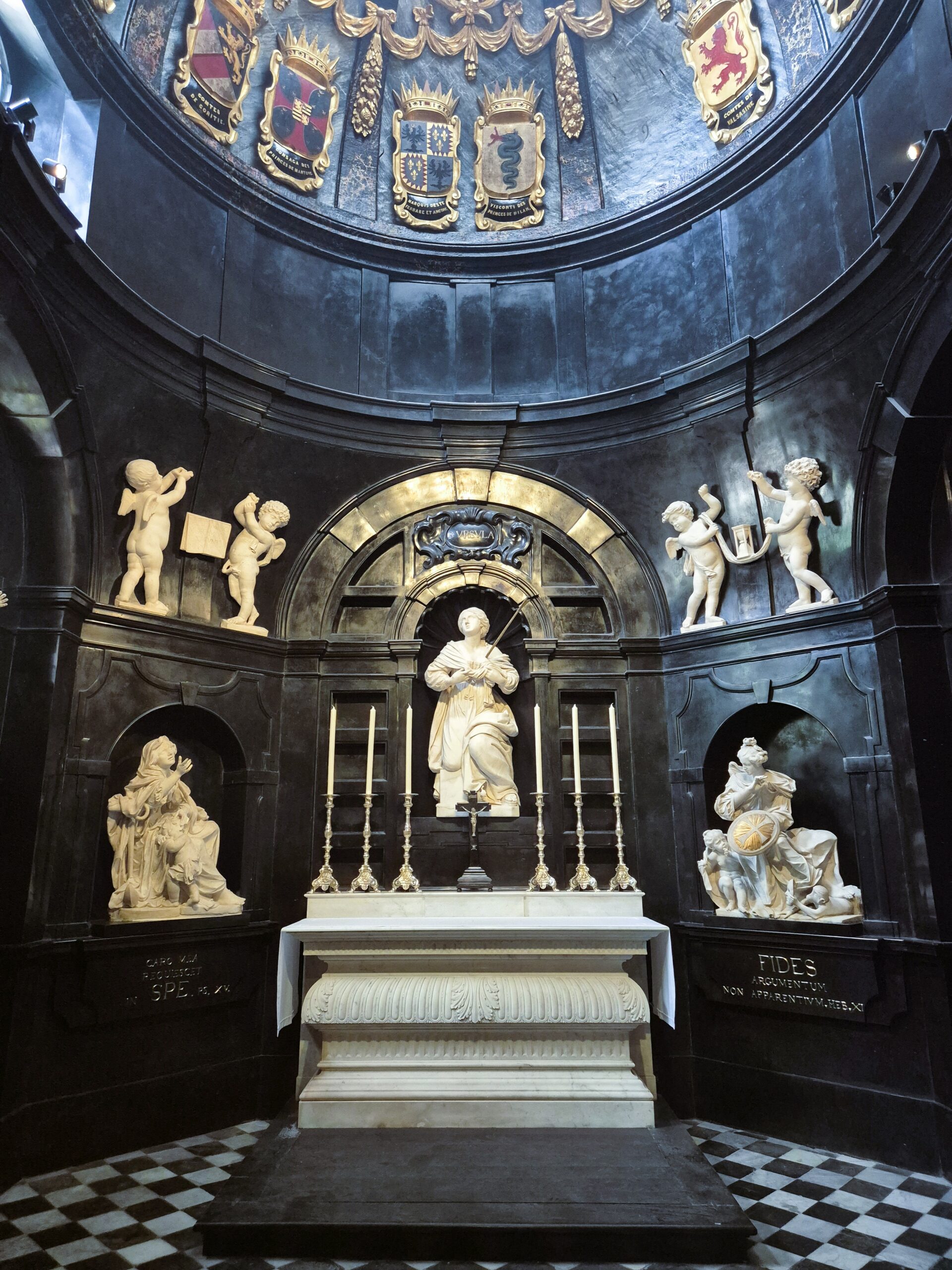 Μεταξύ των μοναδικών στοιχείων της Παναγίας του Σαμπλόν ξεχωρίζουν οι πέντε νάρθηκες, η αναπάντεχη προσθήκη δύο μπαρόκ παρεκκλησίων δίπλα στο χοροστάσιο και κυρίως ο ξυλόγλυπτος άμβωνας του 1697, που με τον πλούσιο διάκοσμό του μαρτυρά τον πλούτο και τη φινέτσα της εποχής. Αξίζει να αφιερώσετε λίγο από τον χρόνο σας στο οκταγωνικό ταφικό παρεκκλήσι του Πρίγκηπα Lamoral de la Tour et Tassis, πραγματικά εκθαμβωτικό, καλυμμένο με μαύρο και λευκό μάρμαρο σε μια δραματική αντίθεση και διακοσμημένο με υπέροχα αγάλματα από μάρμαρο Carrara, όπως αυτό της Αγίας Ούρσουλας. Κάτω από τον χρυσοποίκιλτο, διακοσμημένο με οικόσημα πριγκιπικών οικογενειών τρούλο, στεγάζεται πλέον ένα μικρό μουσείο που αφηγείται την ιστορία του ναού και της περιοχής, γεμάτο σπάνια θρησκευτικά βιβλία, λειτουργικά σκεύη, κειμήλια και γεμάτα κίνηση και παραστατικότητα αγάλματα που στολίζουν μεγαλοπρεπή ταφικά μνημεία.