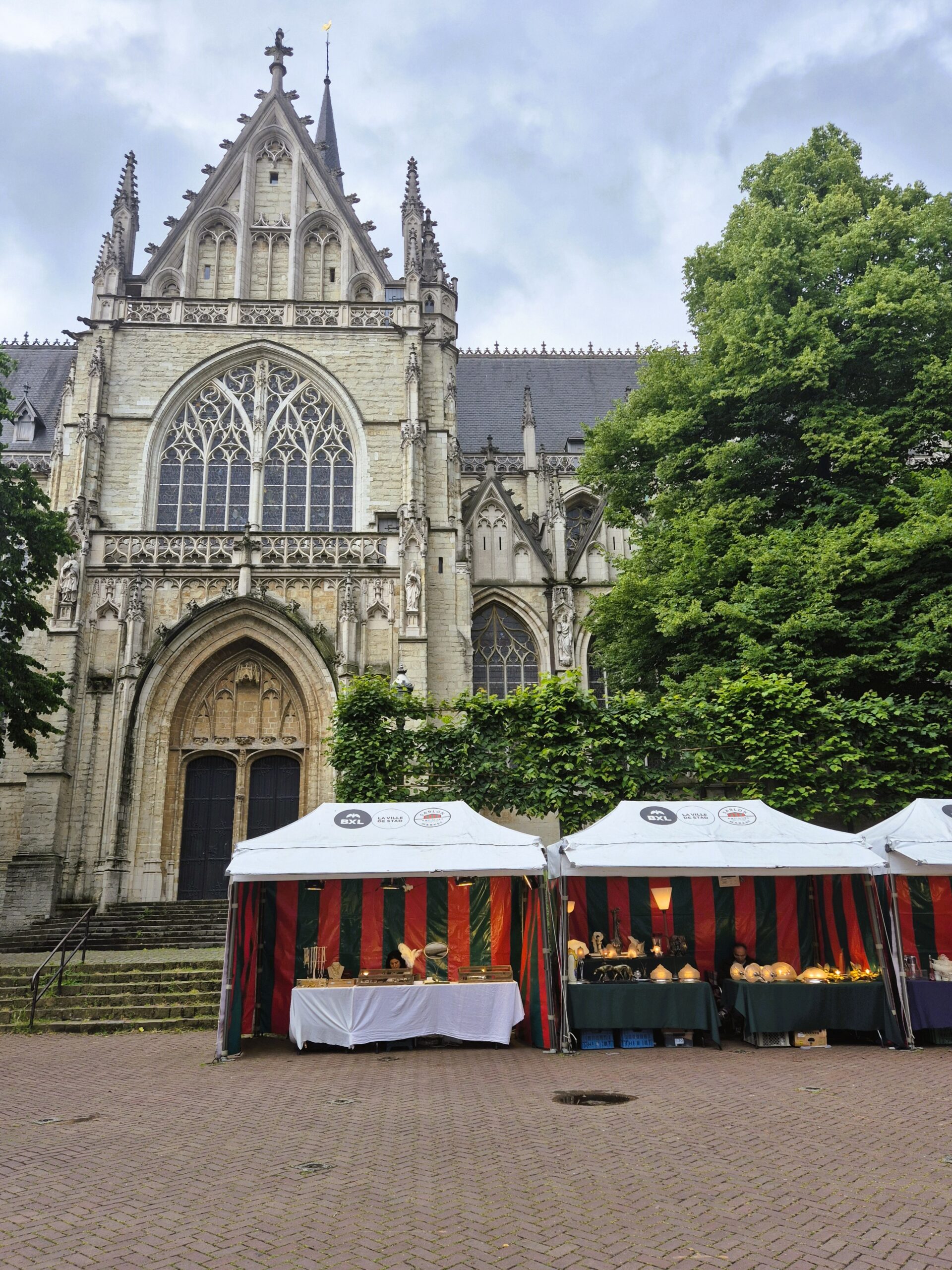 Κάτω από τους δίδυμους πυργίσκους της πρόσοψης, τα οξυκόρυφα τόξα και τα τριγωνικά αετώματα της Notre-Dame des Victoires du Sablon -όπως είναι το επίσημο όνομα της εκκλησίας-, απλώνεται η μία από τις δύο πλατείες που αποτελούν πόλο έλξης στην περιοχή. Η μεν Place du Grand Sablon, που εν μέρει δημιουργήθηκε όταν ελευθερώθηκε χώρος μετά την κατεδάφιση παλιών οικημάτων που εφάπτονταν στην προγενέστερη εκκλησία, οφείλει τη γοητεία της σε όσα κτήρια παρέμειναν, αποτελώντας έξοχα αρχιτεκτονικά δείγματα των ρυθμών Λουδοβίκου ΙΔ΄, ΙΕ΄ και ΙΣΤ΄. Συμμετρία, γαλλικός κλασικισμός, μπαρόκ στοιχεία και ανάλαφρες καμπύλες συμβάλλουν στη μεγαλοπρεπή εικόνα της πλατείας, ενώ παράλληλα οι πανομοιότυπες, κομψές στην απλότητά τους, τέντες που βλέπετε να καταλαμβάνουν μεγάλο μέρος της, φιλοξενούν την εξαιρετική υπαίθρια αγορά αντικών, που κάθε Σαββατοκύριακο δίνει έναν επιπλέον λόγο σε Βέλγους και τουρίστες να ανηφορίσουν ως εδώ.