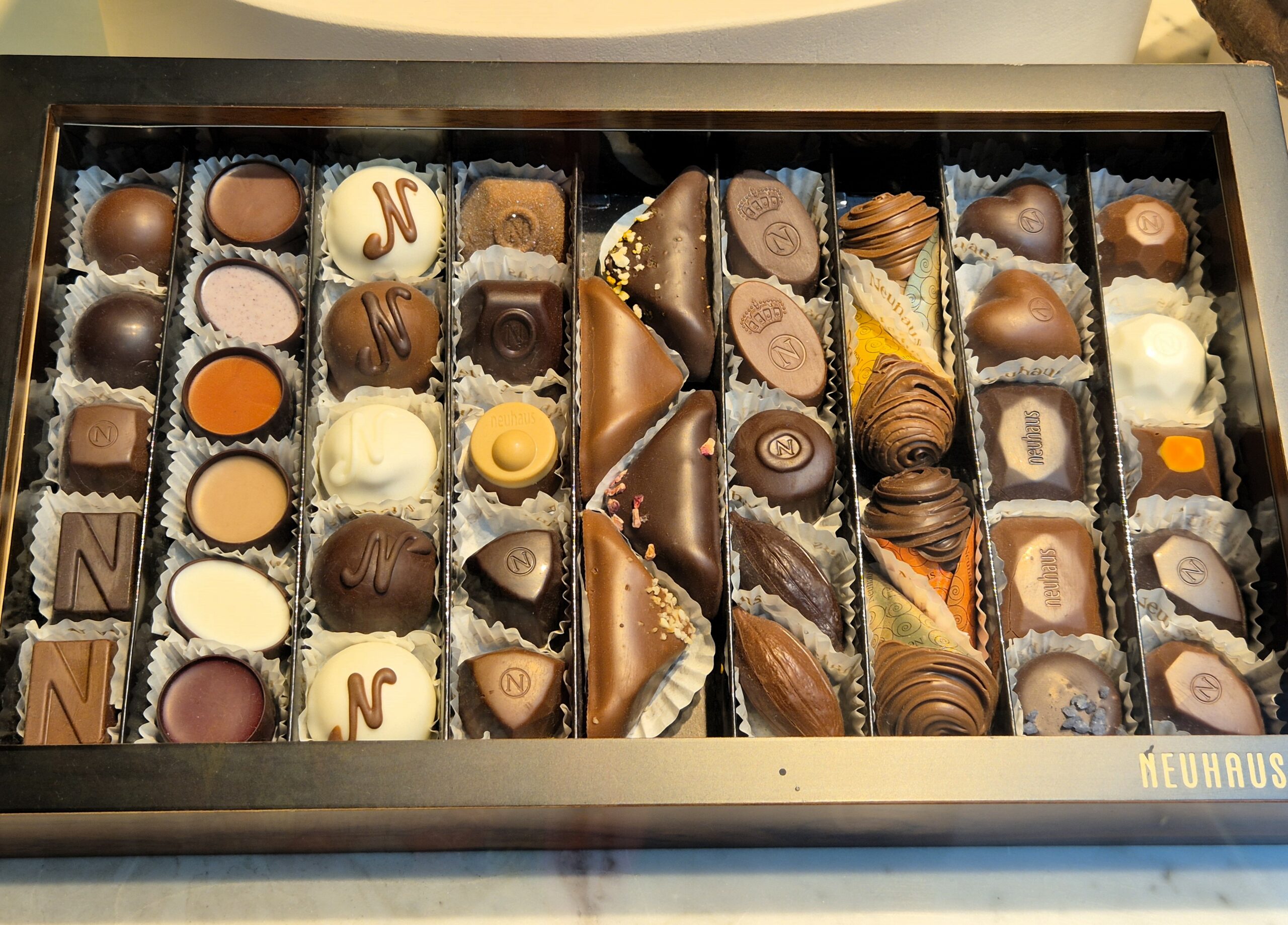 Λίγο πιο κάτω, μια δελεαστική παρέλαση από πραλίνες και σοκολάτες κάθε είδους ξεδιπλώνεται στις σοκολατερί Pierre Marcolini και Neuhaus. Αληθινή σπουδή στον απολαυστικό κόσμο της σοκολάτας η επίσκεψη στη θεαματική γωνιακή ναυαρχίδα του Pierre Marcolini, μας ταξιδεύει από το Περού στην Κούβα και από το Μπαλί στη Γουαδελούπη προς αναζήτηση των εκλεκτότερων και σπανιότερων κόκκων κακάο, που θα χαρίσουν τα φρουτώδη, υπόξινα, γήινα, έντονα ή διακριτικά αρώματά τους στις διάσημες σοκολάτες του. Απέναντι, ο εφευρέτης της βελγικής πραλίνας Jean Neuhaus, δεν χρειάζεται ιδιαίτερες συστάσεις. Μόνο όρεξη για να ανακαλύψεις την αγαπημένη σου γεύση ανάμεσα σε μια εμπνευσμένη συλλογή από σοκολατάκια με διάφορα είδη γέμισης, αυτό ακριβώς που συνιστά την επιτομή και τον ορισμό της γνήσιας βελγικής πραλίνας, που επινοήθηκε εδώ το 1912.