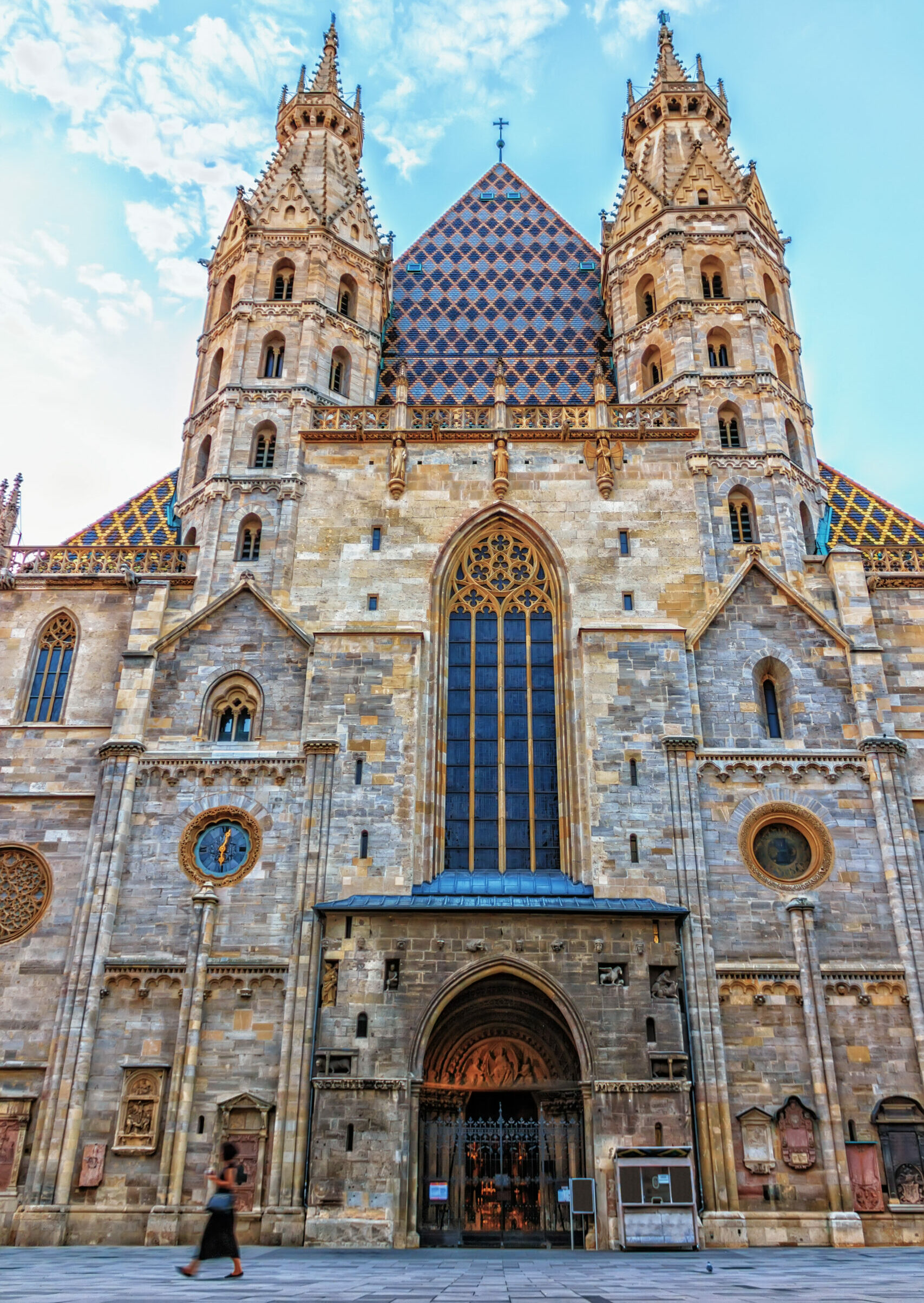 Ακριβώς δίπλα, βρίσκεται ο Καθεδρικός Ναός του Αγίου Στεφάνου, ένας πραγματικά επιβλητικός ναός, χτισμένος πάνω στα ερείπια δύο παλαιότερων ναών, εκ των οποίων ο αρχαιότερος καθαγιάστηκε το 1147. Το αρχιτεκτονικό του ύφος συνδυάζει ρομανικά και γοτθικά στοιχεία, ενώ το πιο χαρακτηριστικό του γνώρισμα είναι η πολύχρωμη ψηφιδωτή στέγη του. Ο ναός διαθέτει επίσης κατακόμβες, όπου βρίσκονται θαμμένοι περισσότεροι από 11.000 άνθρωποι, από τις επιδημίες πανώλης του 1713 και ιδιαίτερα μετά το 1735, καθώς μεταφέρθηκαν εκεί οστά από τα κοιμητήρια της πόλης. Οι κατακόμβες σήμερα είναι επισκέψιμες.