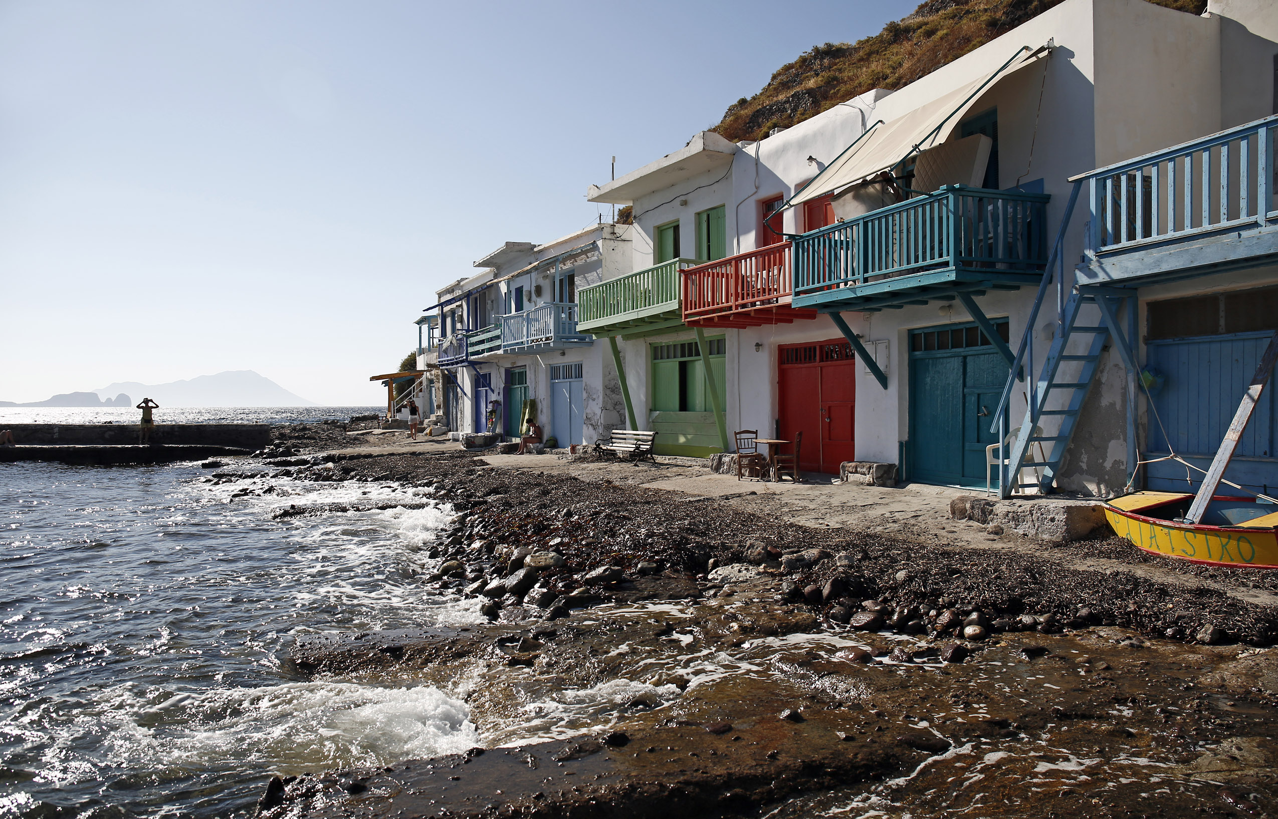 Οι κάτοικοι μοιάζει απλώς να πρόσθεσαν τις έντονα χρωματιστές πόρτες για να ζωγραφίσουν υπέροχα τον καμβά της καθημερινότητάς τους. Μυρωδιά από μεζέ στα κάρβουνα συλλαμβάνουν ακόμη και οι πιο απαίδευτες μύτες, χαλαρές συζητήσεις φτάνουν στα αυτιά προερχόμενες από κάποιο από τα υπόσκαφα. Μια σειρά από χταπόδια, απλωμένα με τάξη, κρέμονται από ένα σύρμα απλώματος με φόντο τα σμαραγδί νερά. Στην αρχή, μέχρι να εξοικειωθώ με αυτές τις εικόνες, νόμιζα πως όλο αυτό είναι φτιαγμένο επίτηδες, ένα σκηνικό χτισμένο ως σχέδιο προσέλκυσης τουριστών. Τόσο όμορφα είναι όλα. Με βάζει σε σκέψεις, αντίθετα στην ομορφιά που αντικρίζει κάποιος εδώ, για την εξέλιξη και τις σύγχρονες αισθητικές ανορθογραφίες που βρίσκονται διάσπαρτες παντού στη χώρα μας. Ευτυχώς η απλότητα του παρελθόντος, μοιάζει να επιστρέφει αργά αλλά σταθερά και πάλι και να απαλύνει τον πόνο στο οπτικό νεύρο.
