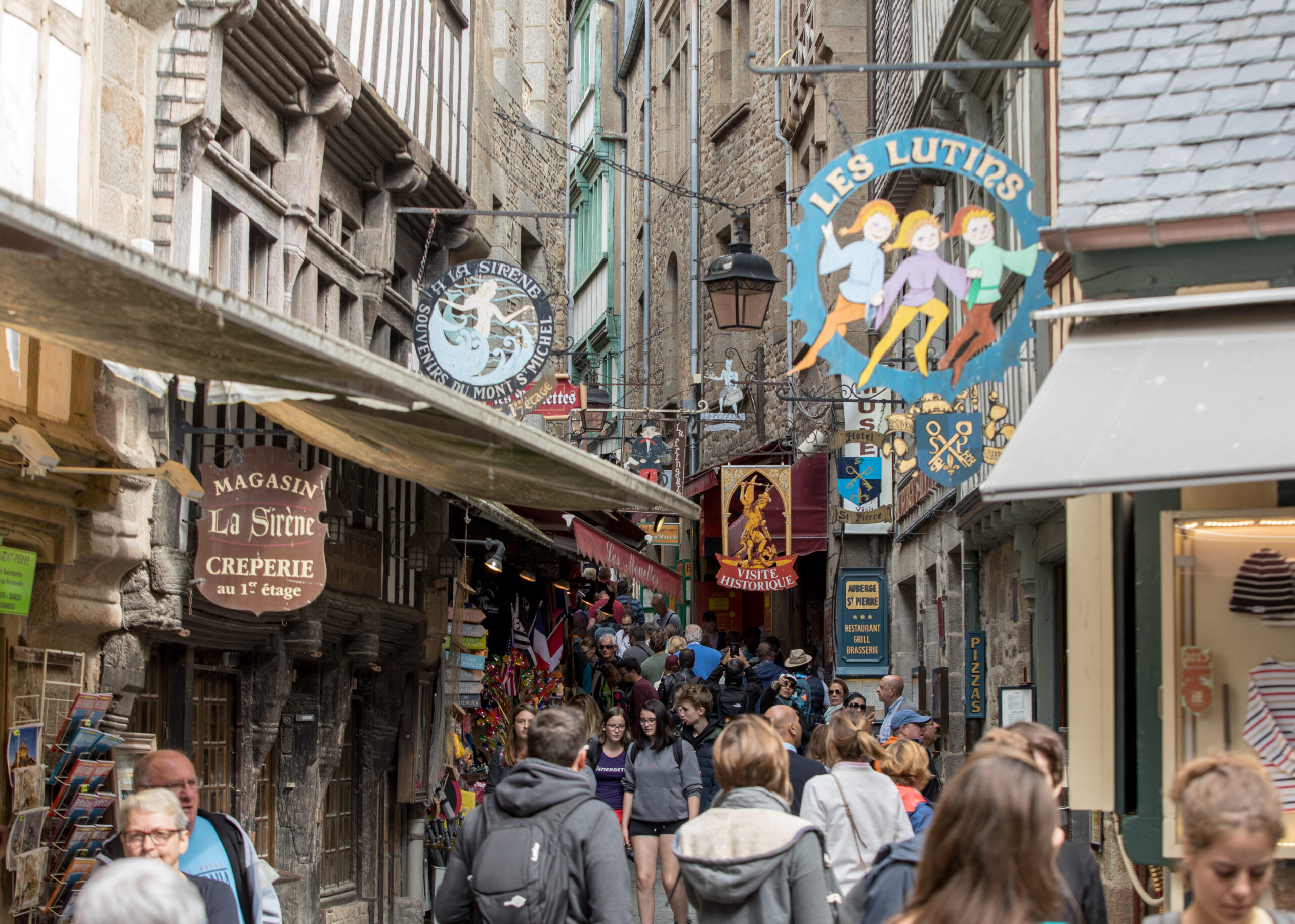 Ο κεντρικός, πλακόστρωτος δρόμος στο Mont-Saint-Michel ονομάζετai Grande Rue. Το να τον εντοπίσετε είναι κάτι περισσότερο από εύκολο, αφού θα τον δείτε να απλώνεται μπροστά σας με το που θα περάσετε την είσοδο στην κεντρική πύλη του νησιού.