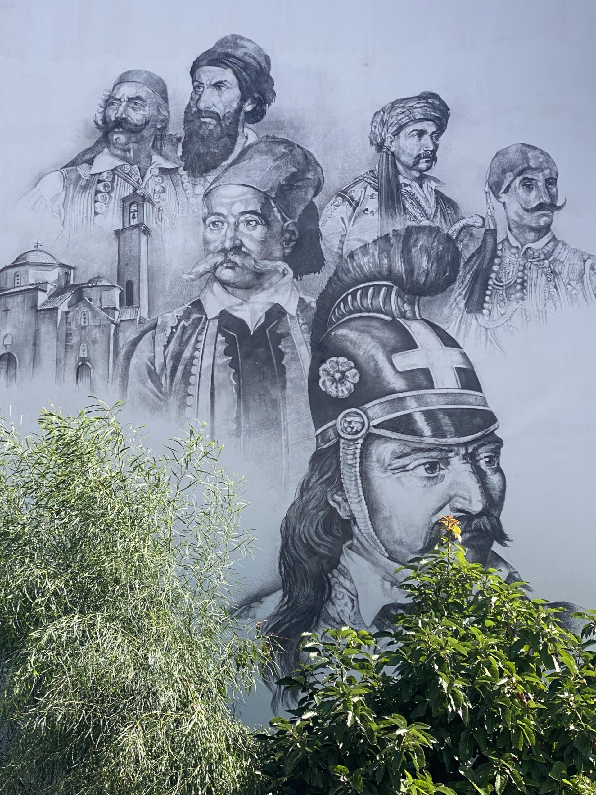 Το ταξίδι μας όμως έχει μόλις ξεκινήσει. Το πρόγραμμα αναφέρει την επίσκεψη στη δημόσια τοιχογραφία, και πράγματι πολύ γρήγορα βρισκόμαστε να θαυμάζουμε εκεί στο πλάι του κεντρικού δρόμου της πλατείας, την τοιχογραφία των αδερφών Κρέτση που υλοποιήθηκε απ’ την Ανώτατη Σχολή Καλών Τεχνών, με εποπτεία της Προέδρου του Τμήματος Εικαστικών Τεχνών δρος Ερατούς Χατζησάββα στο ΚΑΠΗ Μεσσήνης. Διαβάζω ξανά και ξανά τα συγκινητικά λόγια του Κολοκοτρώνη προς τον Ιμπραήμ, ο οποίος έχει ήδη κάψει το 1827 τον μεσσηνιακό κάμπο. Οι Έλληνες δεν προσκυνούν «ακόμα και αν τους απομείνουν μόνο πέτρες», αναφέρει στην επιστολή του, ενώ η τοιχογραφία τον απεικονίζει να κρατά ένα κλαδί ελιάς, ότι απέμεινε δηλαδή αό την καταστροφή.
