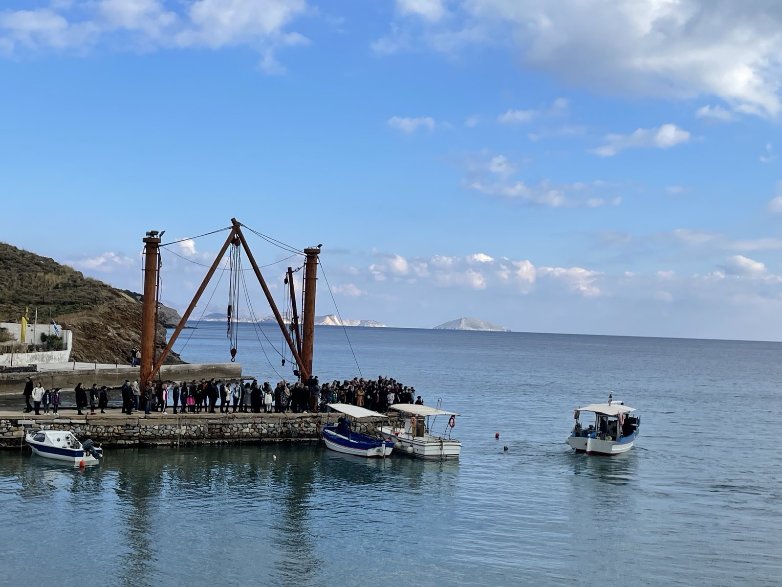 Στη «Σκάλα», όπως αποκαλούν οι ντόπιοι τη μικρή προβλήτα, στη σκιά των παροπλισμένων πια γερανών φορτοεκφόρτωσης, κάθε χρόνο ανήμερα των Φώτων πραγματοποιείται η τελετή του καθαγιασμού των υδάτων. Είναι μια εμπειρία μυσταγωγική.