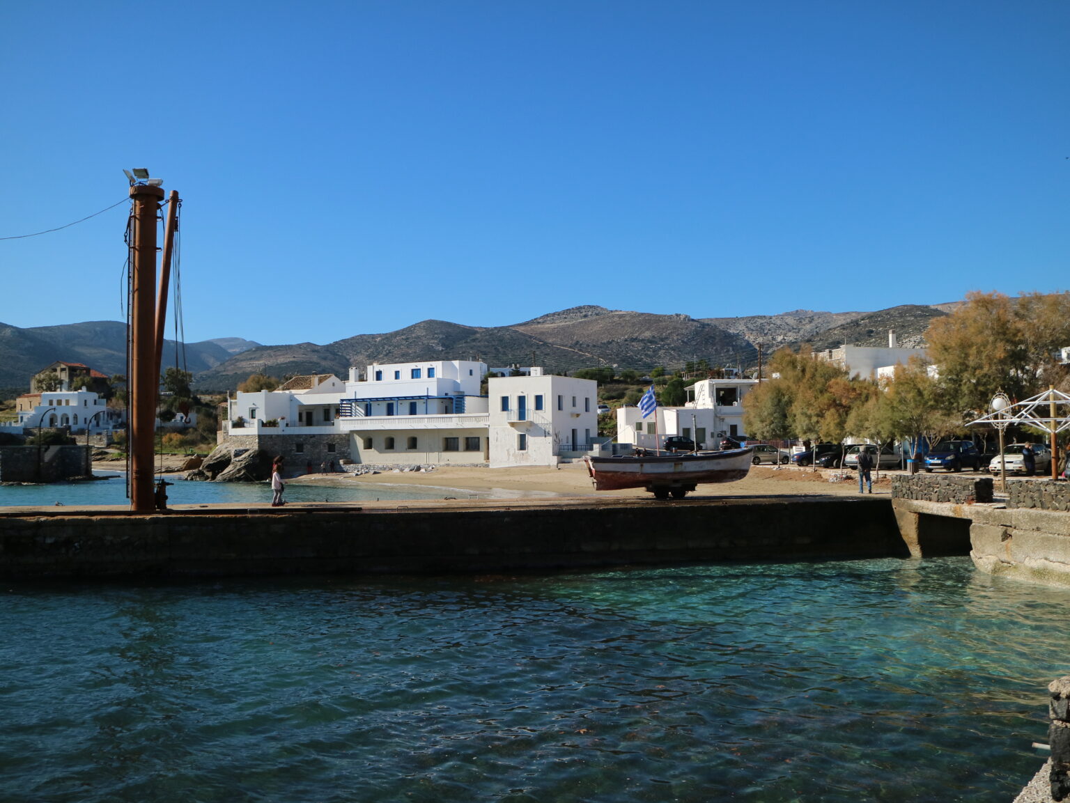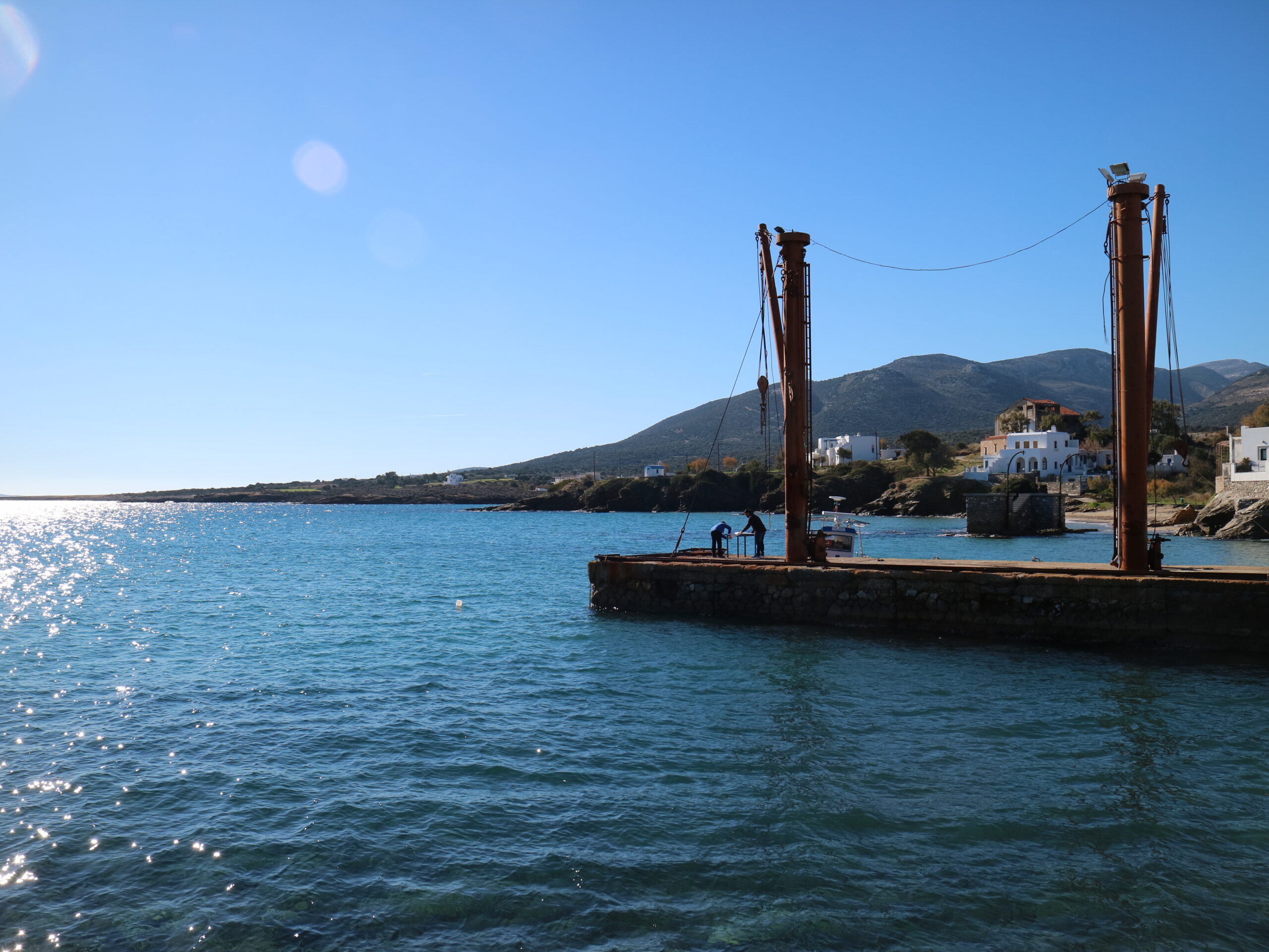 Ακόμη και σήμερα, το τοπίο ορίζεται από τη βιομηχανική ιστορία. Εδώ κατέληγε ο εναέριος σιδηρόδρομος που μετέφερε το πολύτιμο πέτρωμα από τις στοές της βορειοανατολικής Νάξου. Από αυτό το σημείο, η σμύριδα φορτωνόταν στα βαπόρια για να ταξιδέψει στις μονάδες επεξεργασίας της Ευρώπης, αφήνοντας πίσω της ένα τοπίο που μοιάζει με υπαίθριο μουσείο.