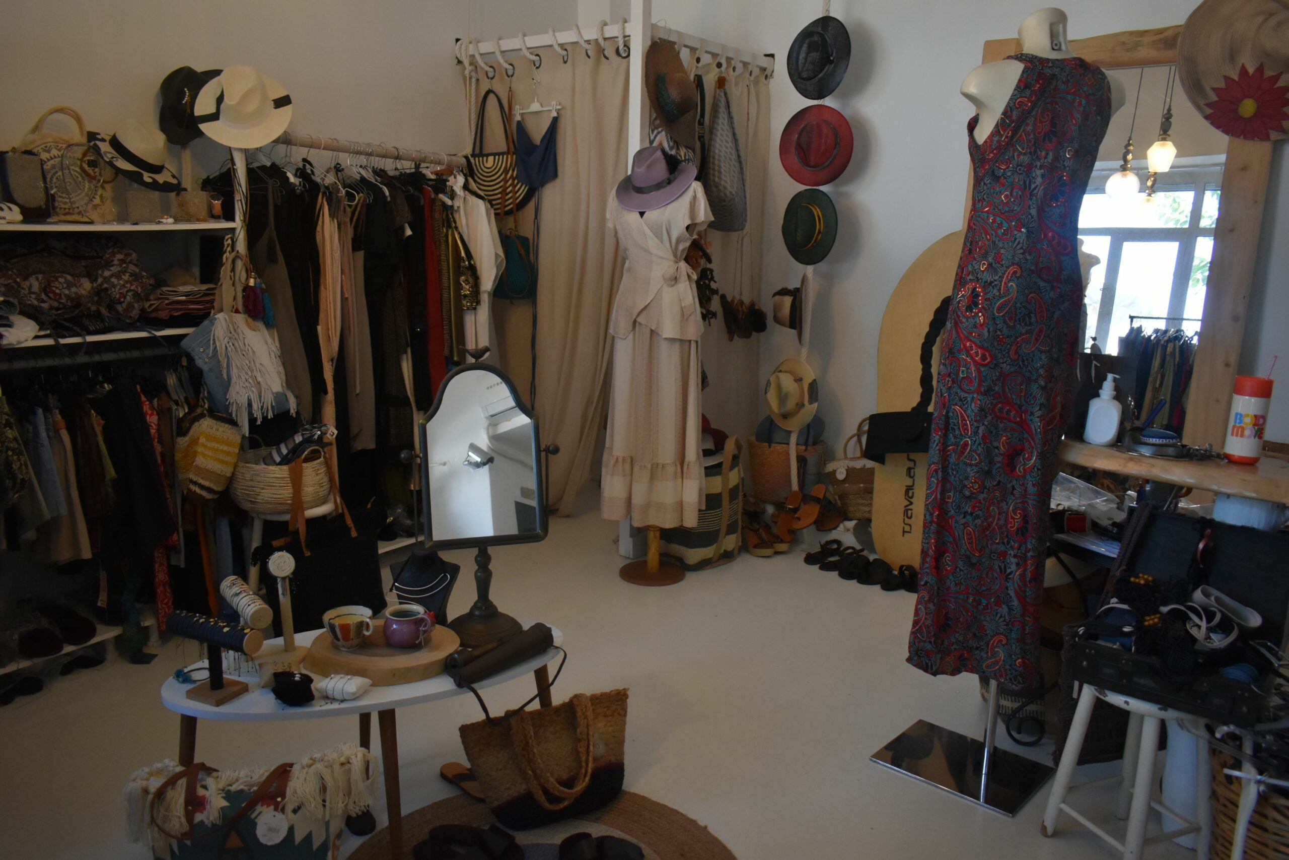 Σε διαφορετικό ύφος, με ό,τι πιο στιλάτο σε καλοκαιρινά ρούχα και αξεσουάρ να γεμίζει τον απέριττο και καλαίσθητο χώρο του, το Φιλότεχνο θα δώσει μια νησιώτικη νότα στο ντύσιμό σας με αέρινα καφτάνια, χειροποίητες τσάντες από φυσικά υλικά, κομψά σανδάλια και διακριτικά κοσμήματα. Σε ανάλογο ύφος και με μια ξεχωριστή συλλογή από καπέλα και εσάρπες κινείται και το Demode, που θα εντοπίσετε από τα μοδάτα αξεσουάρ που απλώνονται κάτω από τη μεγάλη μουριά μπροστά από το κατάστημα. Ειδικά τα πολύχρωμα μεταξωτά φορέματα που φτάνουν στις βιτρίνες του αποκλειστικά από τη Νάξο, χειροποίητα και μοναδικά, σε ένα καλειδοσκόπιο καλοκαιρινών τόνων, γίνονται ανάρπαστα, για αυτό μη χάσετε την ευκαιρία να αποκτήσετε τουλάχιστον ένα.