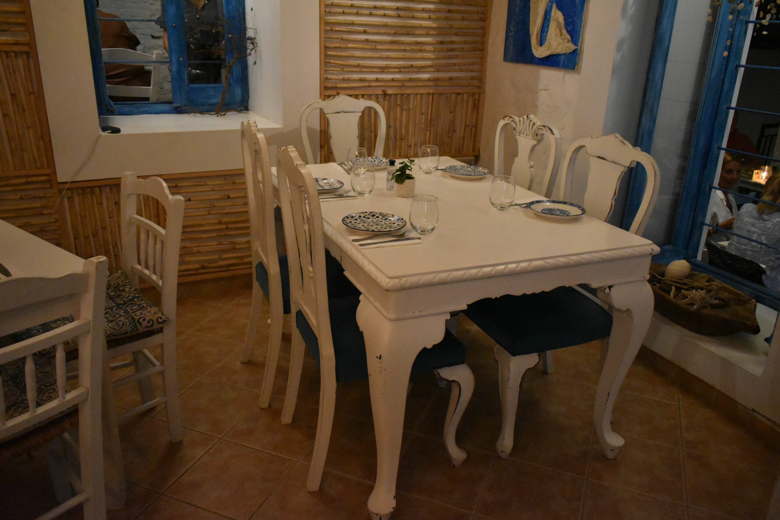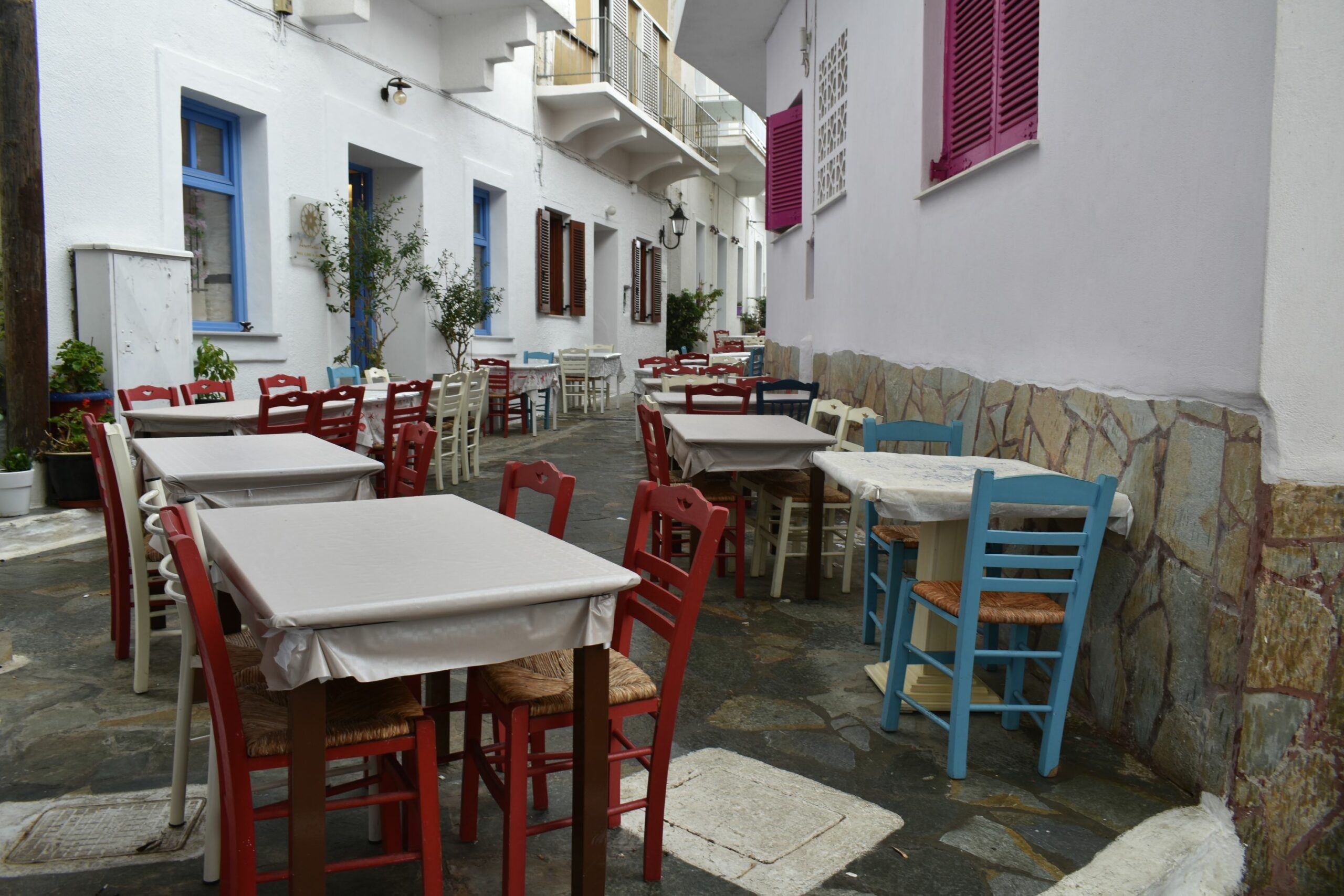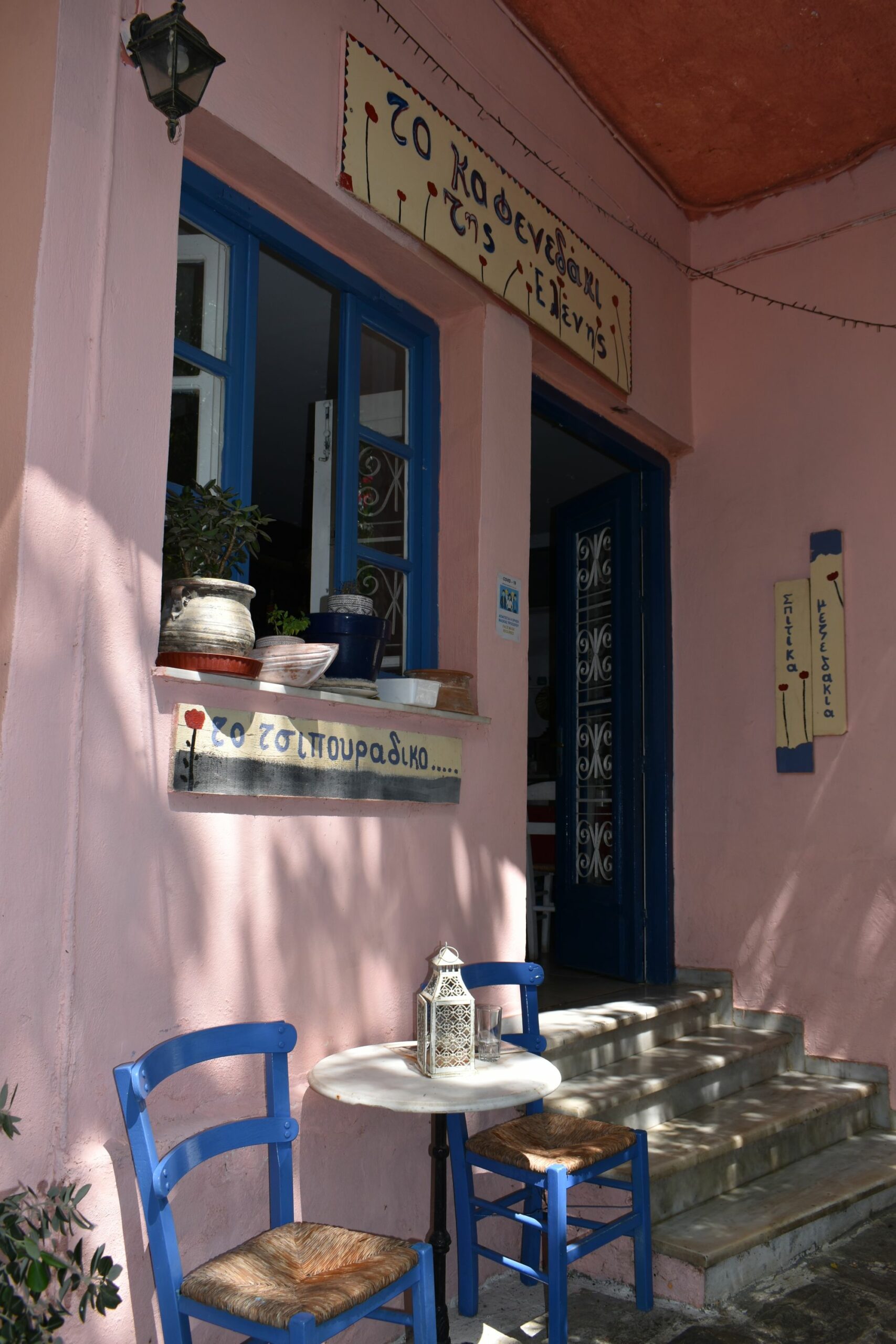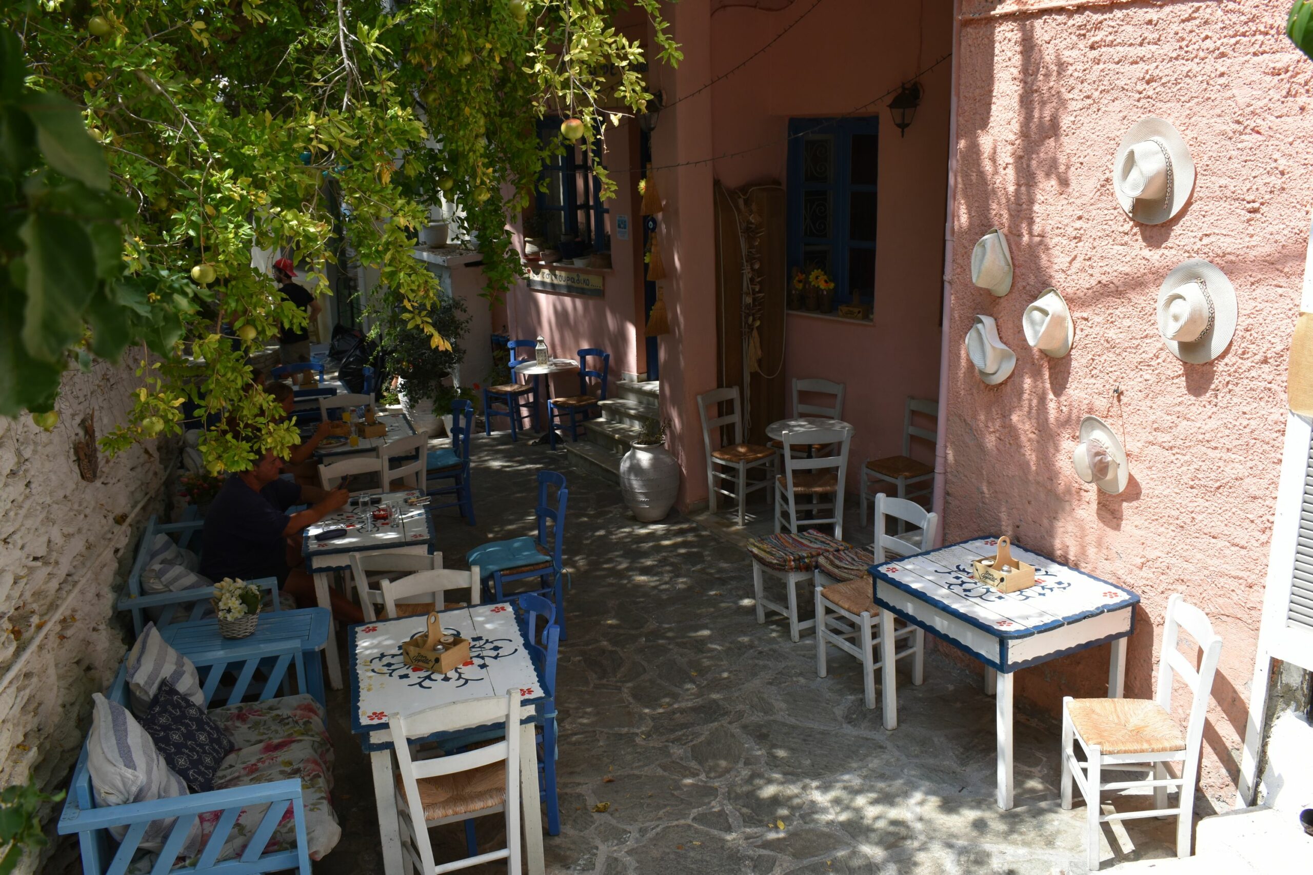 Είναι πραγματικά δύσκολο να απαρνηθεί κανείς έστω και για λίγο τόσο όμορφα ακρογιάλια, για αυτό και αφθονούν οι ταβέρνες και τα εστιατόρια με τραπεζάκια κυριολεκτικά πάνω στην αμμουδιά της κεντρικής παραλίας. Όσο εσείς γευματίζετε μπορείτε άνετα να επιβλέπετε τα μικρά παιδιά να παίζουν στην άμμο και χωρίς να απομακρυνθείτε να συνεχίσετε τη μέρα σας στην παραλία. Για ένα διαφορετικό, πολύ πιο ήρεμο σκηνικό κι ένα χαλαρό γεύμα με ουζάκι και θαλασσινά μεζεδάκια, αναζητήστε το απλωμένο σε διαφορετικά επίπεδα Καφενεδάκι της Ελένης, με το ελαφρώς μποέμ περιβάλλον και την ξεχωριστή διακόσμηση που έχει επιμεληθεί η ιδιοκτήτρια, στολίζοντας με φαναράκια και κουρελούδες τα σκαλιά που οδηγούν στο σοκάκι της Πίσω Βρύσης και διαμορφώνοντας μια βεράντα σαν πραγματικό κήπο με τραπεζάκια για τους πελάτες. Τα ζωγραφισμένα από την ίδια σανιδωτά, παλιά τραπέζια στήνονται κάτω από σκιερά δέντρα και όσο απολαμβάνετε χταποδάκια και καλαμαράκια, η πολυκοσμία και οι έντονοι ρυθμοί του υπόλοιπου χωριού, μοιάζουν για λίγο πολύ μακρινοί.