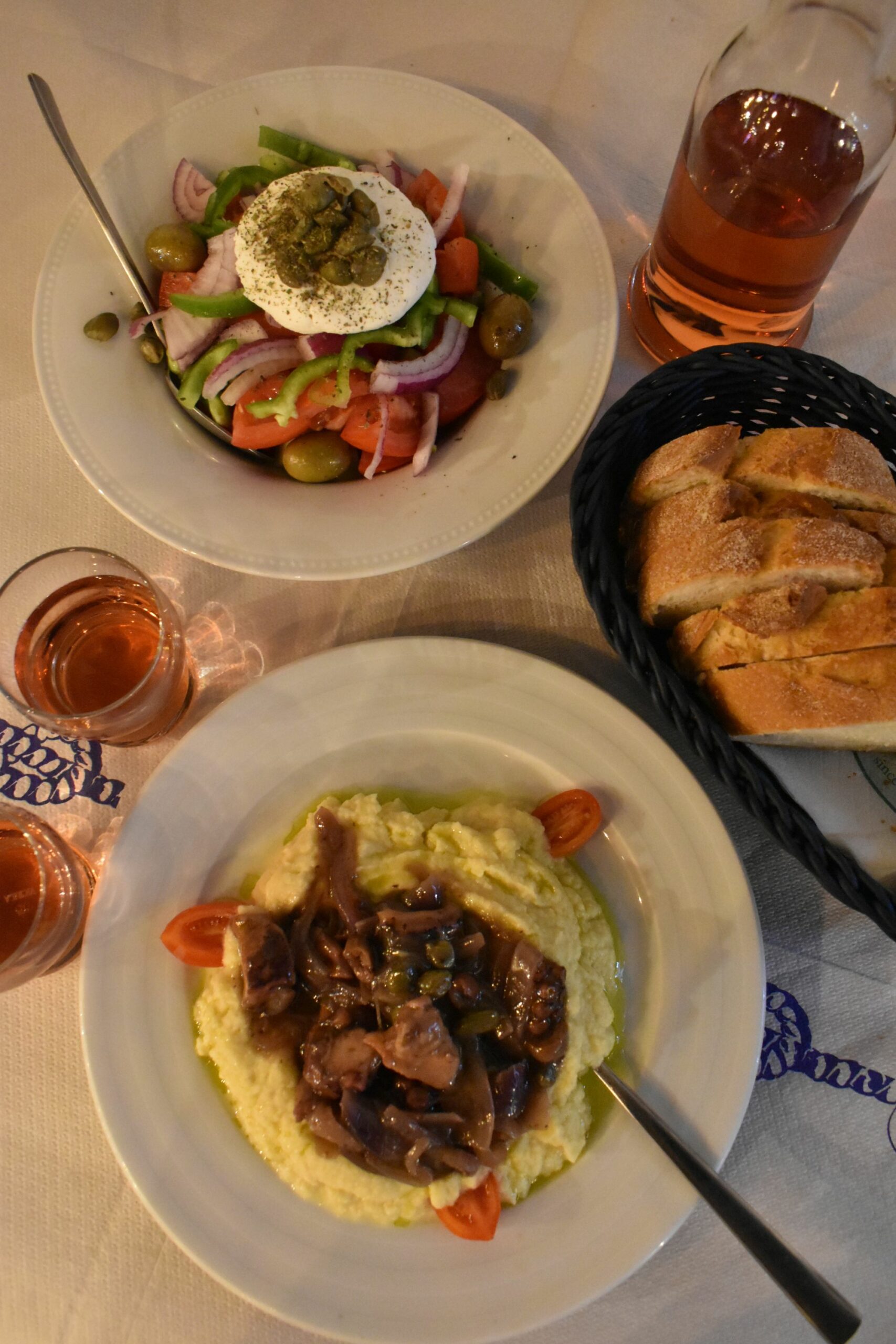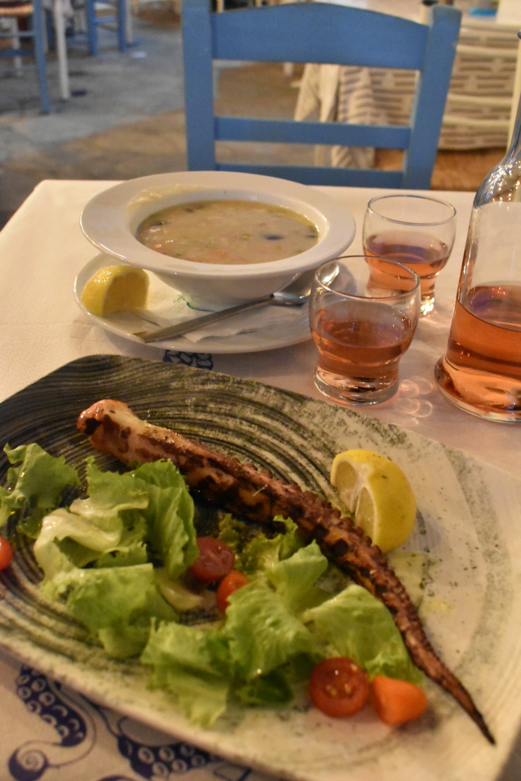 Ένα στενό πιο πάνω, το καλαίσθητο Μη σε μέλει ντύνει το σοκάκι όπου απλώνει τα δικά του τραπέζια σε άσπρους και γαλάζιους τόνους και σερβίρει δημιουργική κουζίνα αποκλειστικά με θαλασσινές γεύσεις. Ρωτήστε για τα ψάρια ημέρας, ή απολαύστε κάποιο από τα πρωτότυπα πιάτα ζυμαρικών με θαλασσινά, όπως τα γευστικότατα Σπαγγέτι με καλαμάρι σε ροζ σάλτσα με φιλέ αμυγδάλου ή το πρωτότυπο Καλαμάρι καρμπονάρα με σπαγγέτι από καλαμάρι, απάκι και την αυθεντική σάλτσα της Ιταλικής συνταγής. Μια μεγάλη ποικιλία από ετικέτες ούζου και τσίπουρου και επιλεγμένα κρασιά από όλη την Ελλάδα θα συνοδεύσουν και θα αναδείξουν όποιο πιάτο επιλέξετε. Σε δημιουργικούς τόνους, με ιδιαίτερη έμφαση στα ντόπια προϊόντα ως πρώτη ύλη, κινείται και η κουζίνα του εξαιρετικά δημοφιλούς «Μαστέλλο». Πάνω στη παραλιακή περατζάδα, με ναυτικού ύφους διακόσμηση, μερικά περιζήτητα τραπέζια πάνω στην αμμουδιά – για τα οποία χρειάζεται οπωσδήποτε κράτηση – και ευγενικό σέρβις, θα δοκιμάσετε ξεχωριστά πιάτα και πρωτότυπους συνδυασμούς γεύσεων. Κάθε μέρα θα βρείτε διαφορετικές προτάσεις με βάση το ψάρι, υπάρχουν όμως και οι κλασσικές αξίες όπως η αστακομακαρονάδα, το κριθαρότο με καραβίδες, το εξαιρετικό ριζότο με γαρίδες, αυγοτάραχο και αποξηραμένα σύκα και το μαγιάτικο που γίνεται νόστιμο φρικασέ και συνοδεύεται με πουρέ σελινόριζας. Μη χάσετε το πλατό ανδριώτικων τυριών, το φρέσκο μπακαλιάρο σε τραγανές μπουκιές για ορεκτικό και τις ολόδροσες σαλάτες που ξεφεύγουν απ΄τα συνηθισμένα.