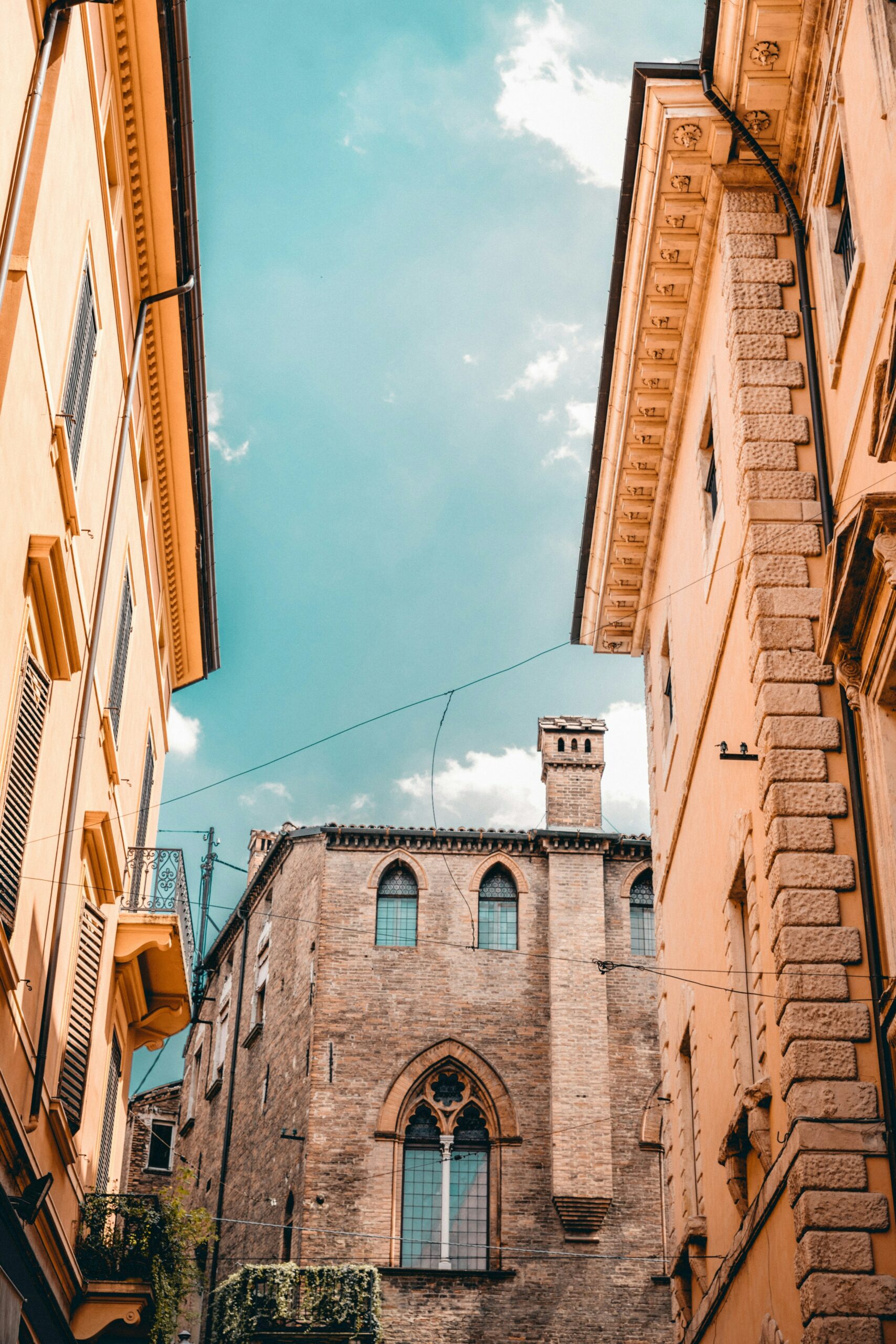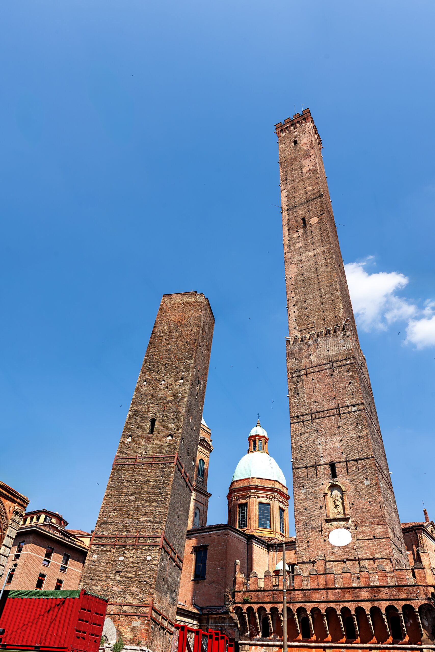 Τι λες, μπορείς να ανέβεις τα 486 ξύλινα σκαλιά του μεσαιωνικού Πύργου Αζινέλι; Είναι ένας από τους δύο σωζόμενους πύργους της πόλης. Τον 13ο αιώνα η Μπολόνια είχε περισσότερους από 180 πύργους, σύμβολα δύναμης και πλούτου των αριστοκρατικών οικογενειών που την κατοικούσαν. Ο δεύτερος, ο κοντύτερος Πύργος Γκαριζέντα, σταμάτησε στα 48 μέτρα λόγω επικίνδυνης κλίσης. Η φήμη του ήταν τέτοια, ώστε ο Δάντης τον μνημόνευσε στην Κόλασή του. Από την κορυφή του Αζινέλι, η πόλη απλώνεται σε αποχρώσεις τερακότας και ρουμπινί, ένα μωσαϊκό από στέγες και δρόμους που αιχμαλωτίζει το βλέμμα.
