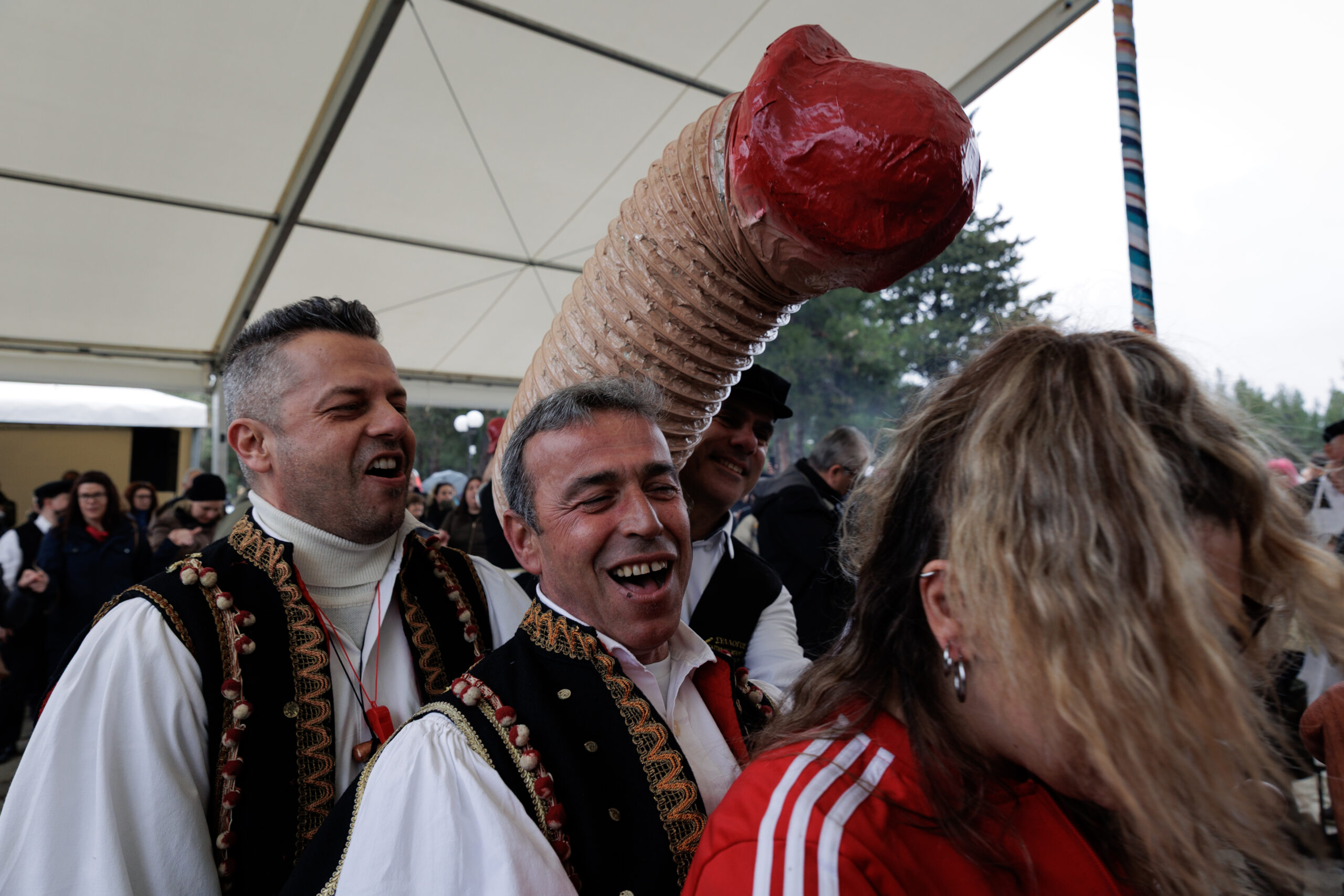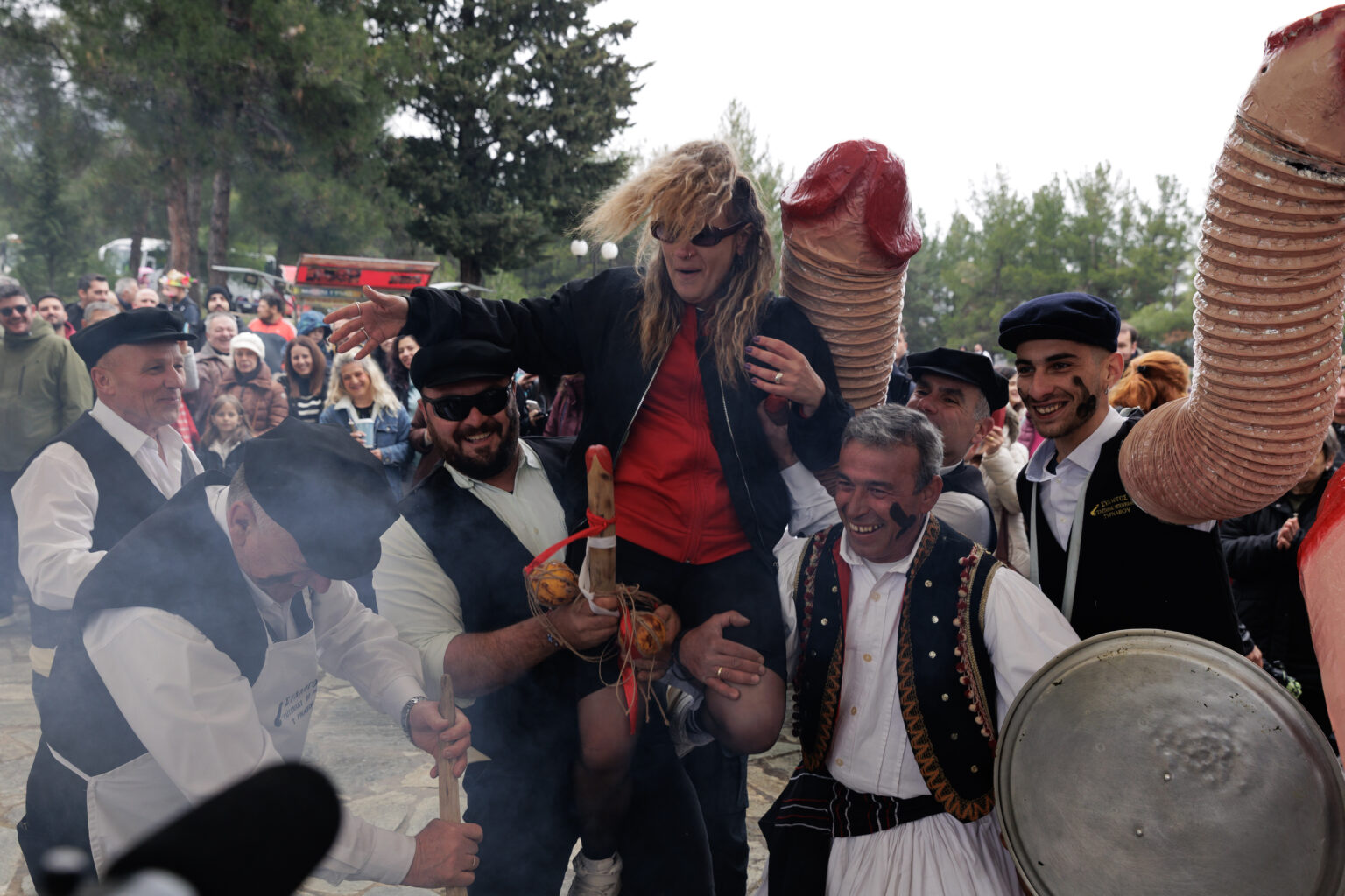 Γύρω από το καζάνι ξεκινά το γλέντι. Κρασί, τραγούδια, χορός και έντονη σάτιρα συνθέτουν ένα σκηνικό όπου οι κοινωνικοί κανόνες χαλαρώνουν και το γέλιο γίνεται μέσο κάθαρσης. Οι τολμηρές εκφράσεις και τα φαλλικά σύμβολα εντάσσονται σε μια λαϊκή παράδοση που αντιμετωπίζει τη ζωή χωρίς εξωραϊσμούς, με ειλικρίνεια και διάθεση αναγέννησης.