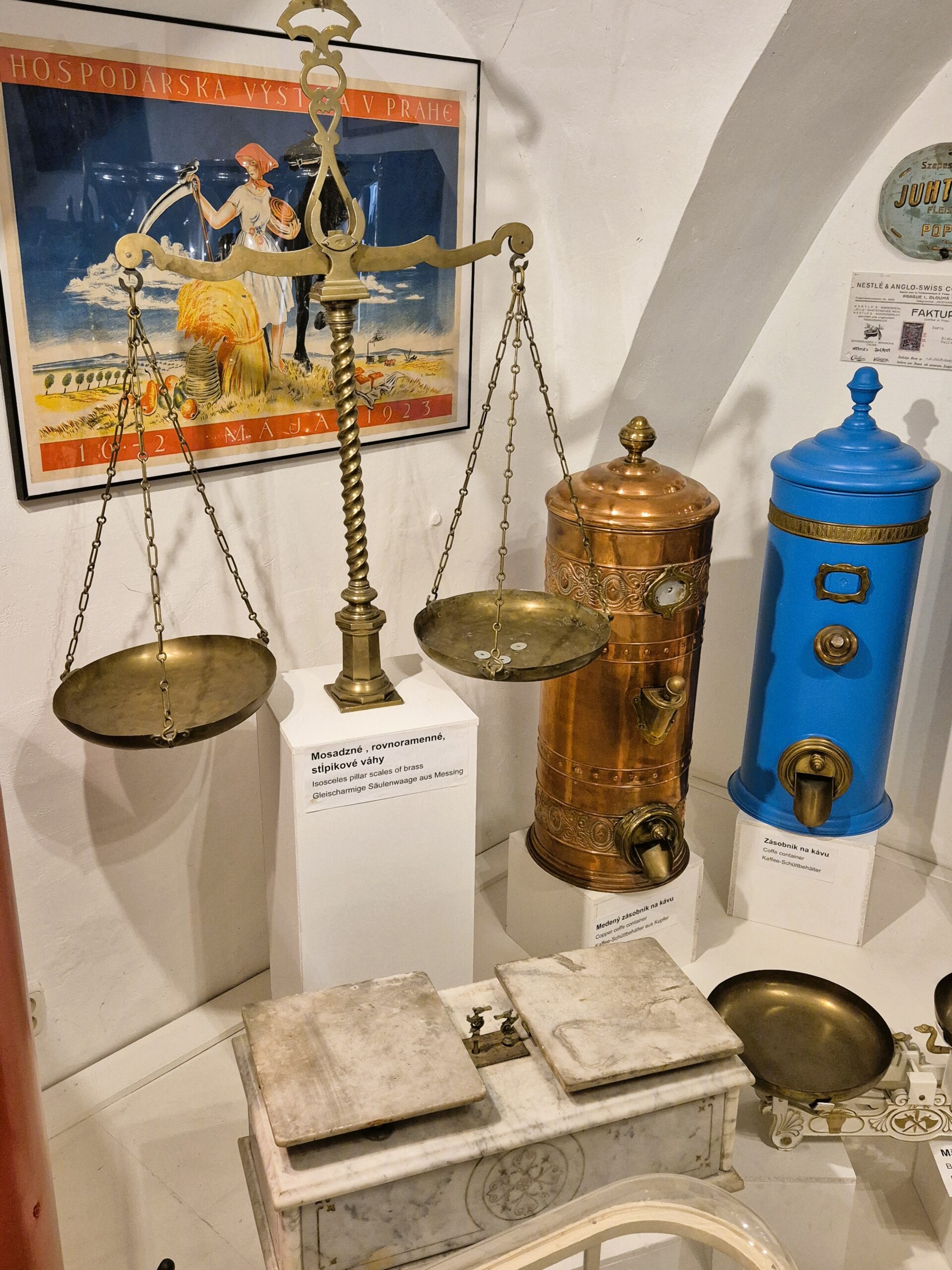 Στο βάθος του γοητευτικού χώρου, η έκπληξη για τους επισκέπτες έρχεται με τη μορφή ενός μικρού μουσείου, με μεγάλες βιτρίνες που φιλοξενούν αντικείμενα που σχετίζονται με παλιές εμπορικές πρακτικές. Στην πρώτη προθήκη αυτού του μικροσκοπικού αλλά περιεκτικού Μουσείου Εμπορίου, οι παλιές ταμιακές μηχανές απαρτίζουν ένα εντυπωσιακά μεγάλο μέρος της συλλογής, που συμπληρώνεται από παλιούς ζυγούς, δοχεία φύλαξης και μέτρησης, συσκευασίες, μηχανές άλεσης καφέ και αφίσες. Κι αν χώρος και εκθέματα μας μεταφέρουν πίσω στο χρόνο, το φιλικό προσωπικό ζωηρεύει την ατμόσφαιρα με την προθυμία του να αφηγηθεί ιστορίες και στιγμές γύρω από την κληρονομιά του Obchod v múzeu ή την προέλευση και τη χρήση των συναρπαστικών, συλλεκτικών αντικειμένων του μουσείου. Το βέβαιο είναι, ότι και εδώ όπως και στα δύο προηγούμενα καλά φυλαγμένα μυστικά της Μπρατισλάβα, η ανάμνησή τους θα γίνει από τις εντονότερες του ταξιδιού σας στη Σλοβακία. (Διεύθυνση: Biela 6)